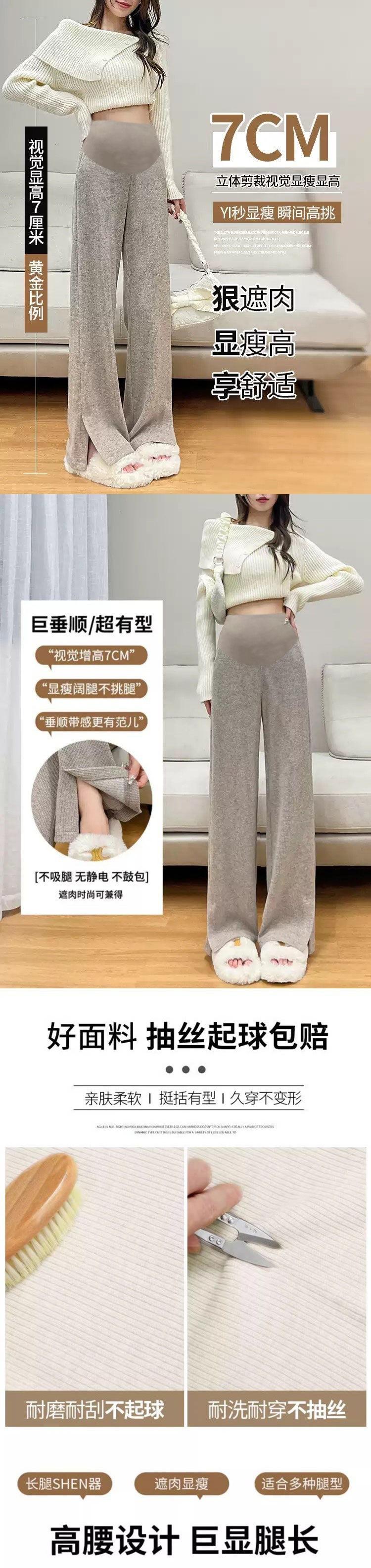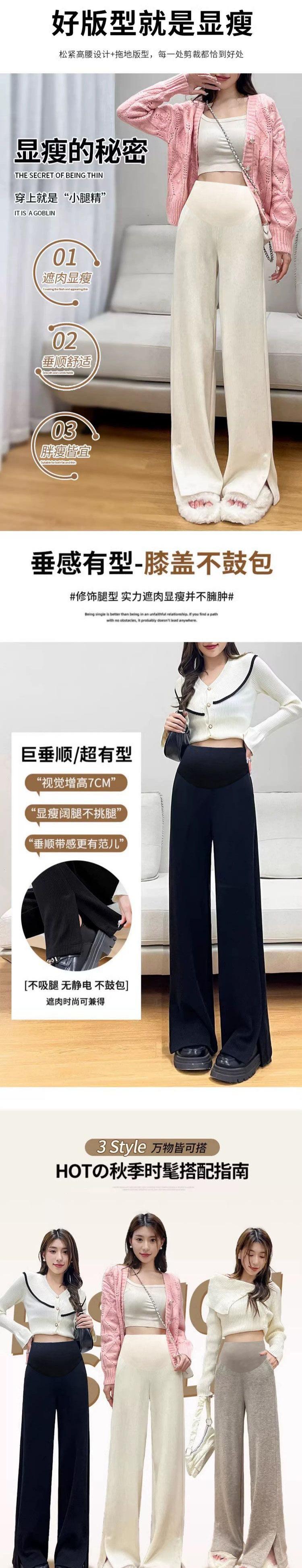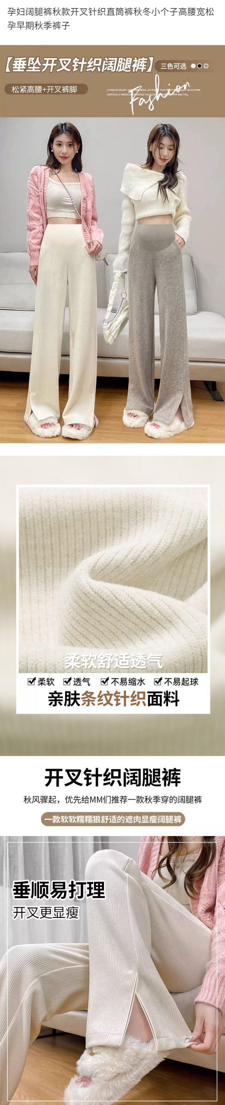 Pantalones para Mujeres Embarazadas Otoño Otoño e Invierno 2024 Nuevos Pantalones de Pierna Ancha con Abertura Ropa Exterior de Primavera y Otoño Pantalones Rectos Básicos Vestido de Otoño