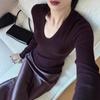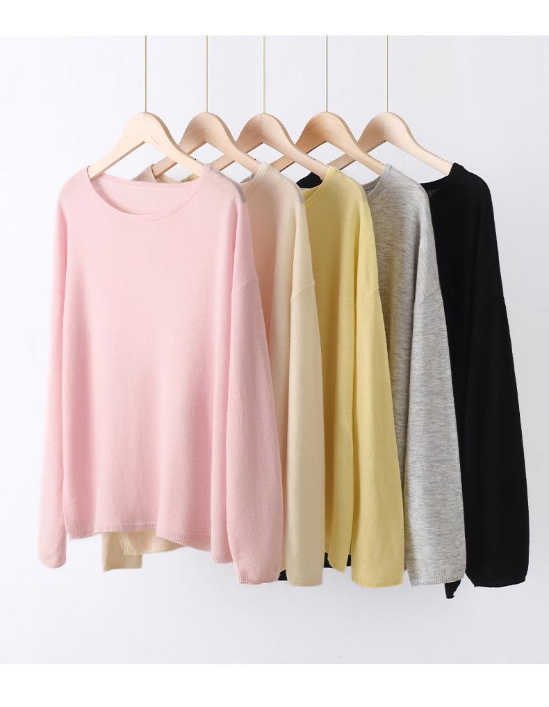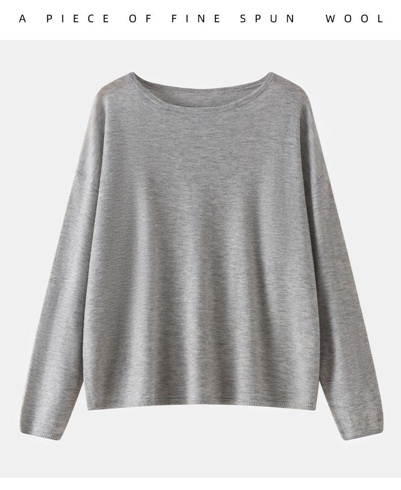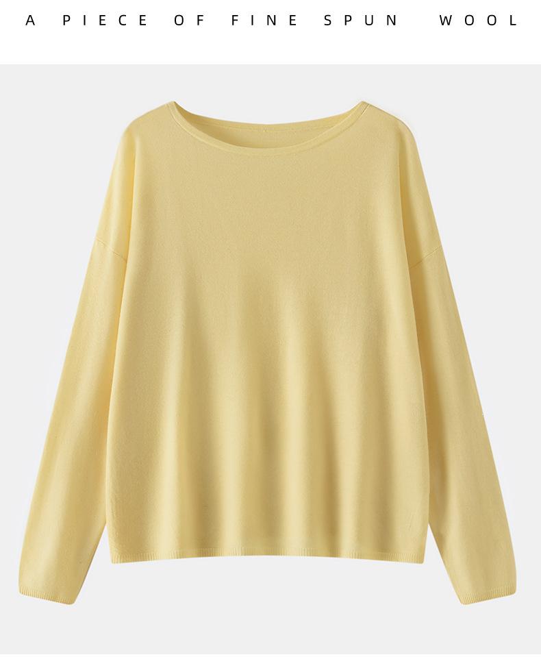 Suéter de Punto de Lana Merino Superfina Estilo Nuevo para Mujer Cuello de un Carácter Jersey Delgado Suave Blusa de Punto de Manga Larga Camiseta Base