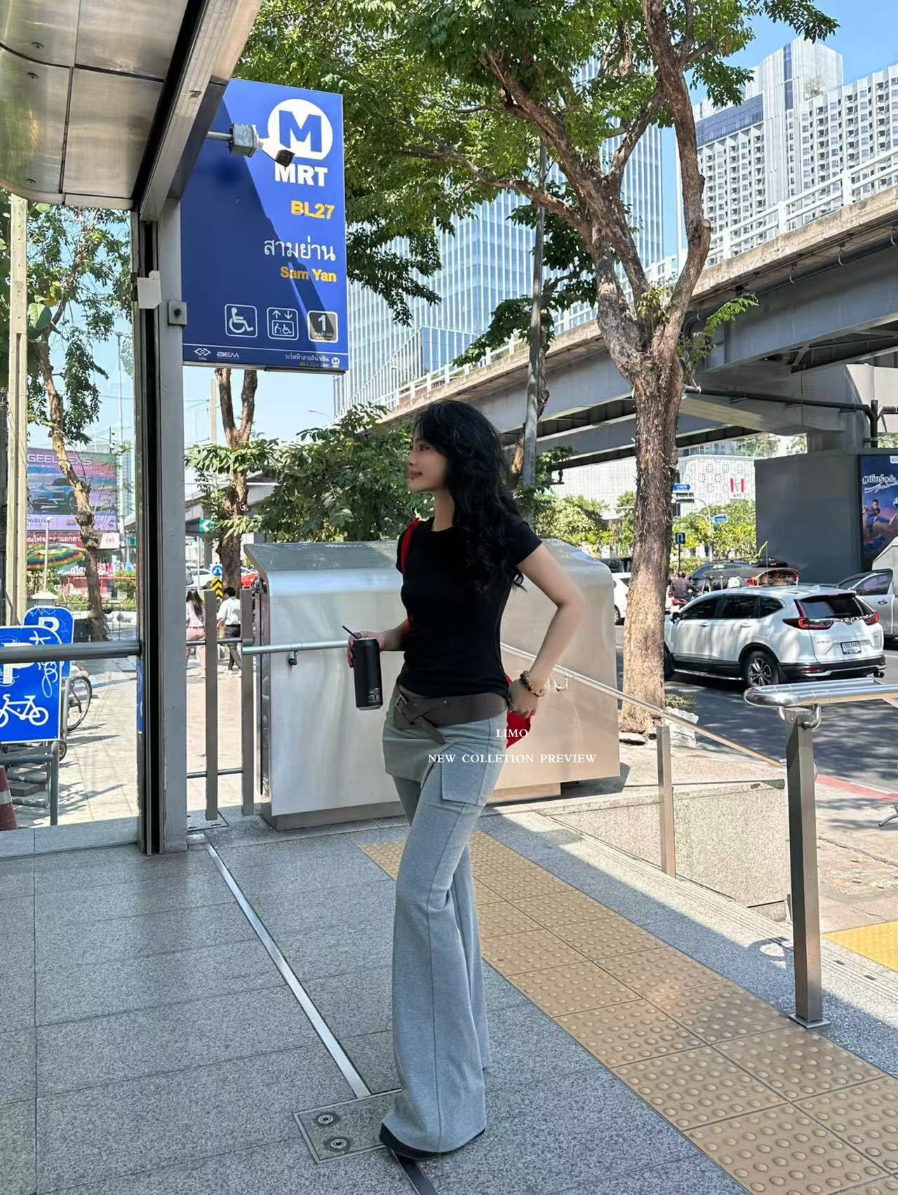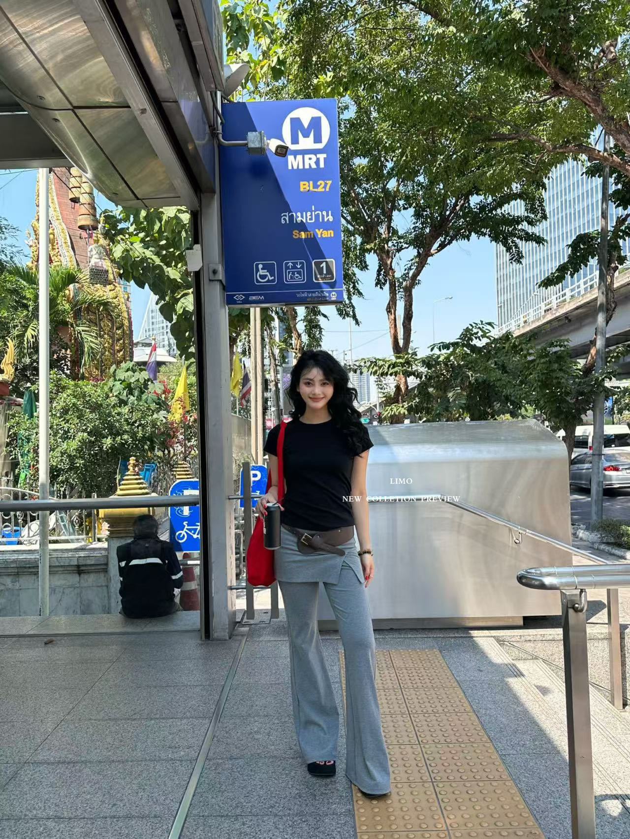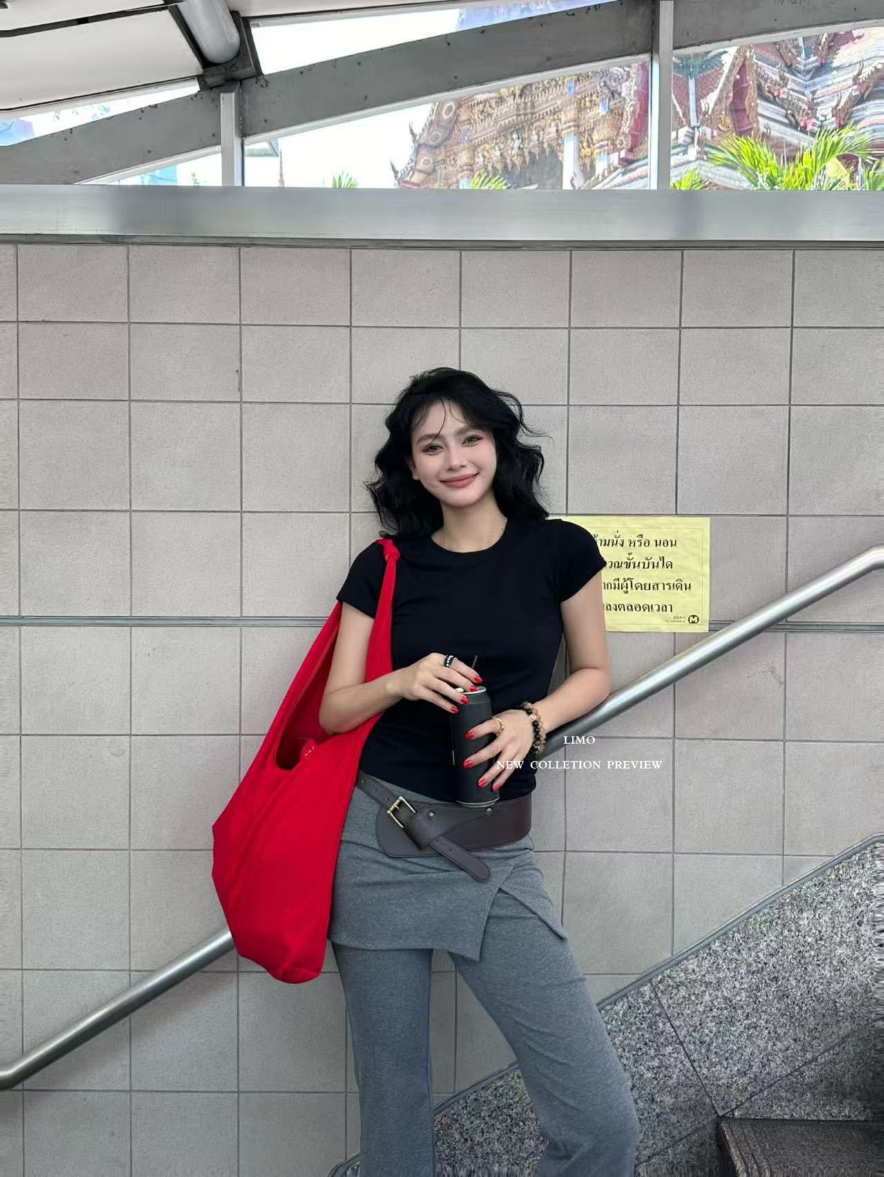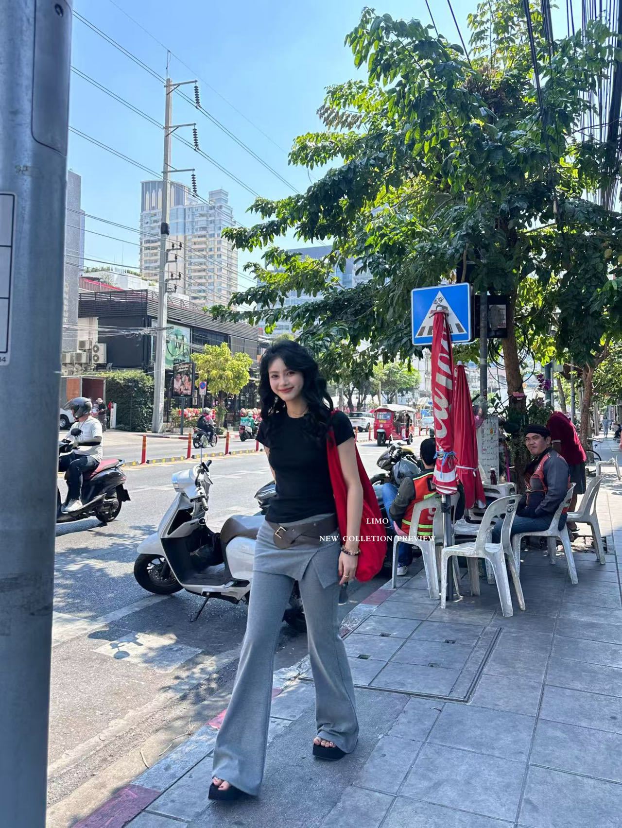 [no reembolsable] LIMO sentido del diseño falso dos piezas slim slim estilo lulu pantalones acampanados casual versátil falda pantalón