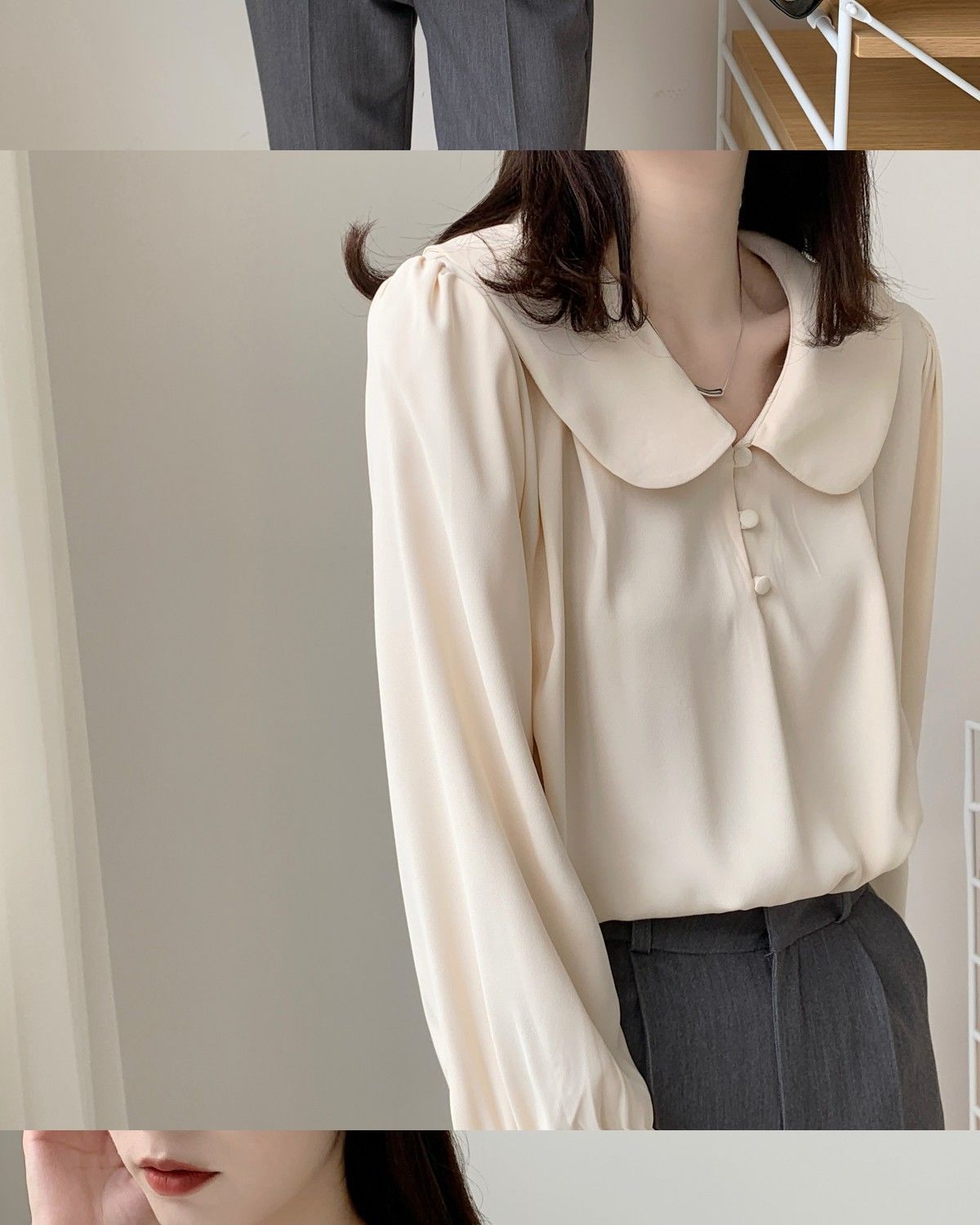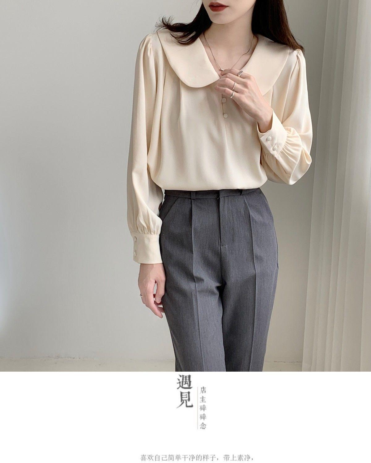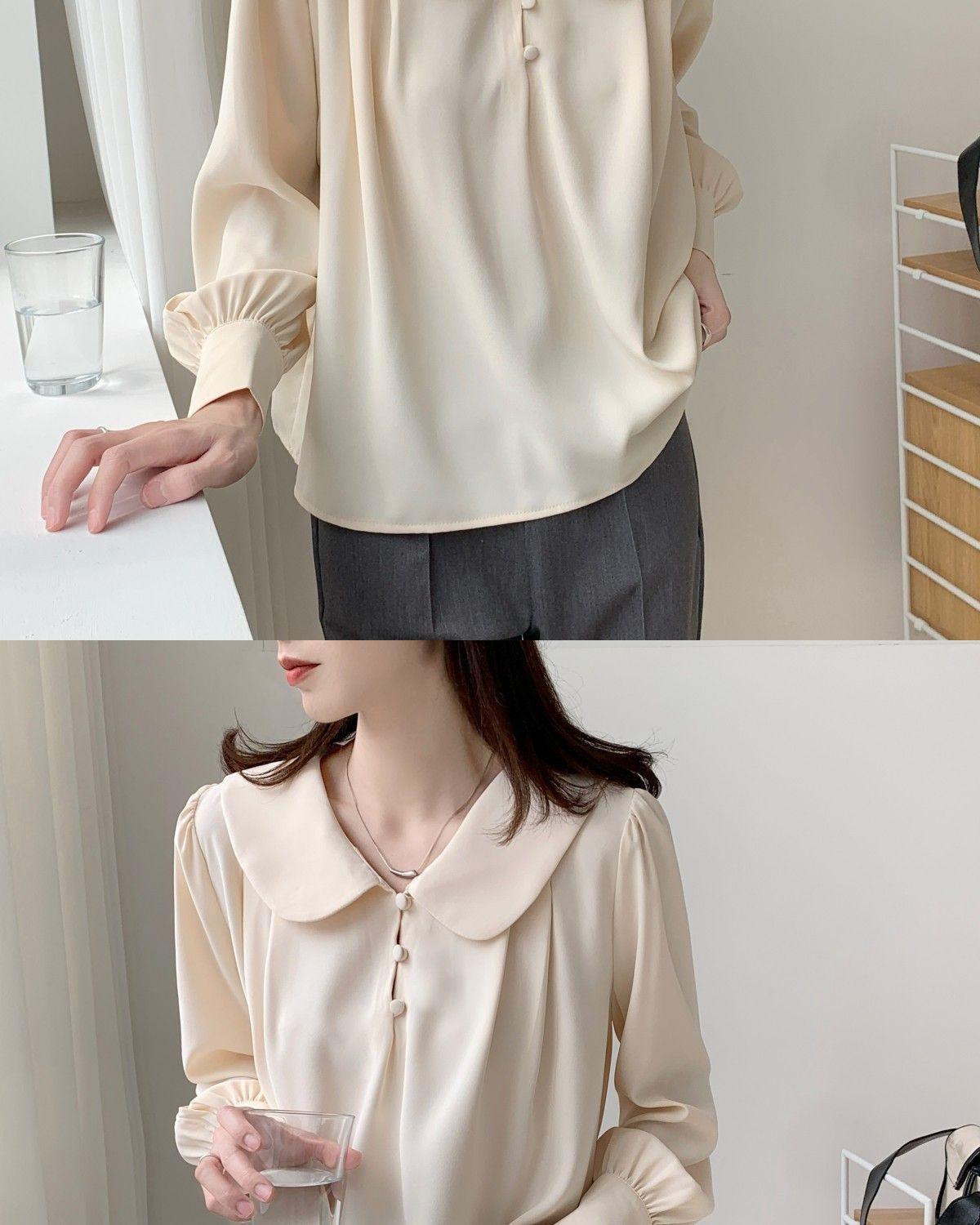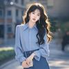 Camisa de manga larga para mujer, primavera y otoño, diseño de alta gama, estilo informal, estilo nicho, ligera, para uso diario, con cuello de muñeca.