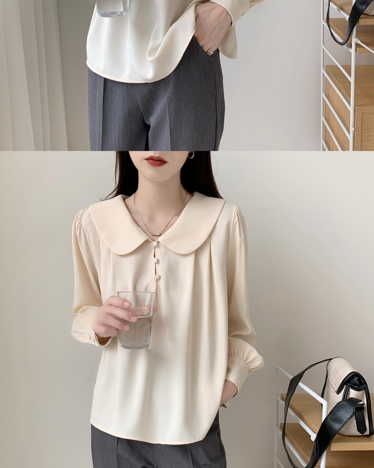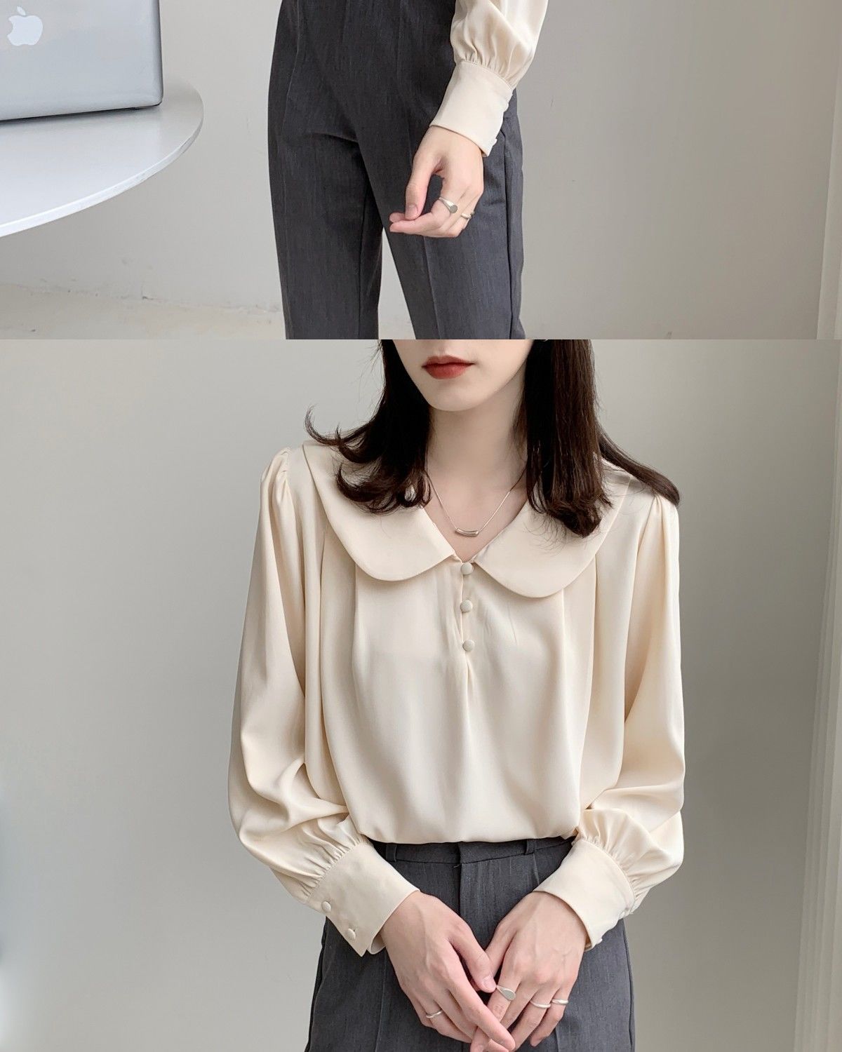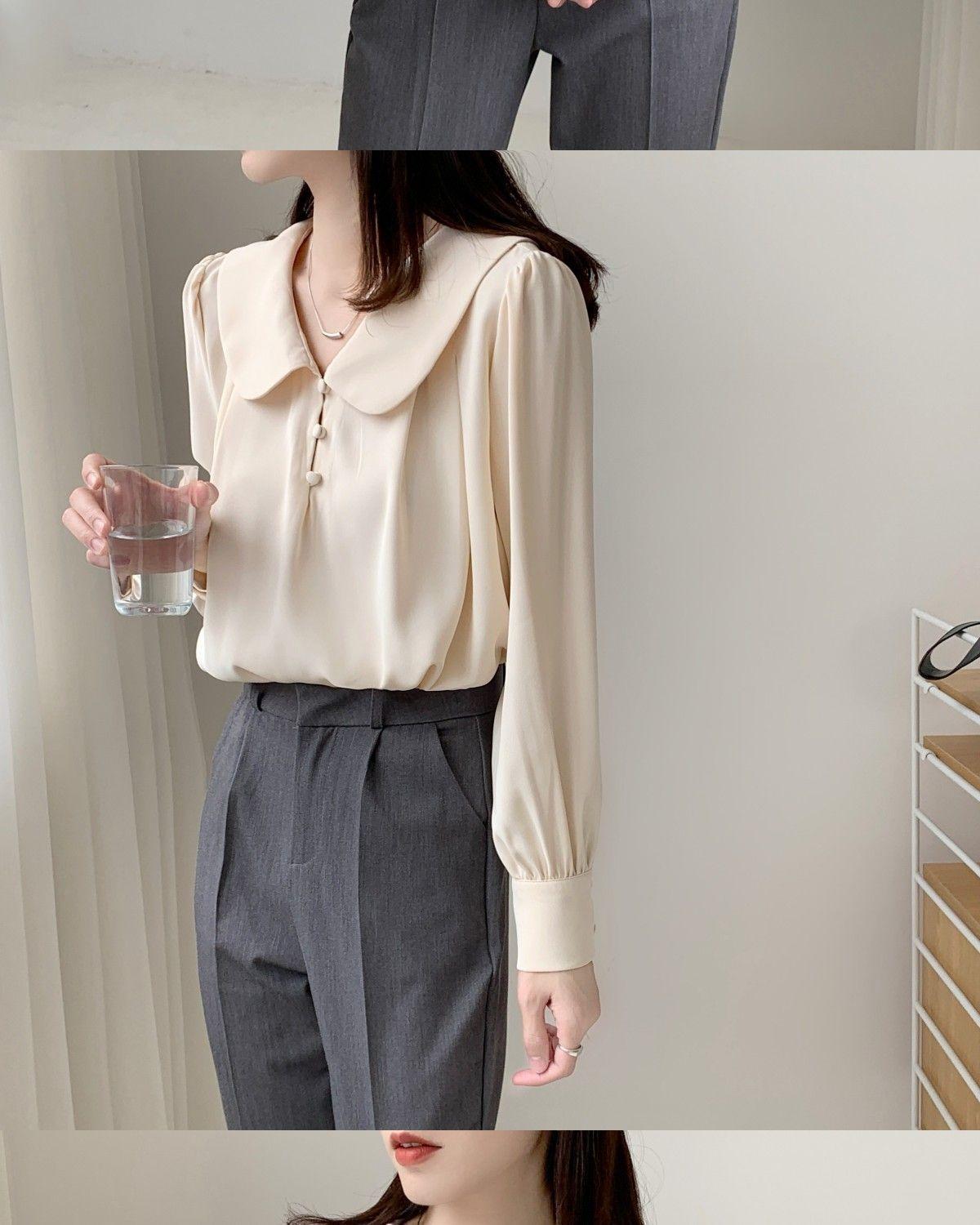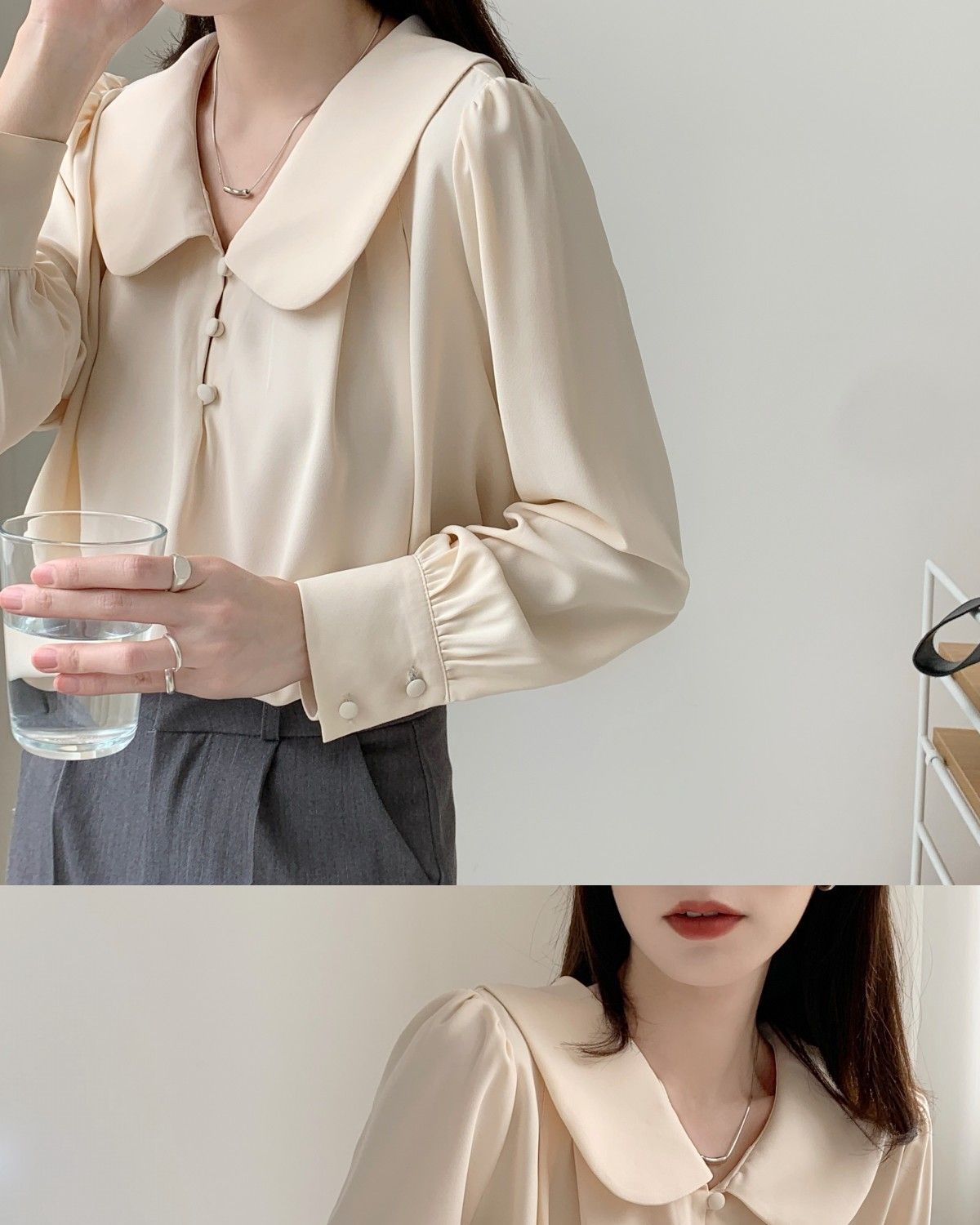 Camisa de manga larga para mujer, primavera y otoño, diseño de alta gama, estilo informal, estilo nicho, ligera, para uso diario, con cuello de muñeca.