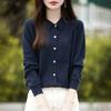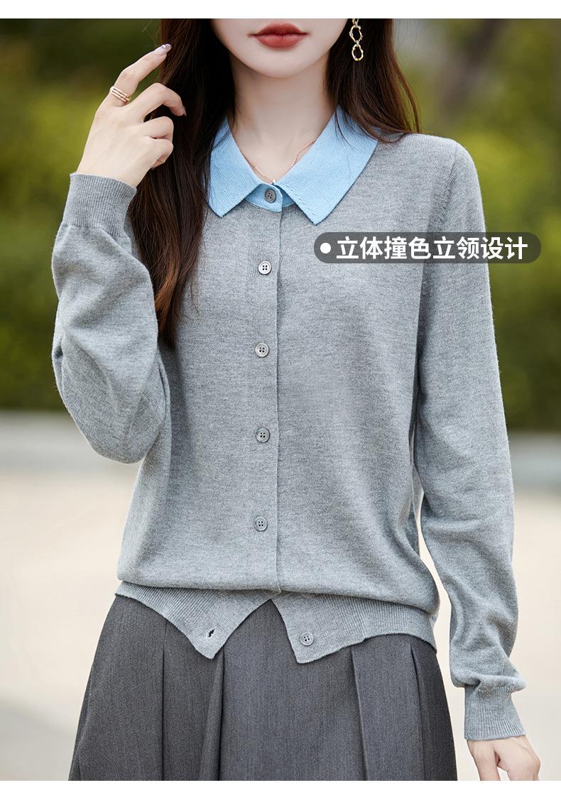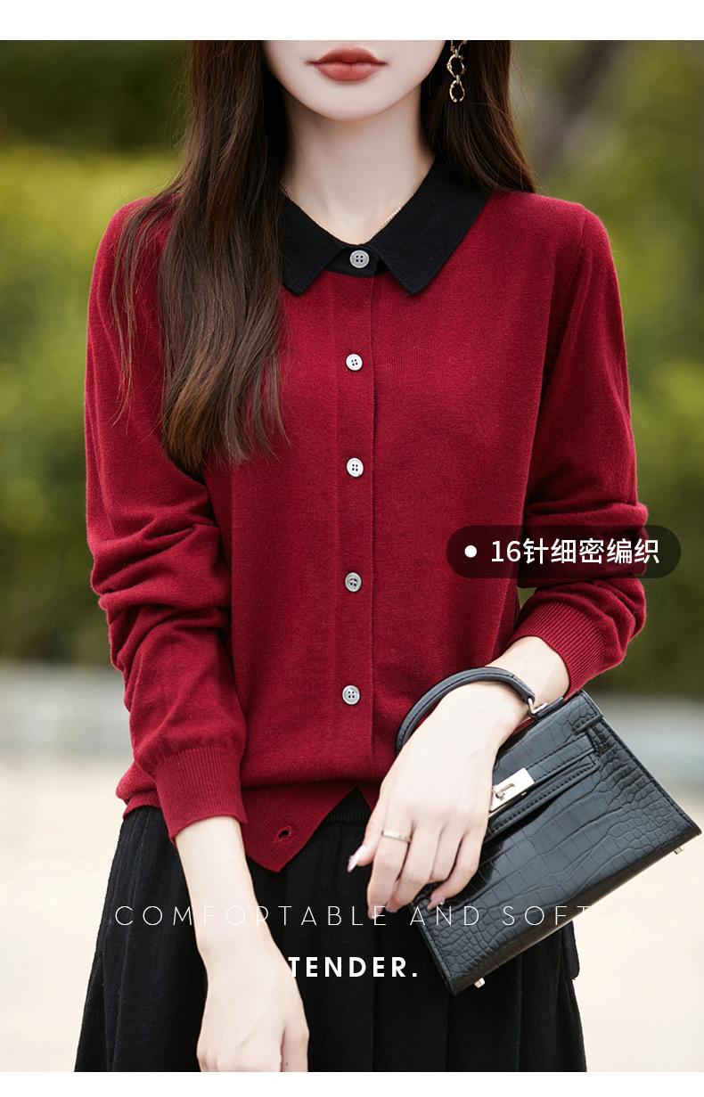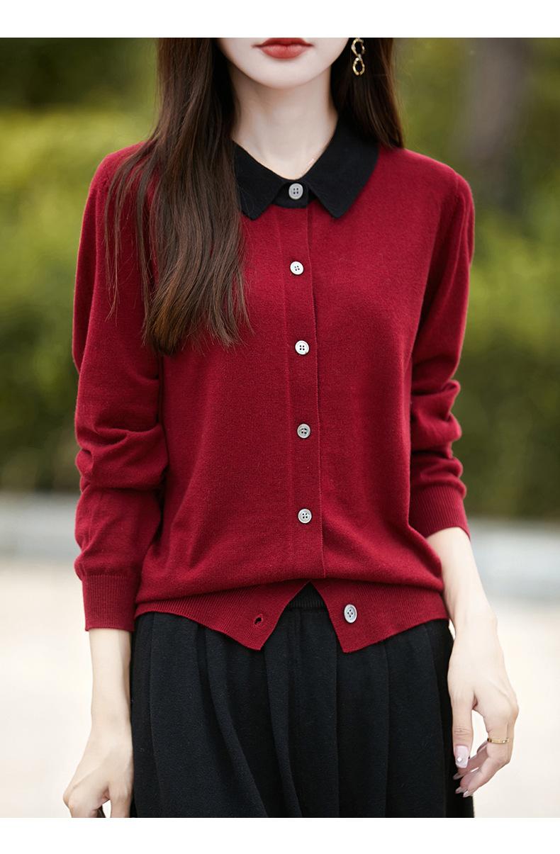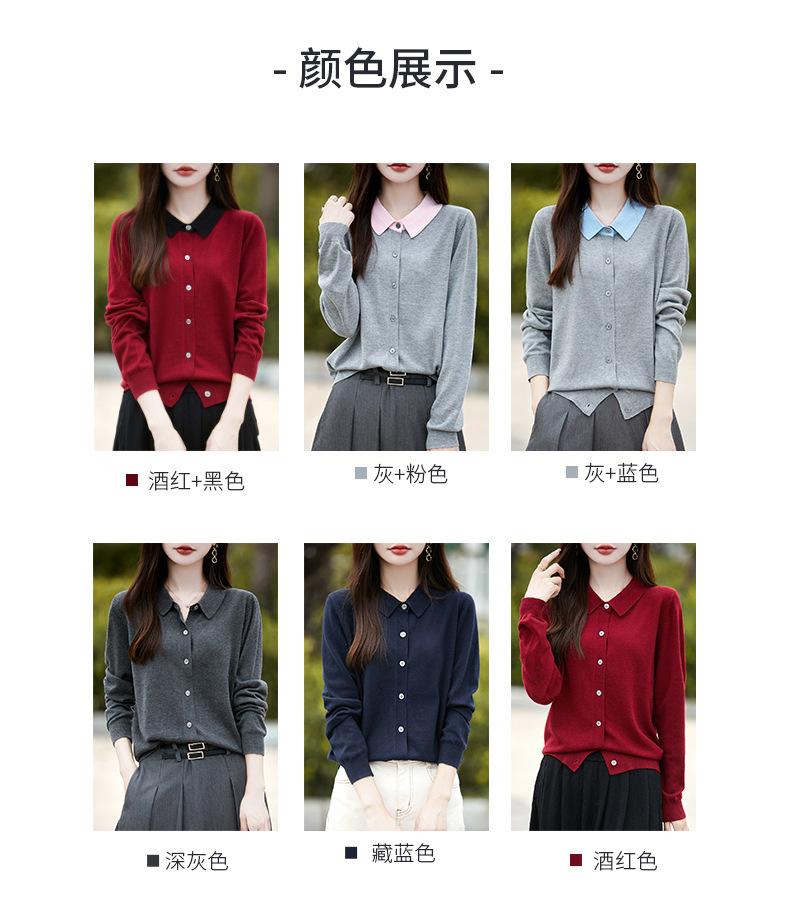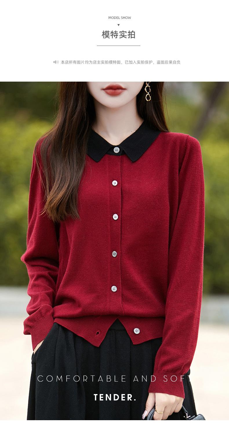 Otoño e Invierno Nuevo Abrigo Corto Suéter con Cuello de Muñeca para Mujer Cuello POLO Color de Contraste Cárdigan Tejido Top Básico para Mujer