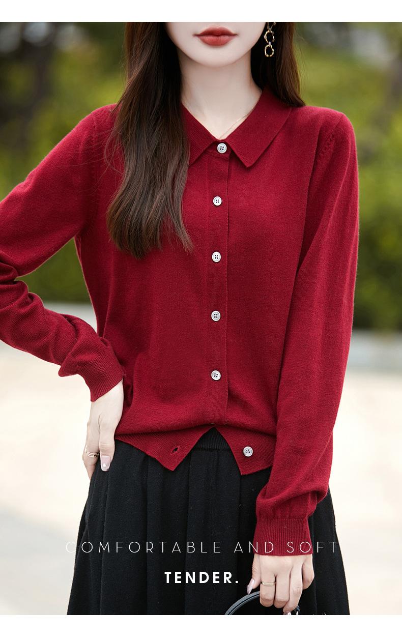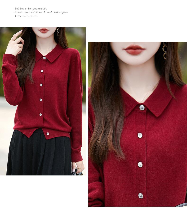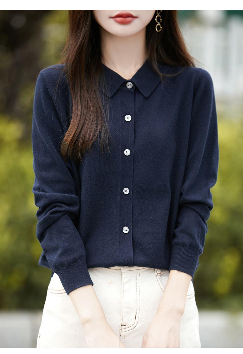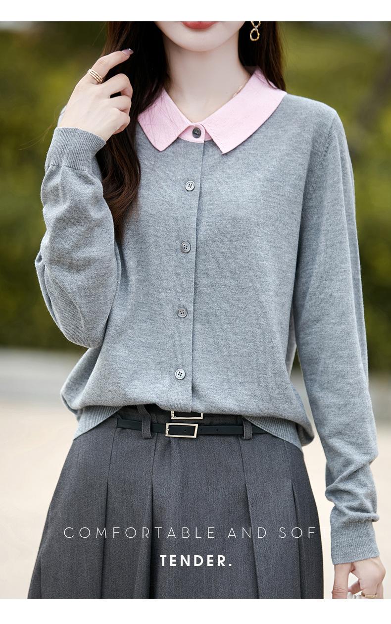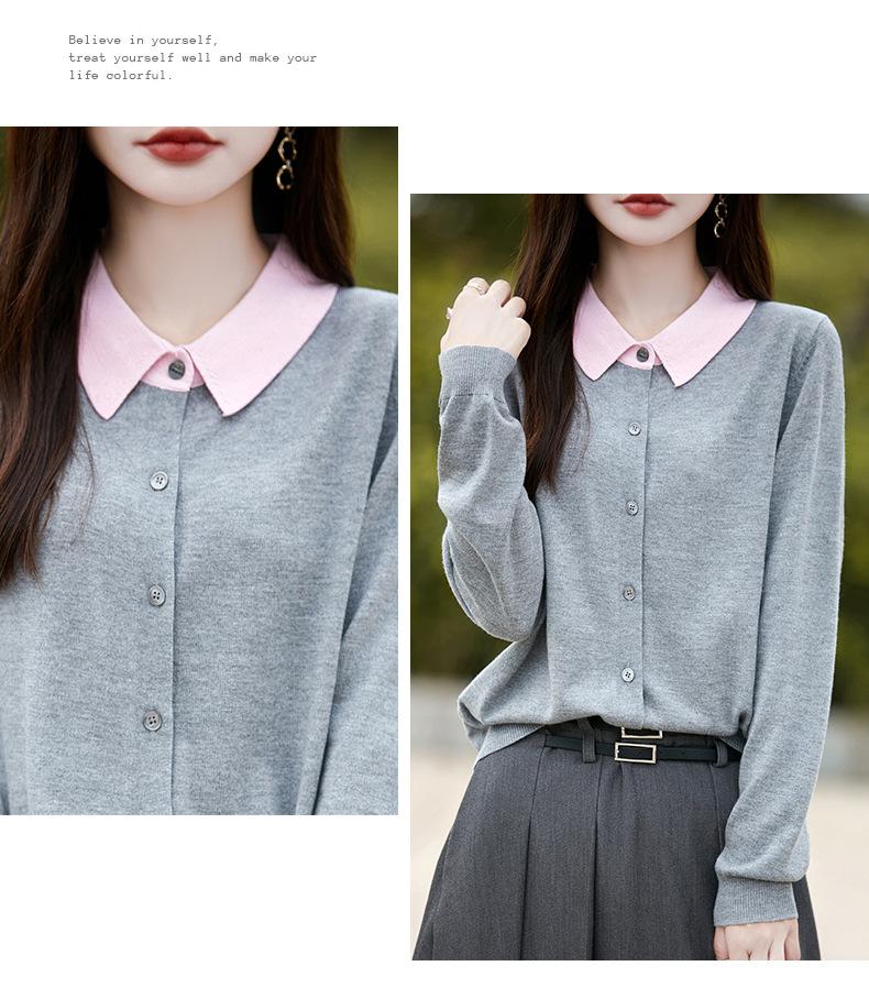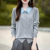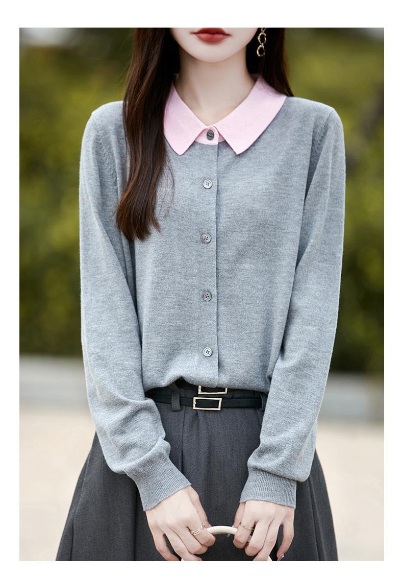 Otoño e Invierno Nuevo Abrigo Corto Suéter con Cuello de Muñeca para Mujer Cuello POLO Color de Contraste Cárdigan Tejido Top Básico para Mujer