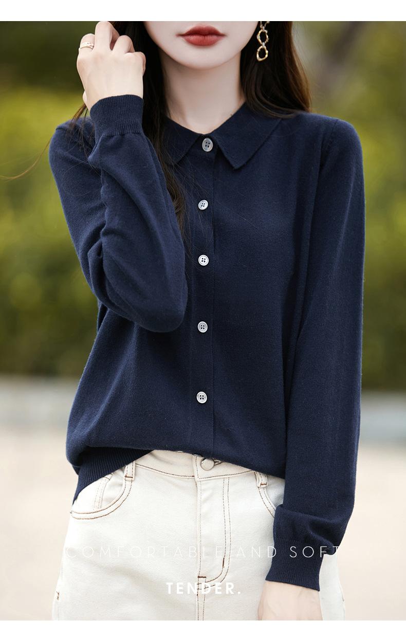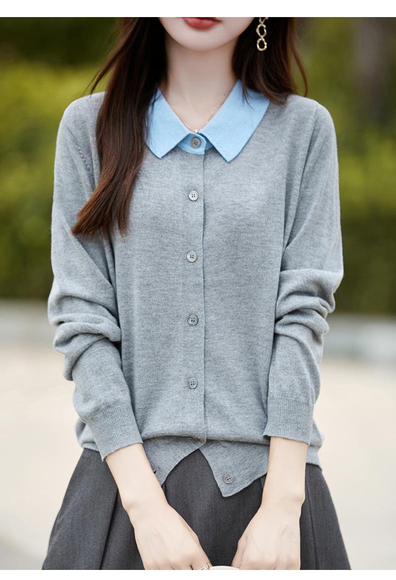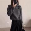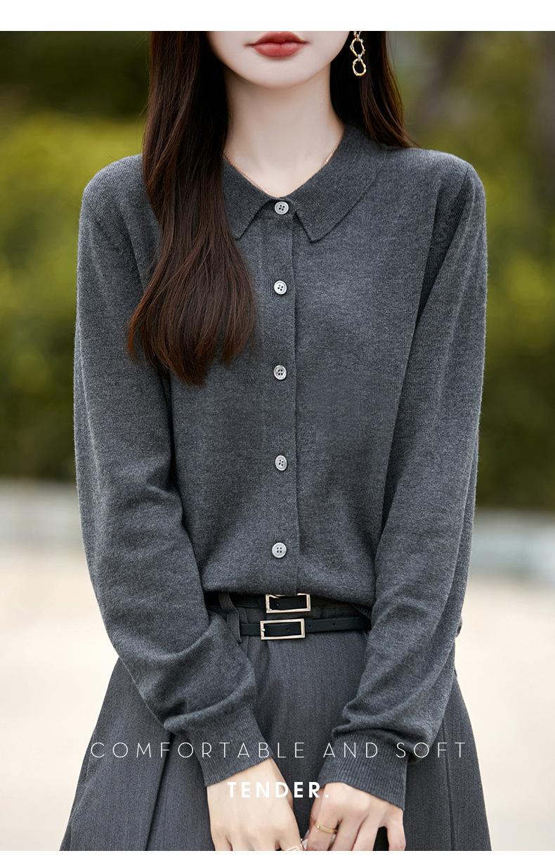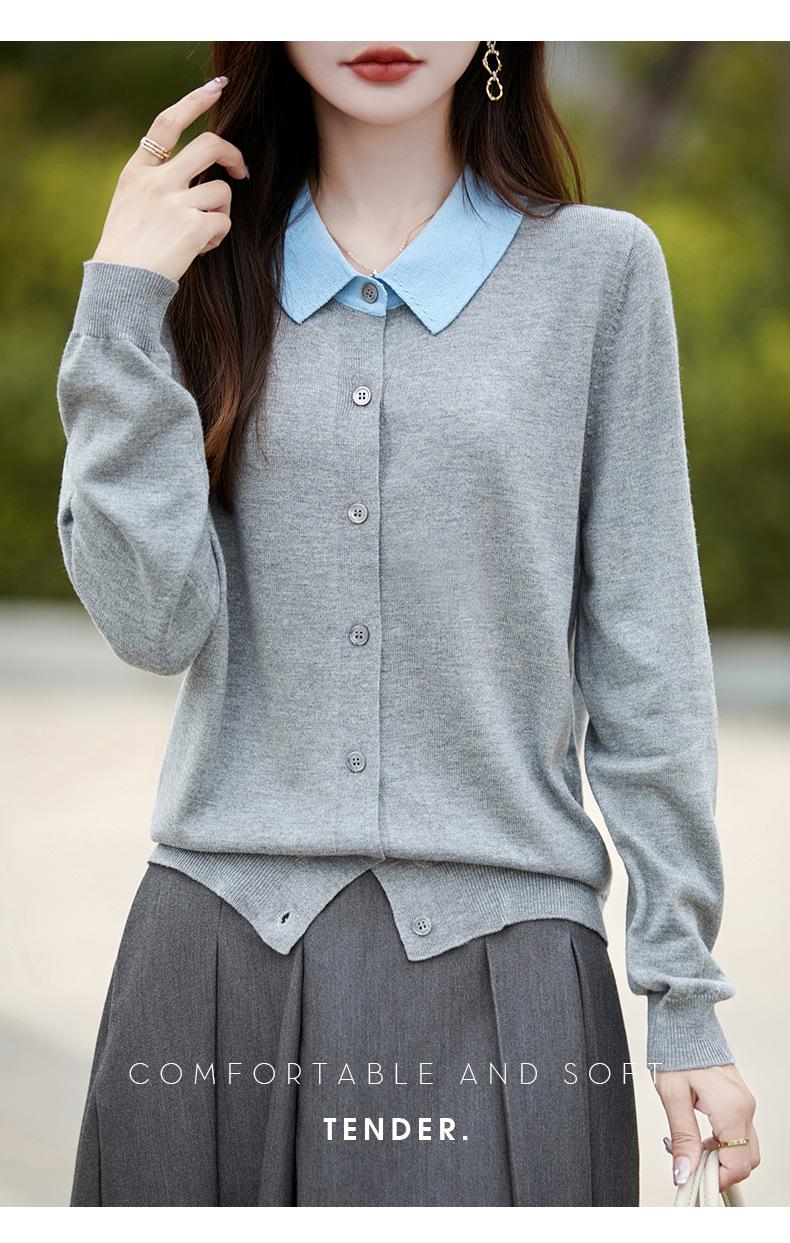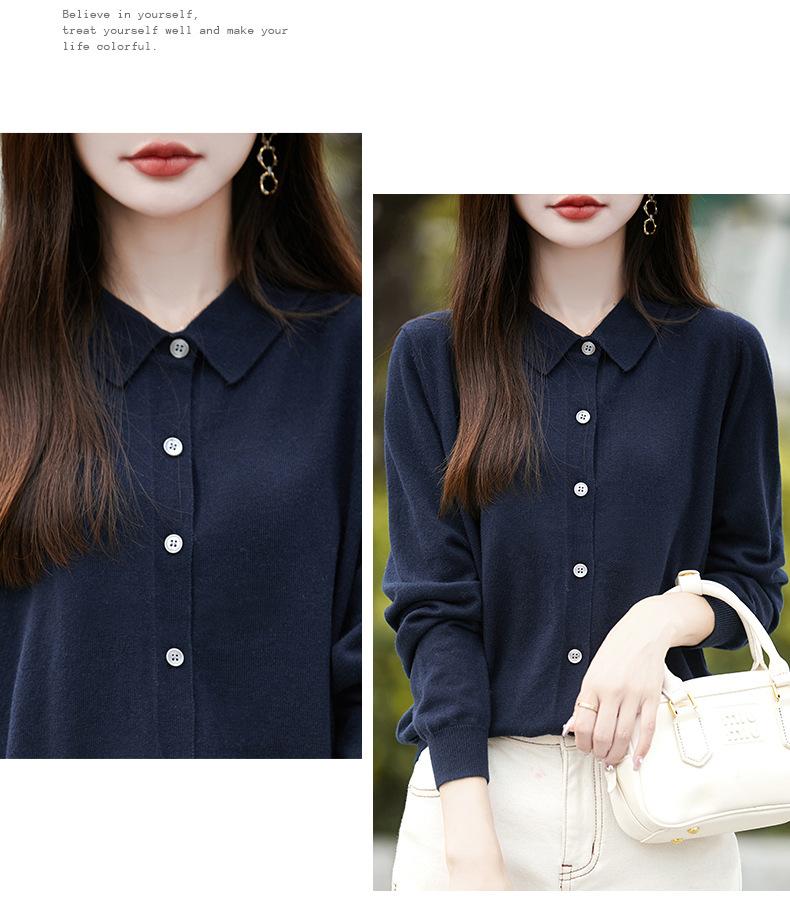 Otoño e Invierno Nuevo Abrigo Corto Suéter con Cuello de Muñeca para Mujer Cuello POLO Color de Contraste Cárdigan Tejido Top Básico para Mujer