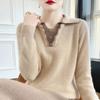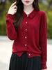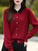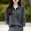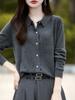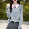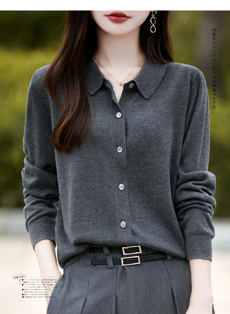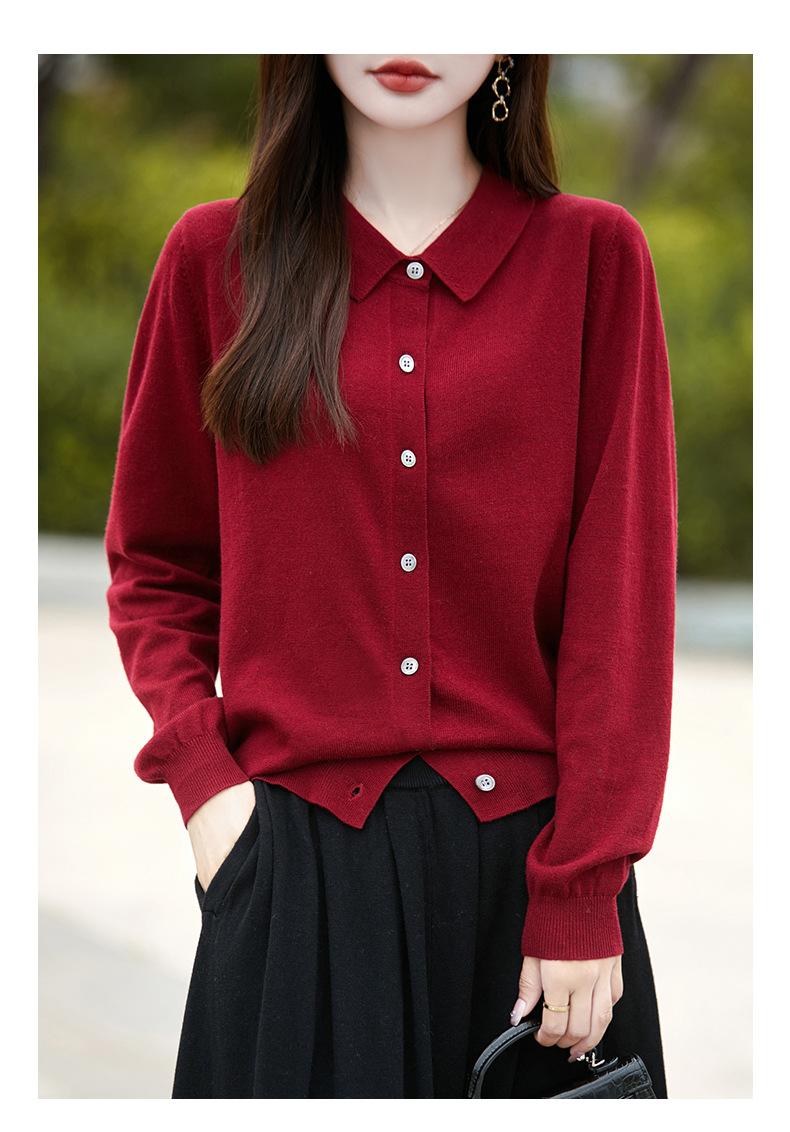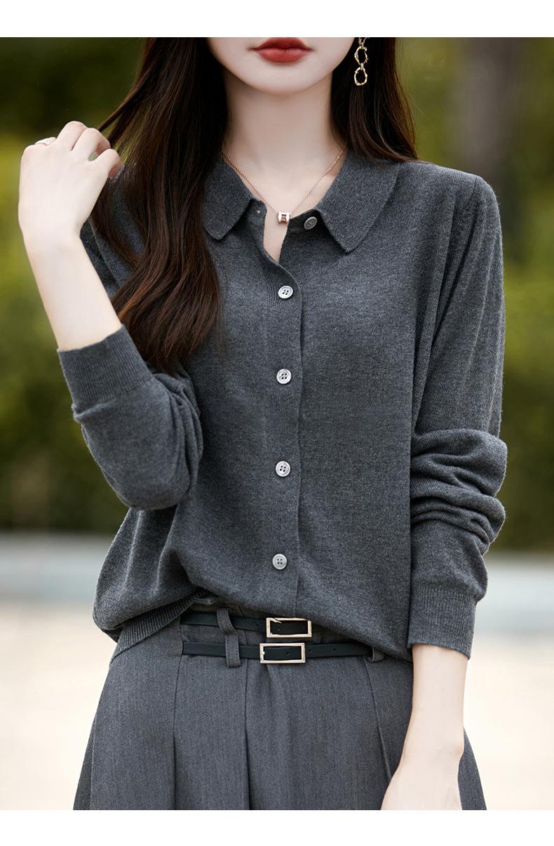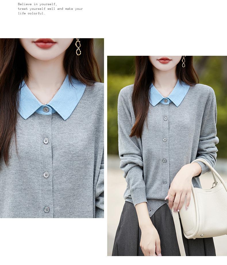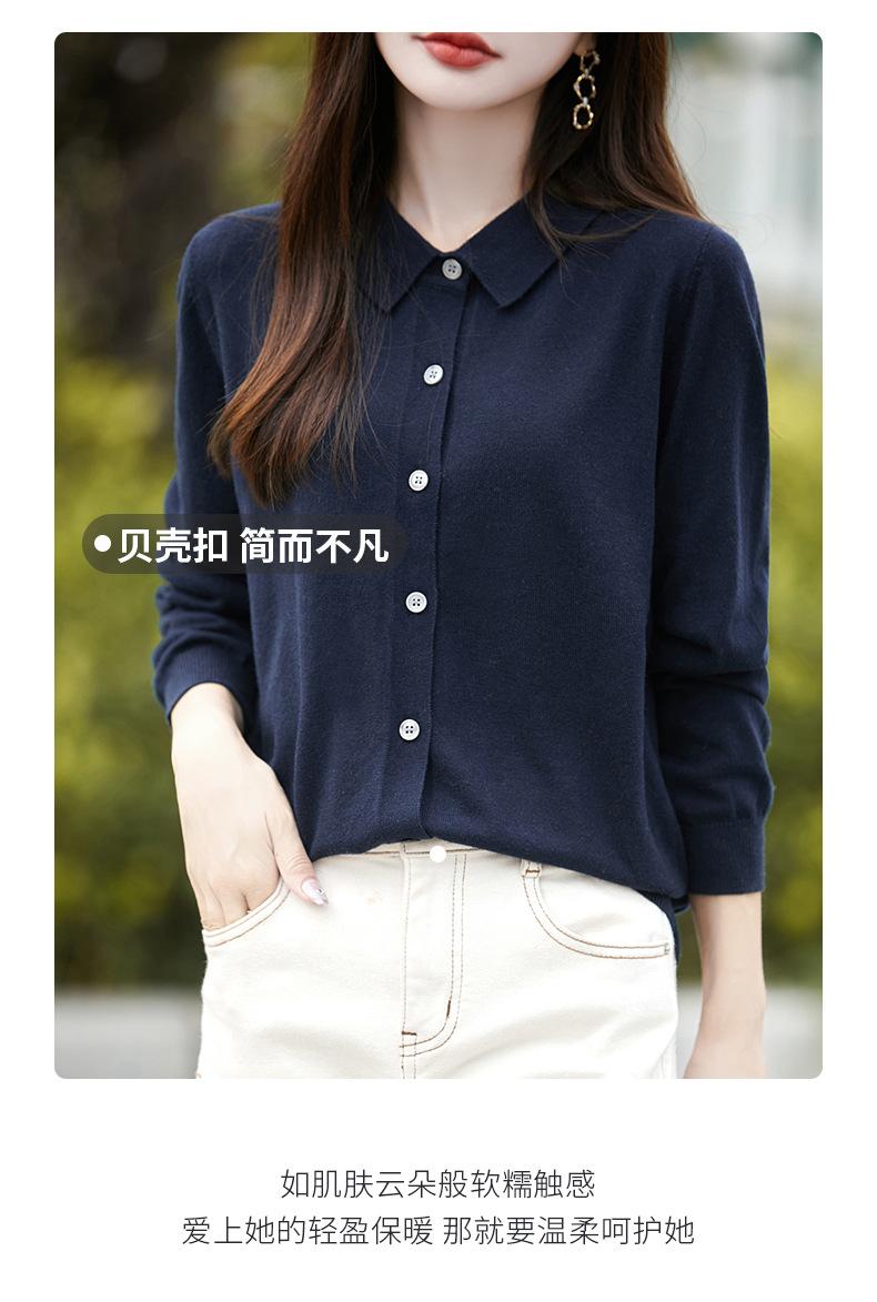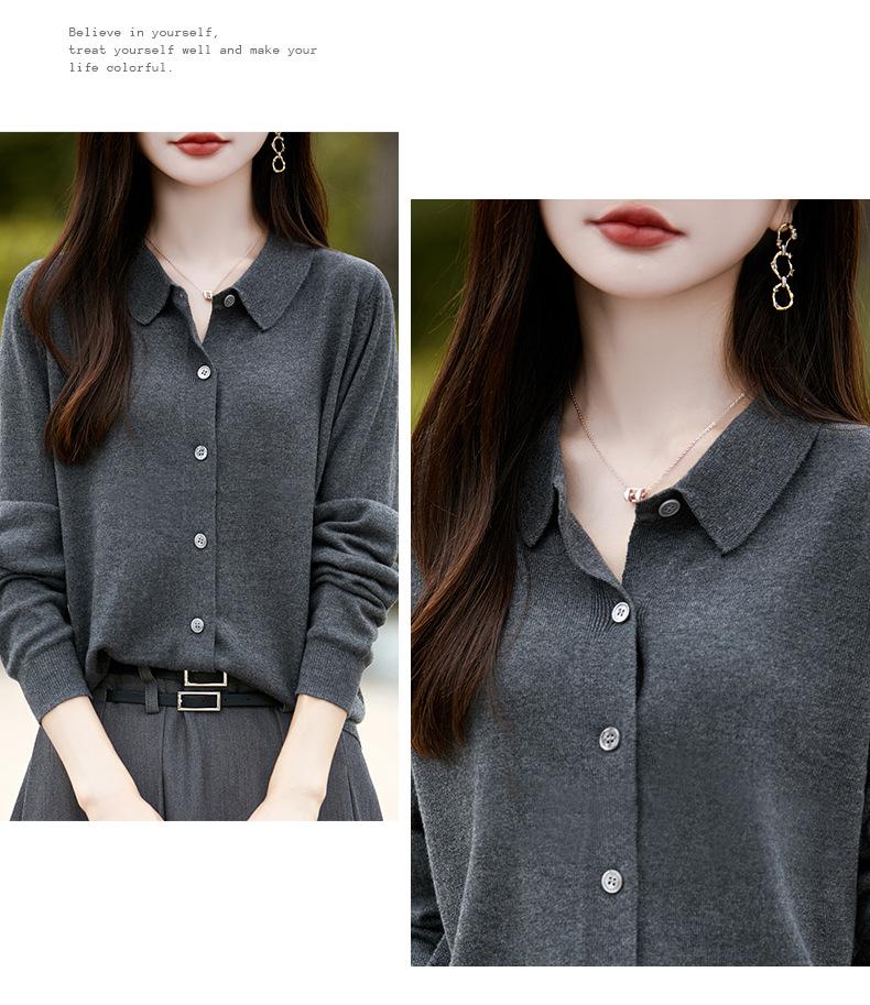 Otoño e Invierno Nuevo Abrigo Corto Suéter con Cuello de Muñeca para Mujer Cuello POLO Color de Contraste Cárdigan Tejido Top Básico para Mujer