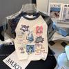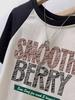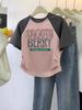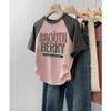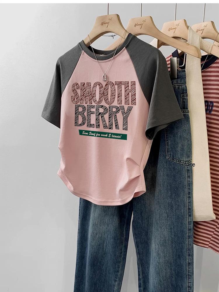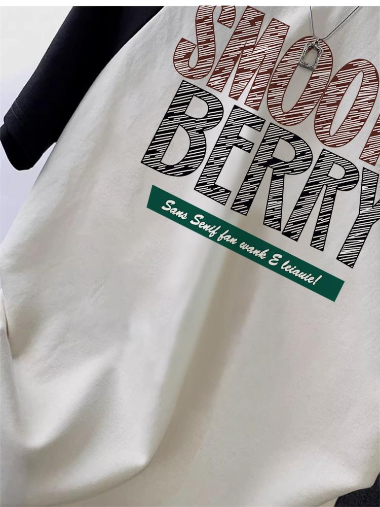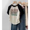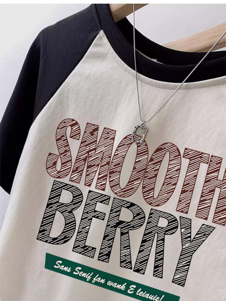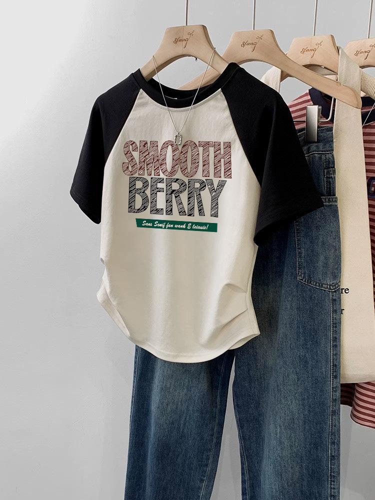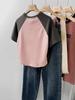 Camiseta de Manga Corta Raglán de Alta Gama para Mujer en Verano, Diseño de Color Contrastante para Personas Pequeñas, Top Camiseta Nicho Hombro Derecho