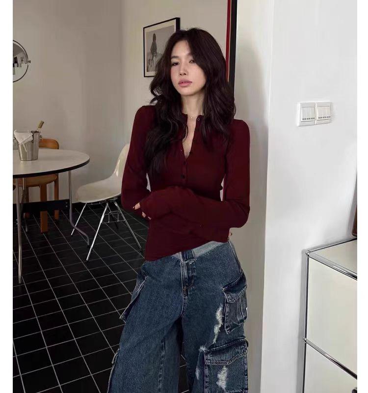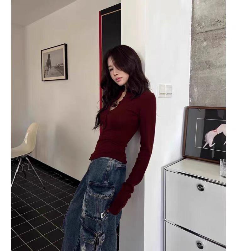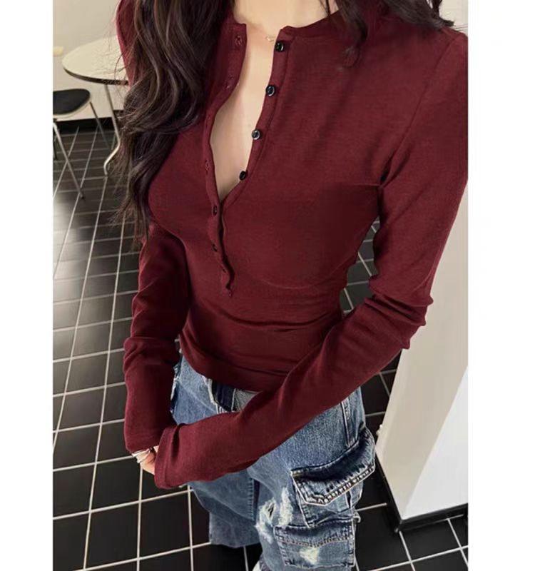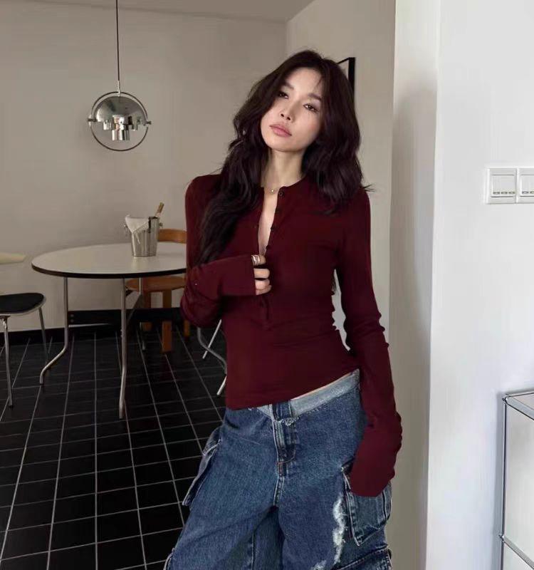 Camiseta básica de manga larga, ajustada, corta y ajustada para chicas calientes, con cuello medio abierto, Pure Desire, top sexy que combina con todo.