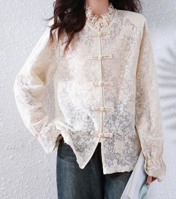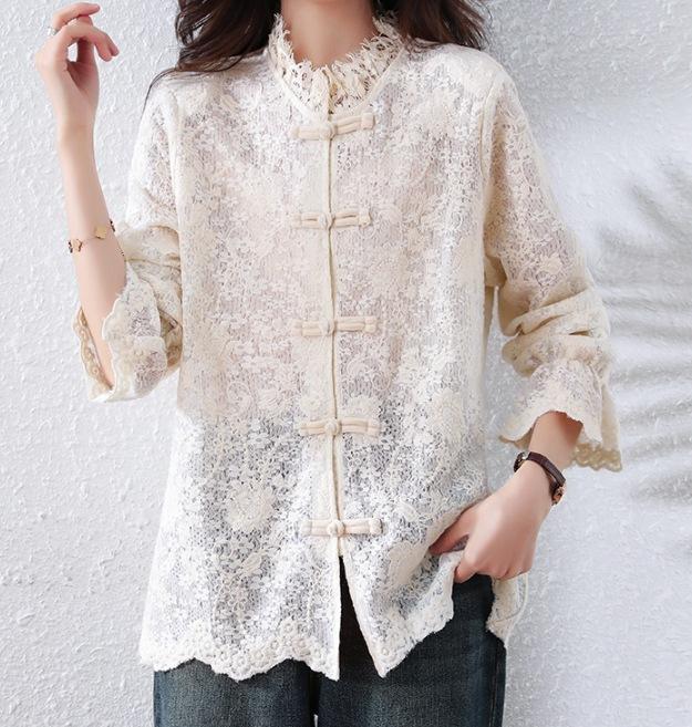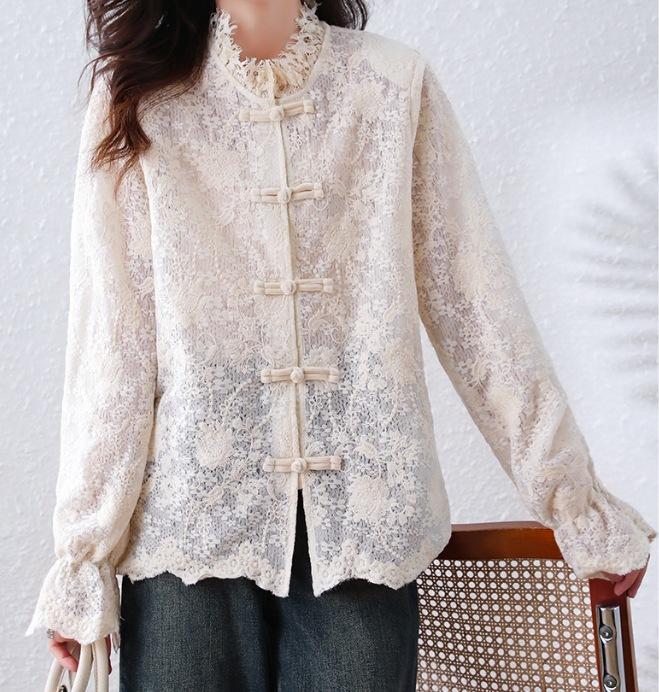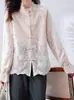 Camisa Bordada de Encaje Estilo Chino Nuevo para Mujer Primavera 2025 Nuevo Diseño de Estilo Francés Nicho Estilo Nacional Ligero Top con Hebilla