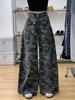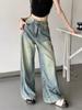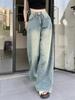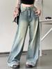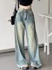 Pantalones vaqueros vintage nostálgicos de pierna ancha lavados para mujer, pantalones rectos holgados de cintura alta y adelgazantes para otoño