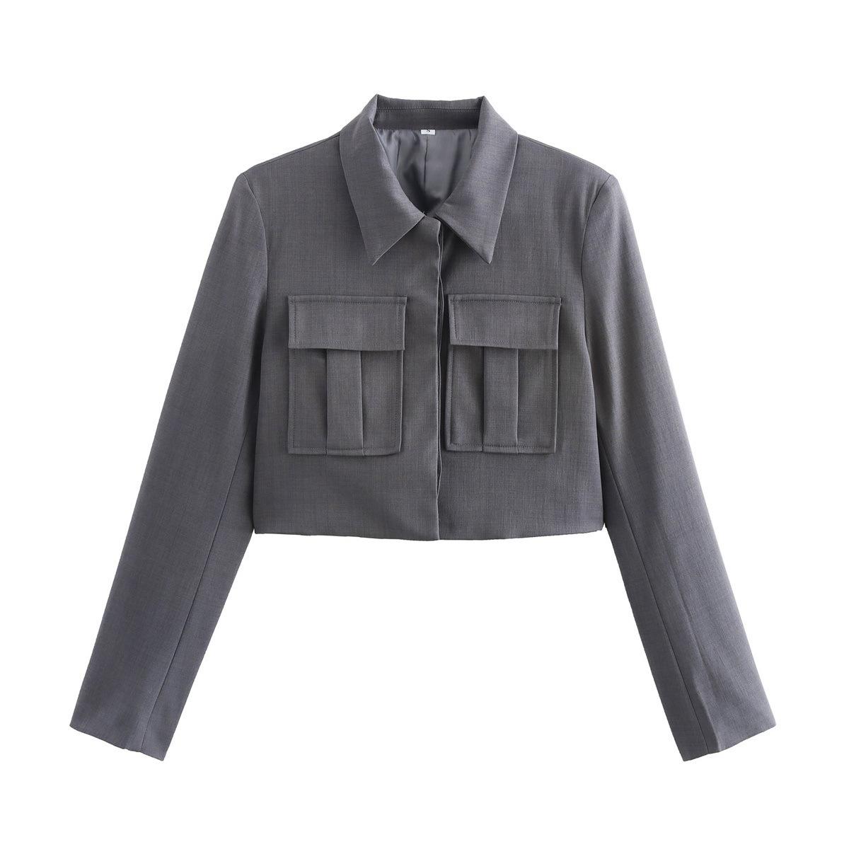 Camisa de manga larga con doble bolsillo para mujer, estilo transfronterizo europeo y americano, con personalidad y temperamento, primavera y otoño 2025, A125003