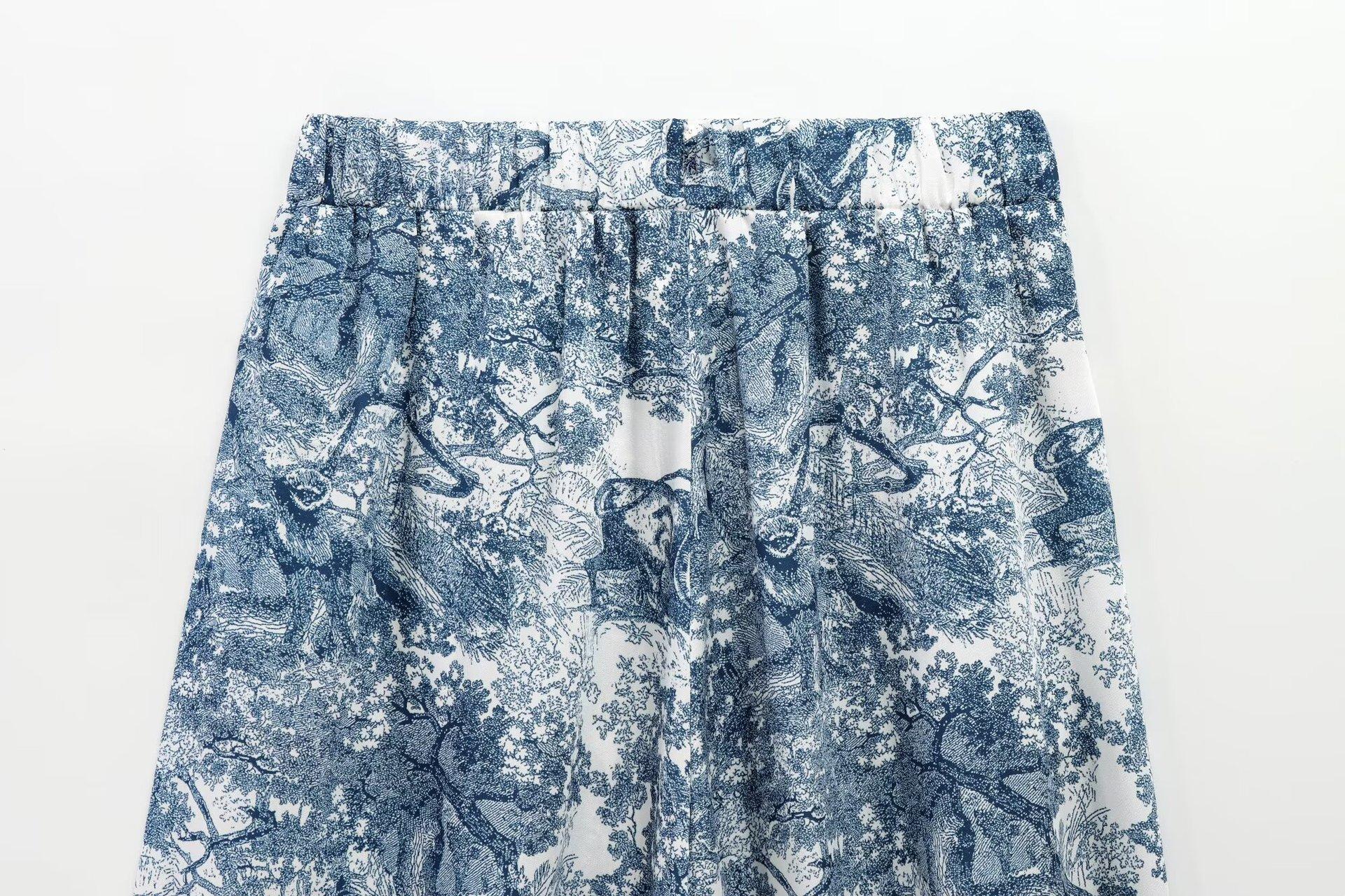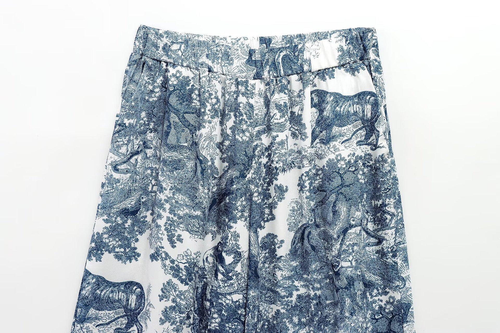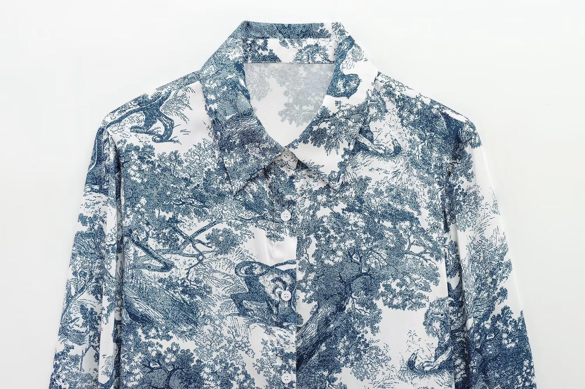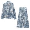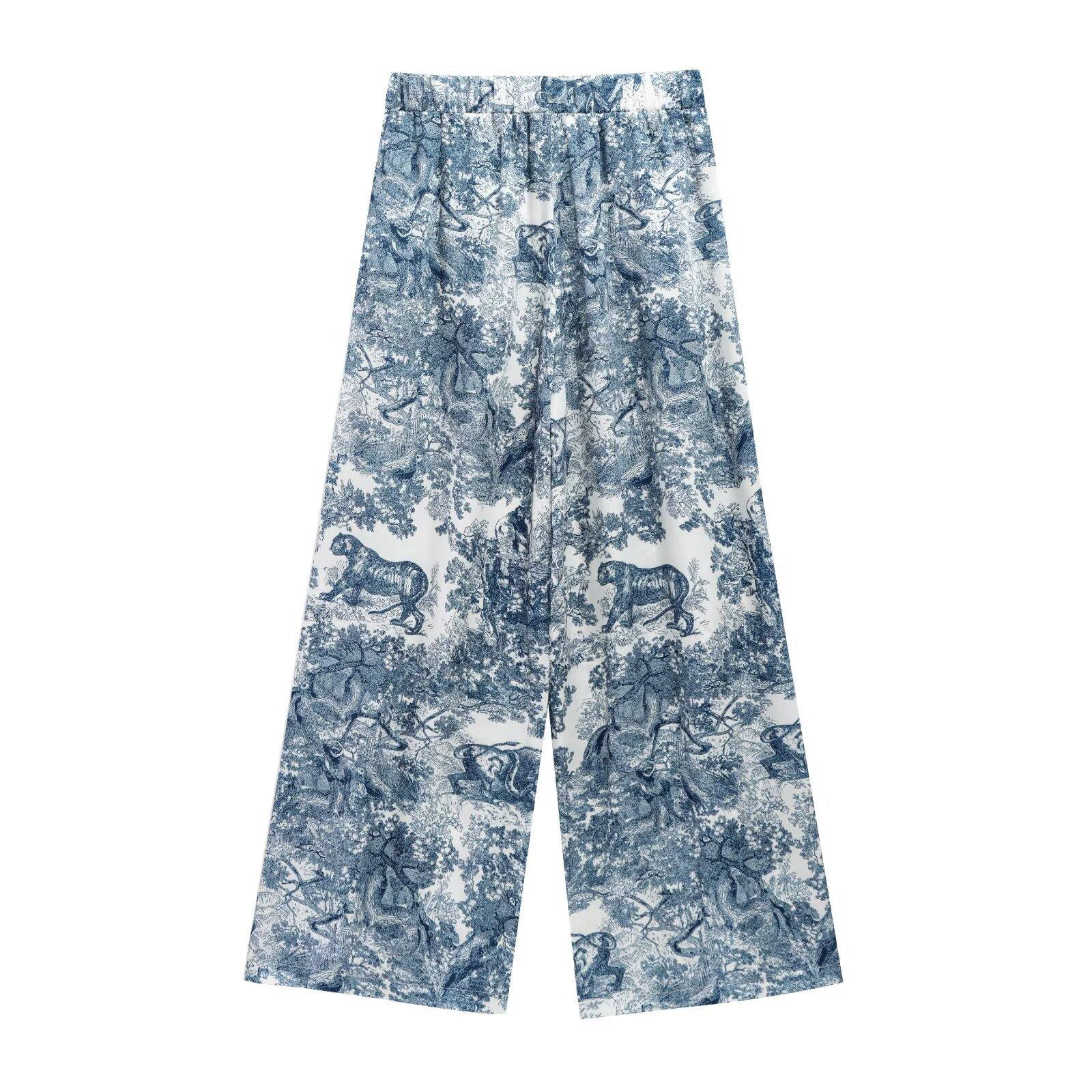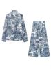 Camisa holgada casual estampada de manga larga para mujer europea y americana transfronteriza 2025 primavera nueva, pantalones de pierna ancha de cintura alta