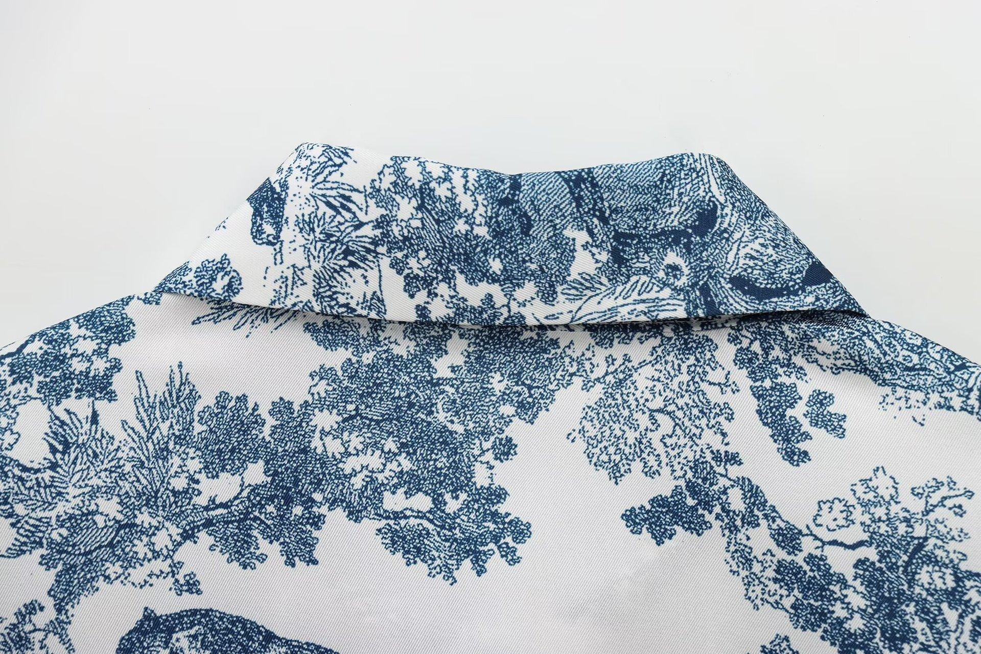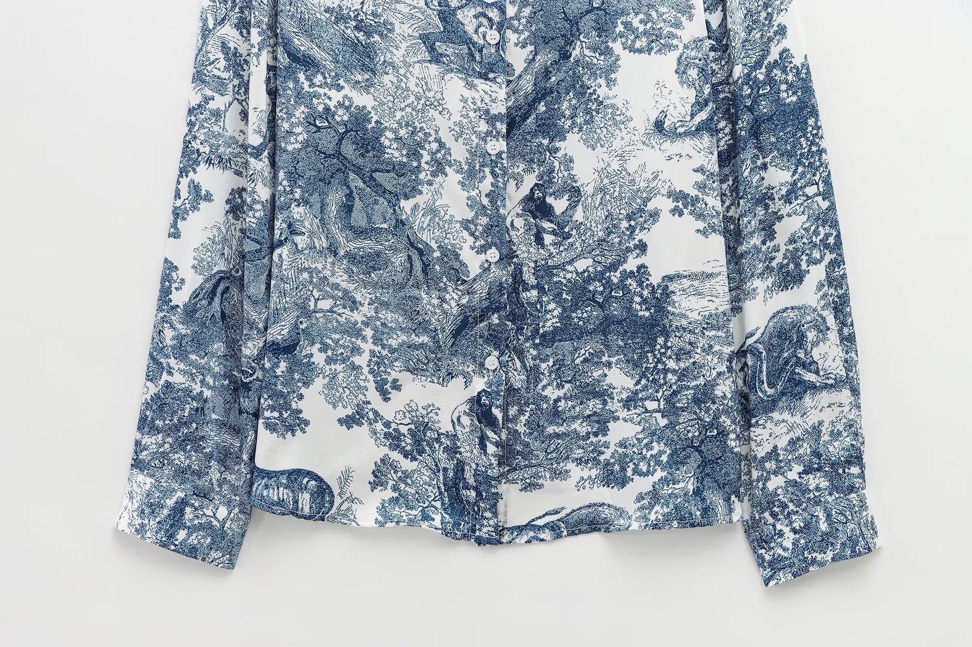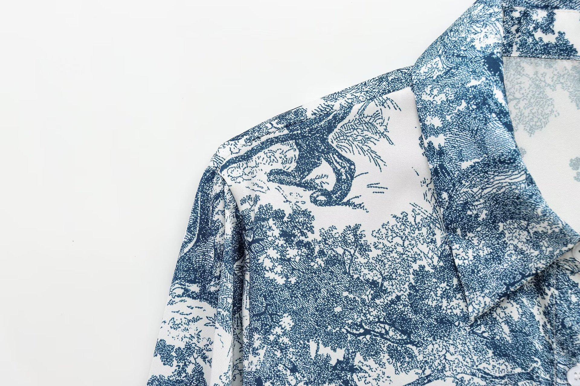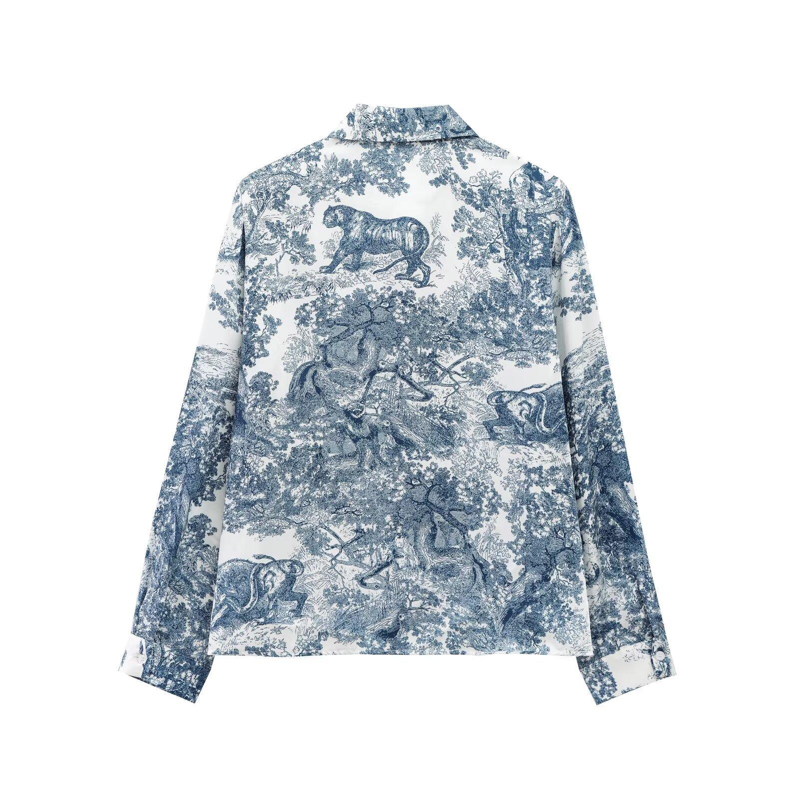 Camisa holgada casual estampada de manga larga para mujer europea y americana transfronteriza 2025 primavera nueva, pantalones de pierna ancha de cintura alta