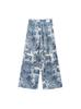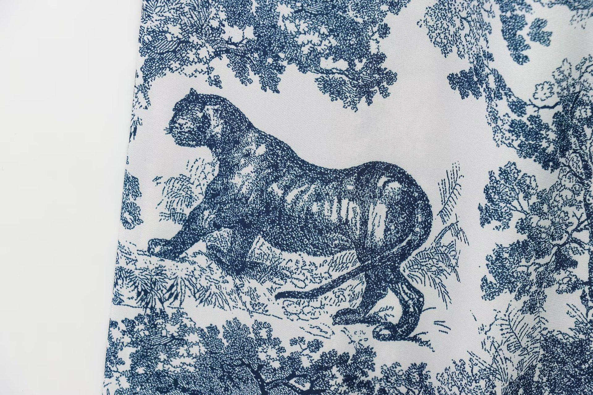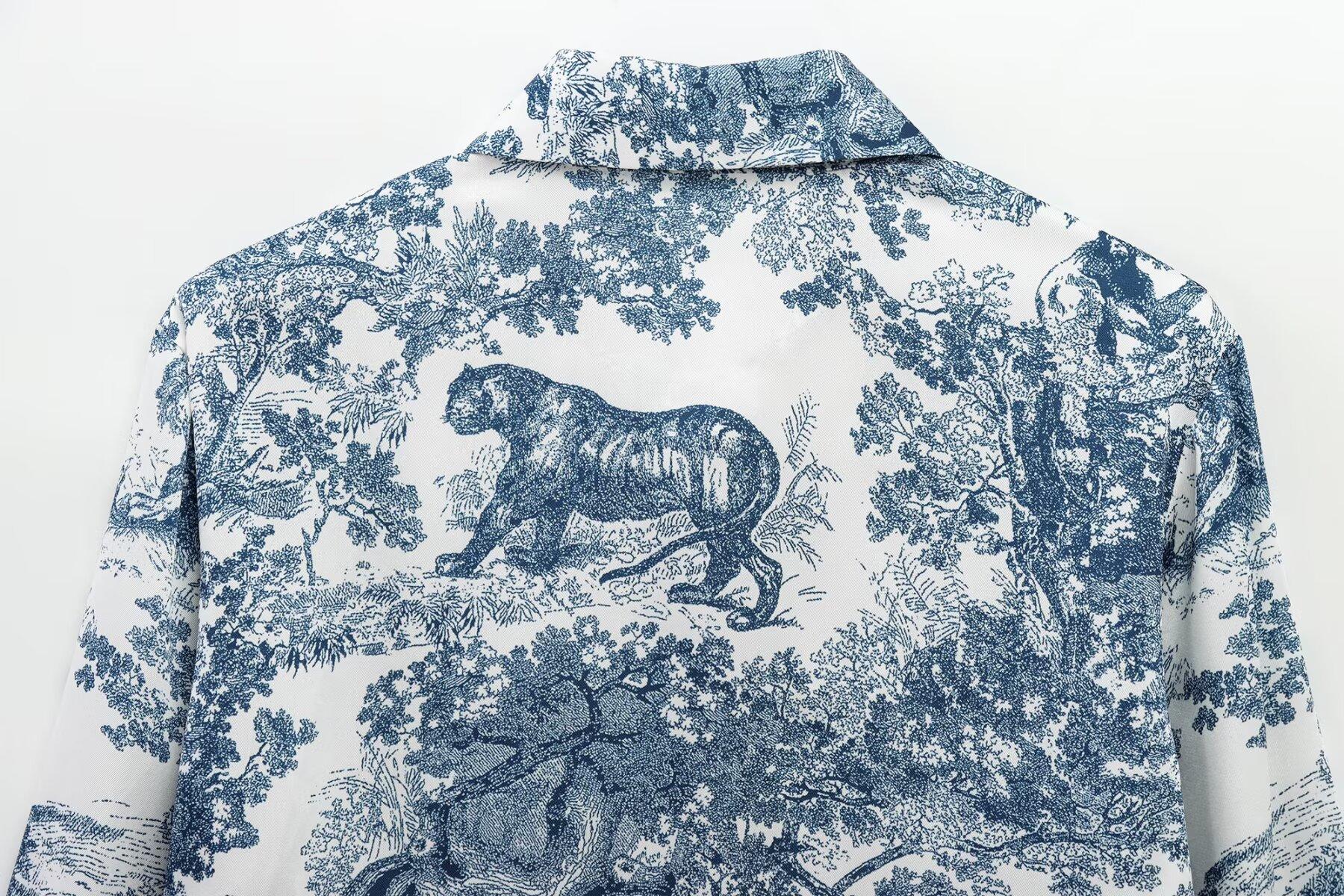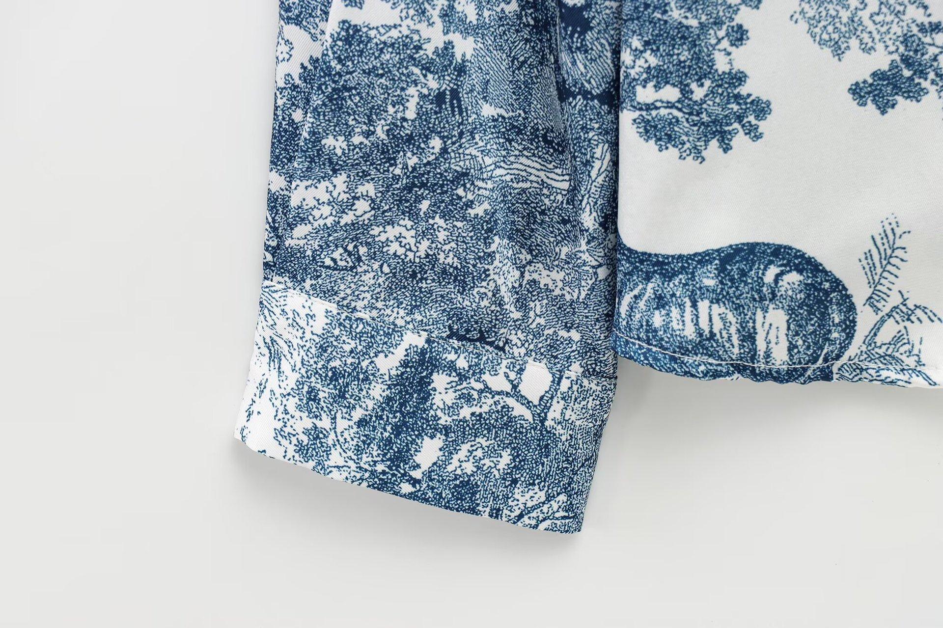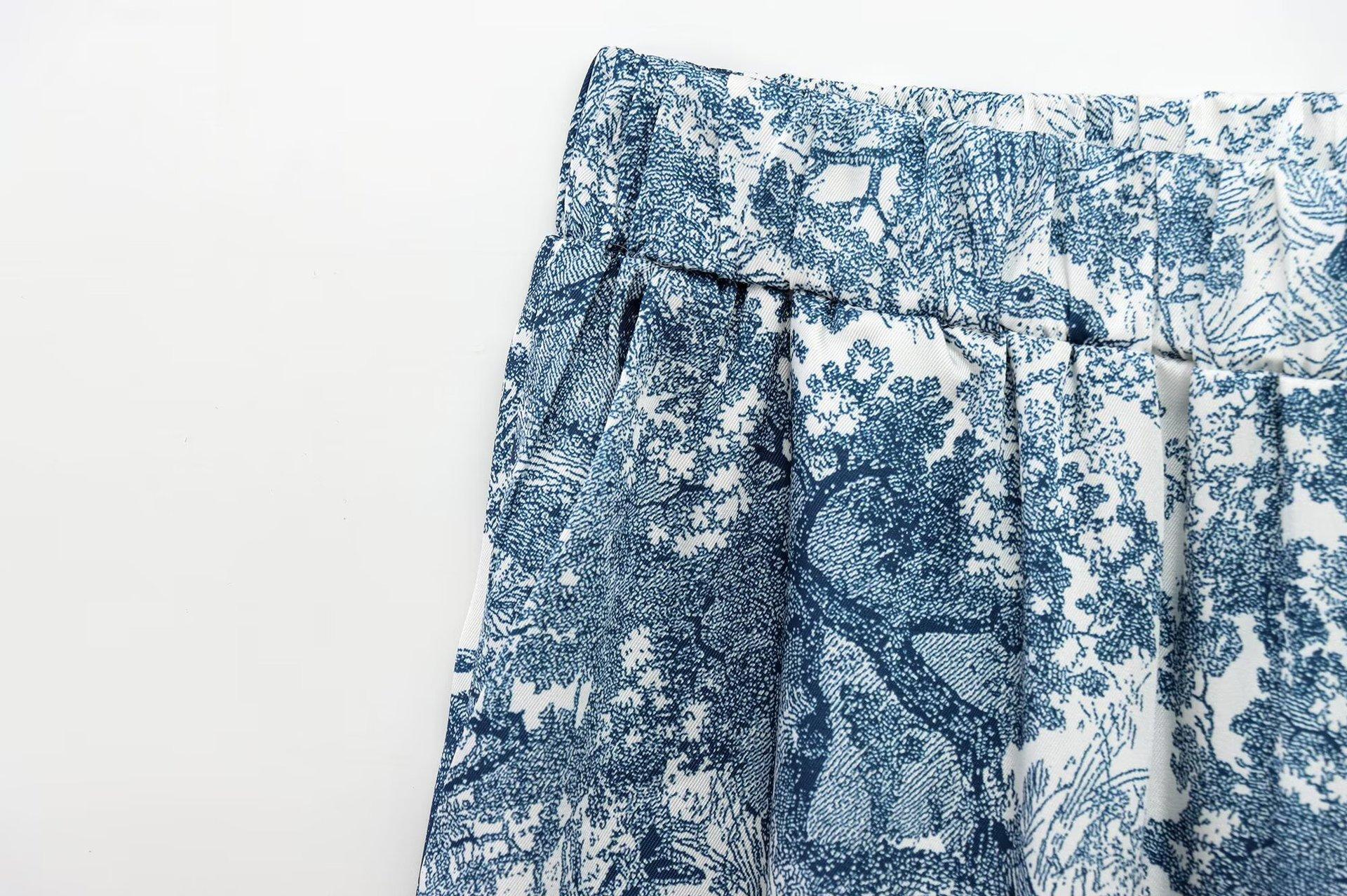 Camisa holgada casual estampada de manga larga para mujer europea y americana transfronteriza 2025 primavera nueva, pantalones de pierna ancha de cintura alta