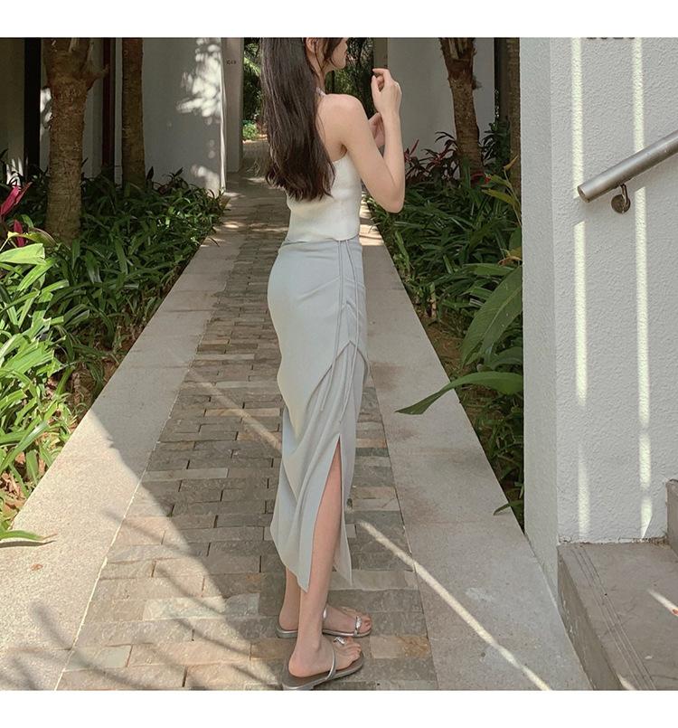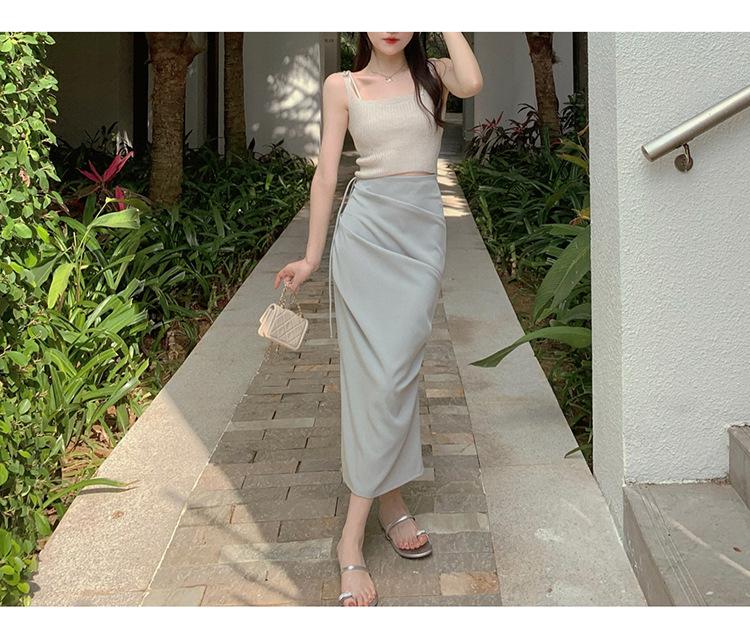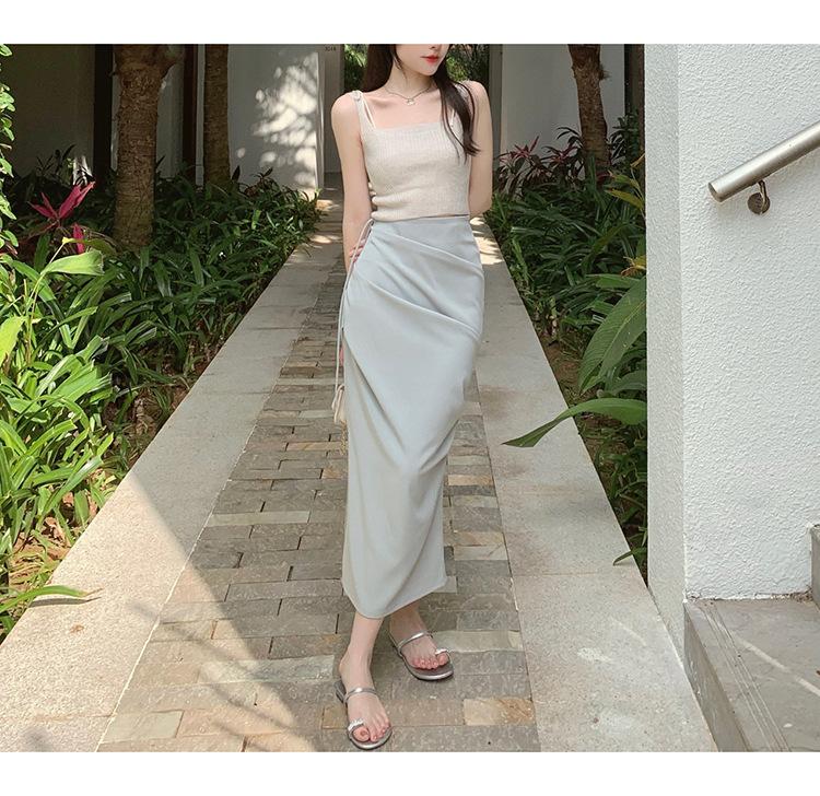 Falda con diseño de tiras plisadas escalonadas ~ Falda ajustada a la cadera para mujer 2025 Nuevo