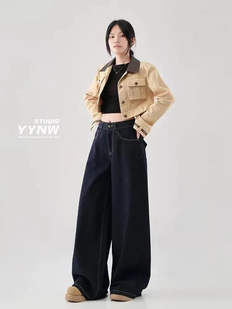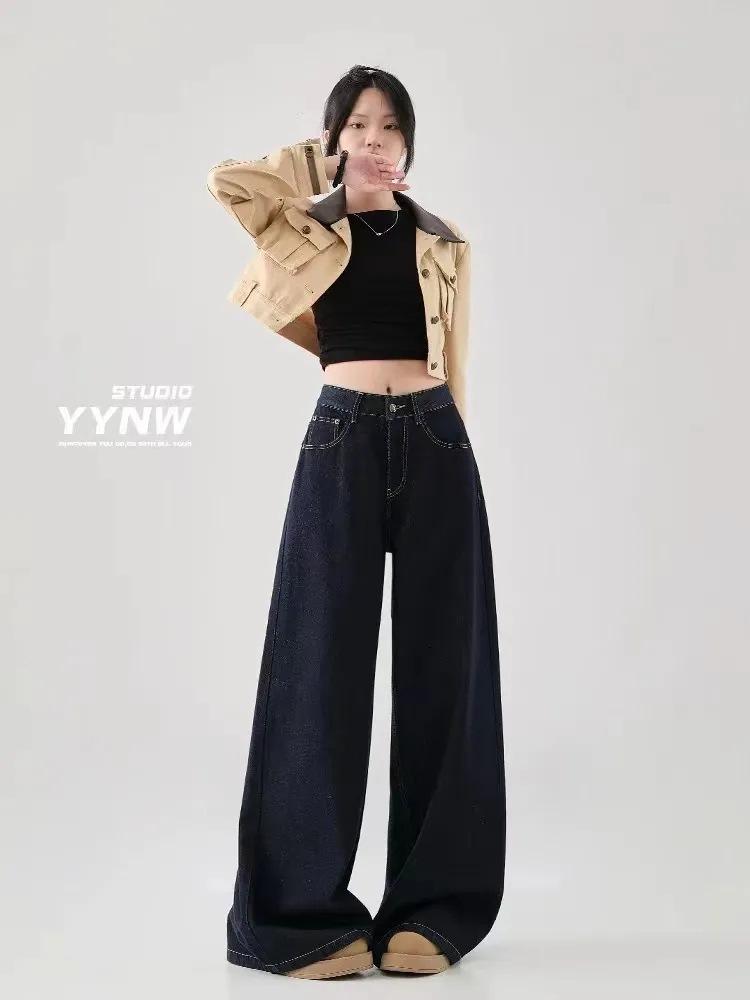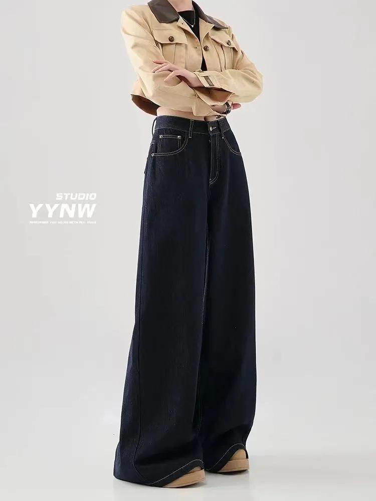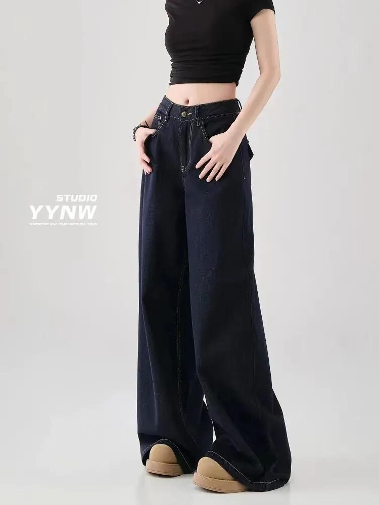Pantalones vaqueros de cintura alta y pierna ancha para mujer, color original, otoño 2025, estilo americano, retro, rectos, sueltos, informales