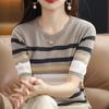 Camisa de rayas para mujer, estilo occidental, otoño e invierno, cuello redondo, holgada, adelgazante, de manga larga, combinable, informal, de algodón.