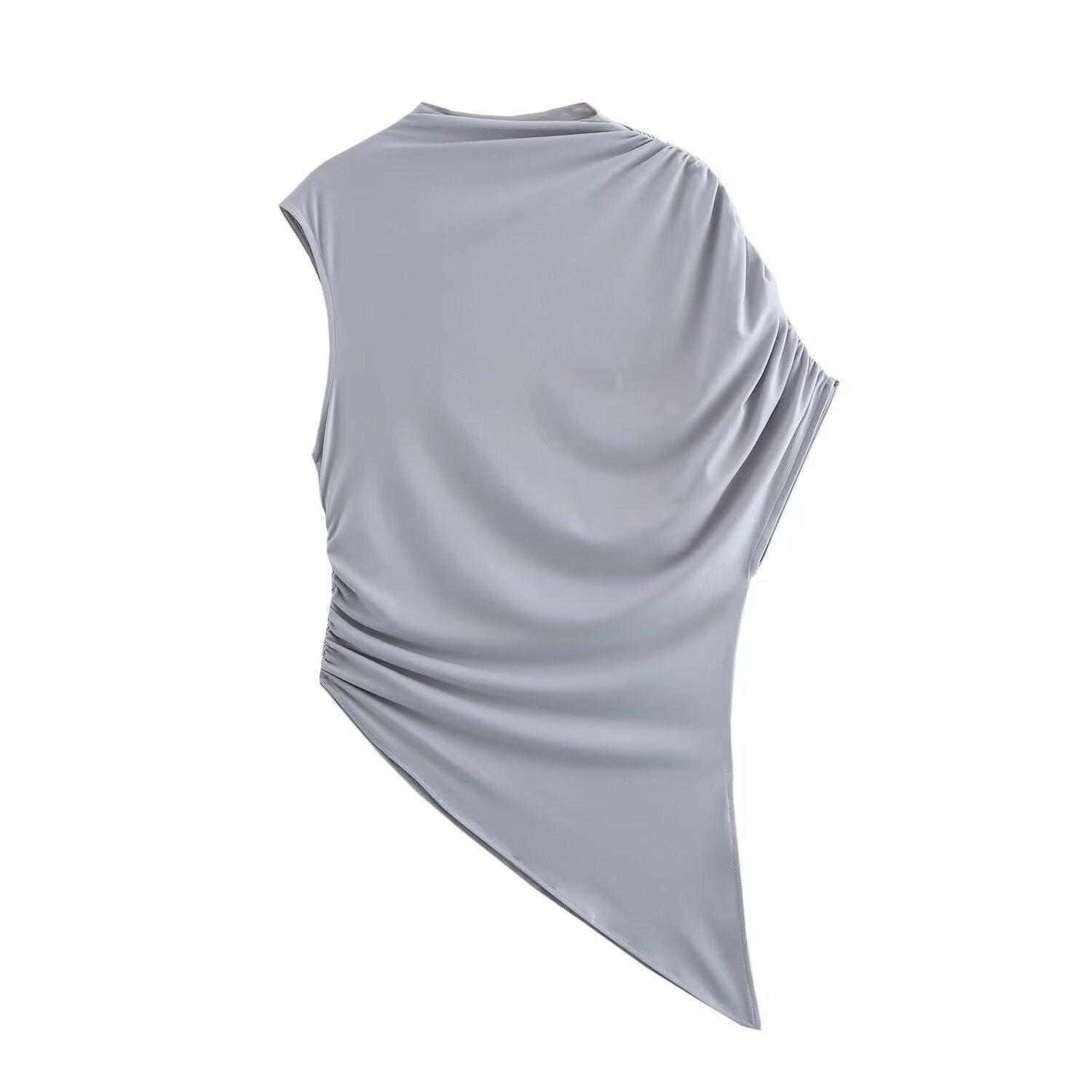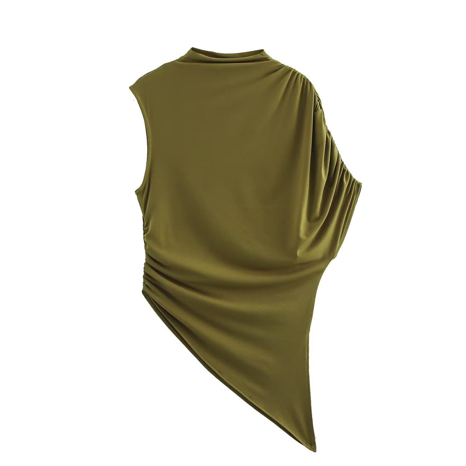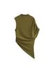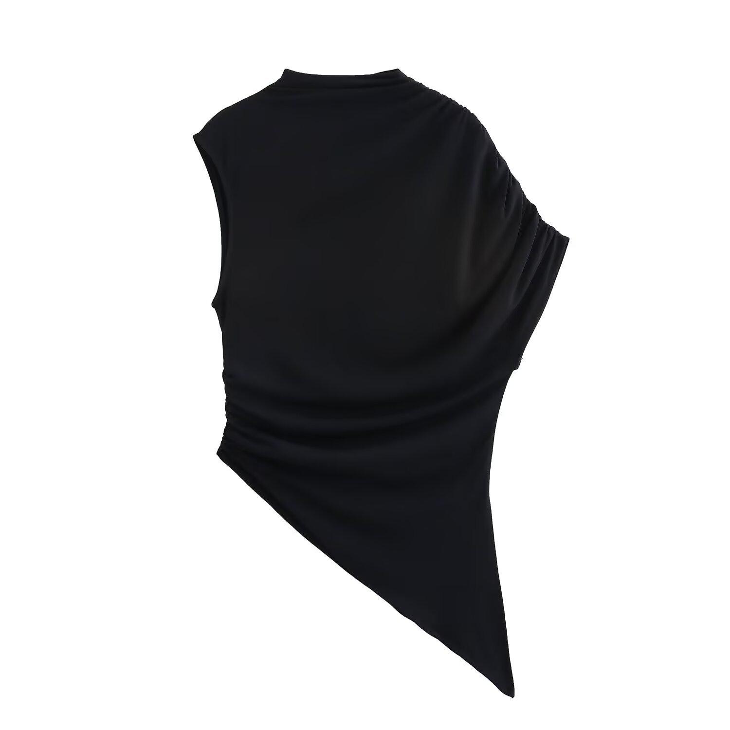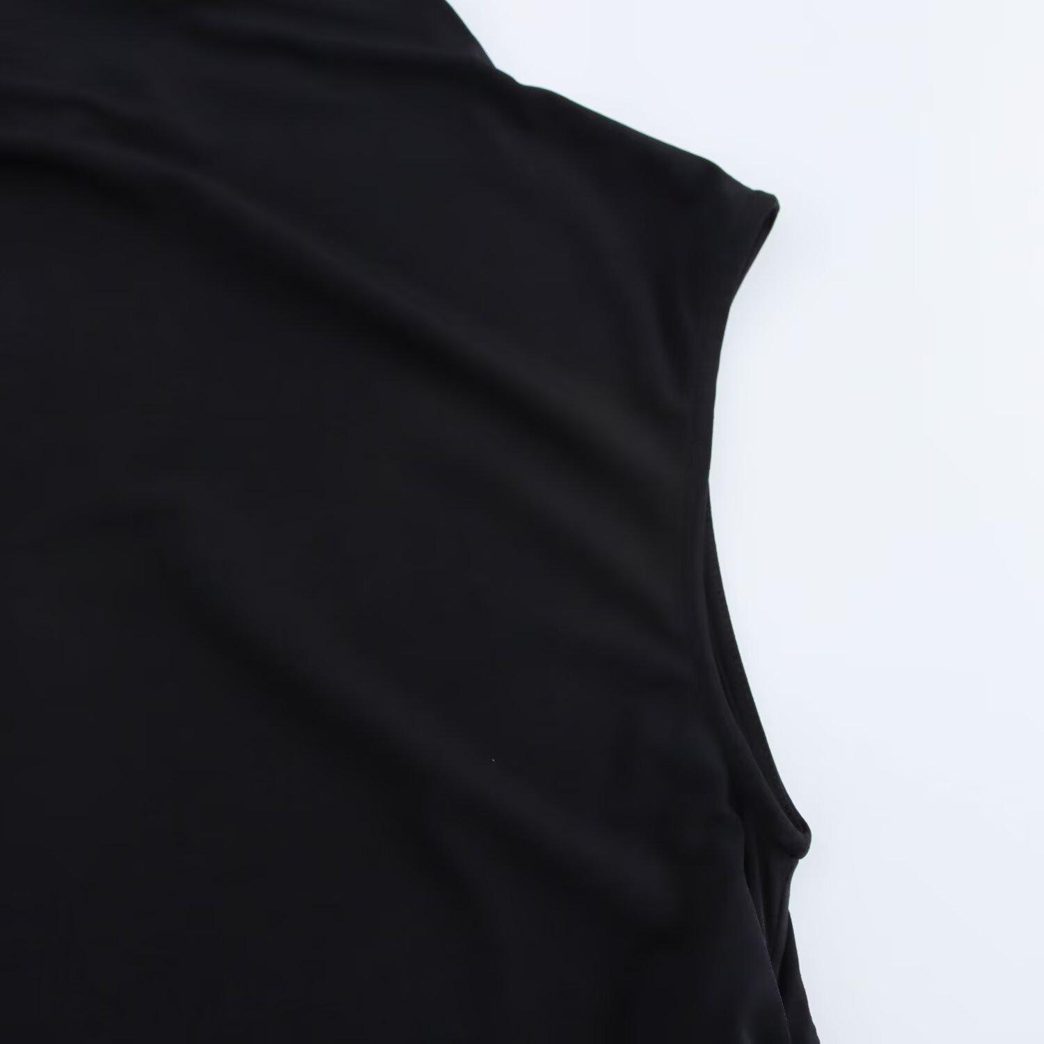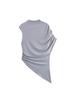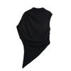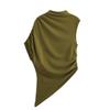 Camiseta de manga corta plisada con cuello medio alto y diseño de nicho retro americano para mujer, verano 2025, nueva camiseta corta ajustada