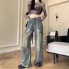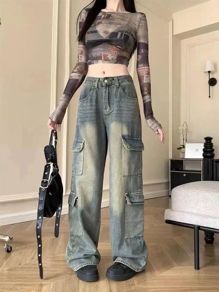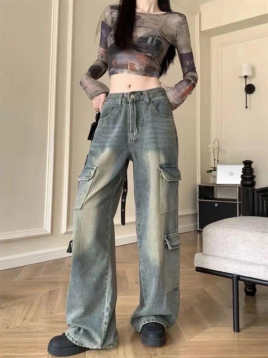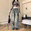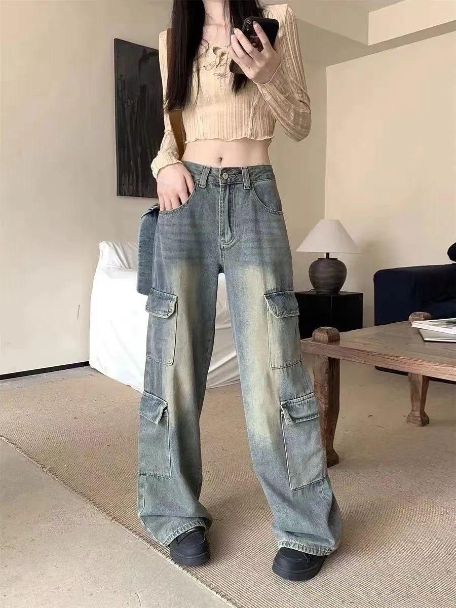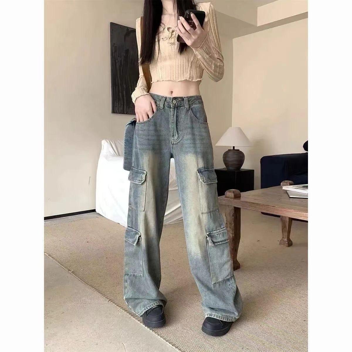 Pantalones vaqueros vintage para mujer, de color claro, holgados, combinables, rectos, de pierna ancha y cintura alta, ajustados.