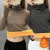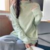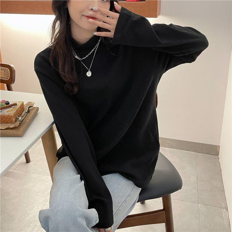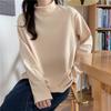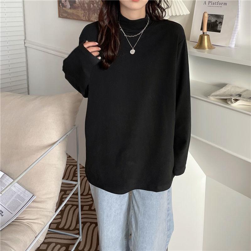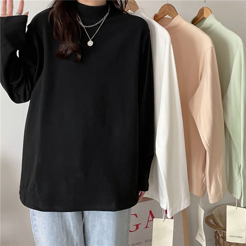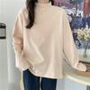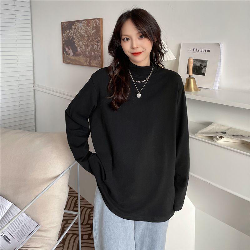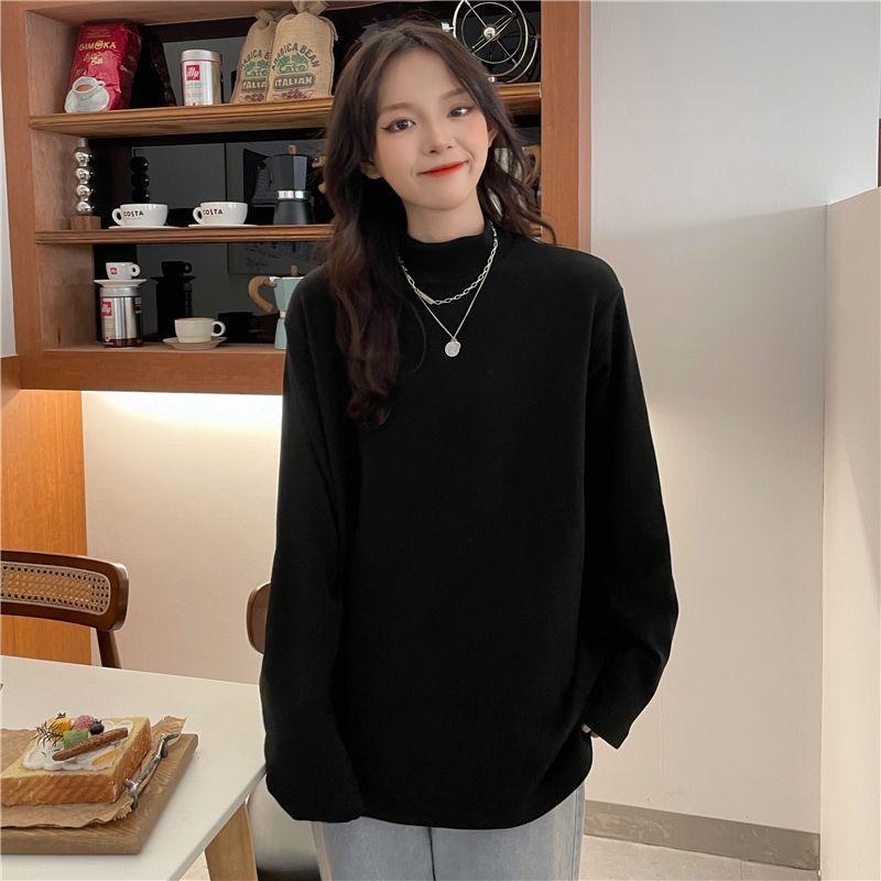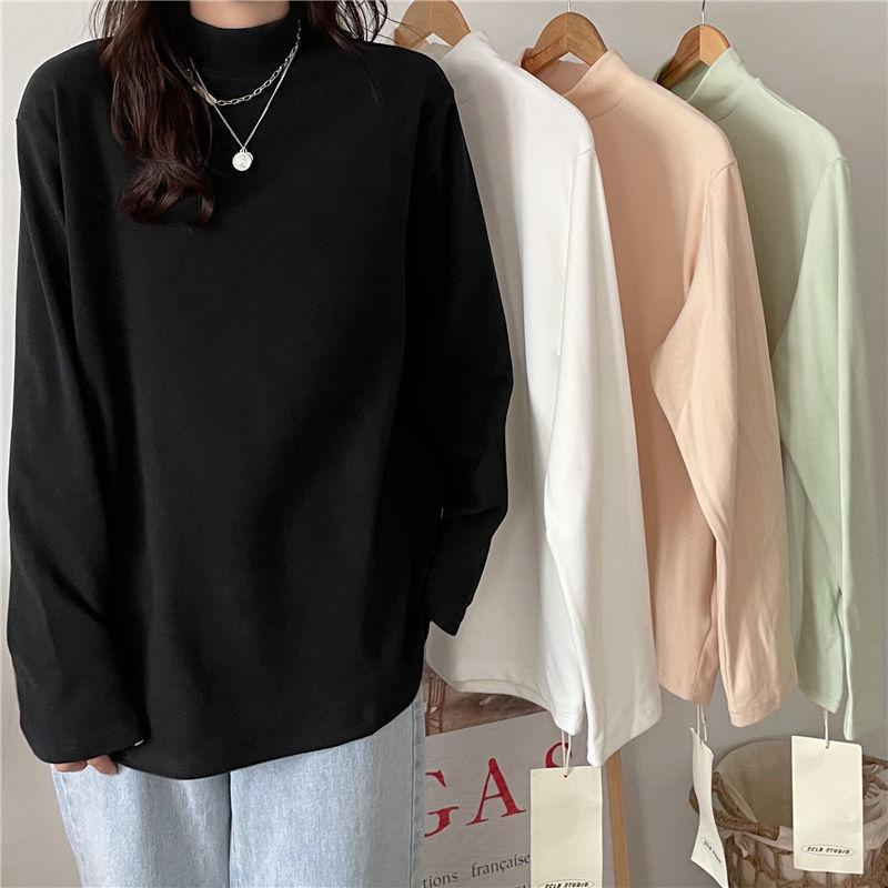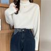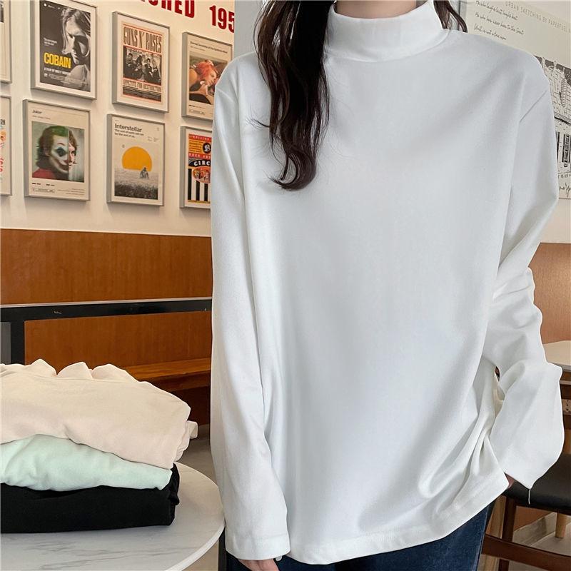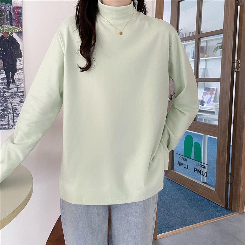 Camiseta básica con forro polar de color crema para otoño e invierno, camiseta de cuello alto para mujer, camiseta interior de manga larga para estudiantes, camiseta cálida para mujer