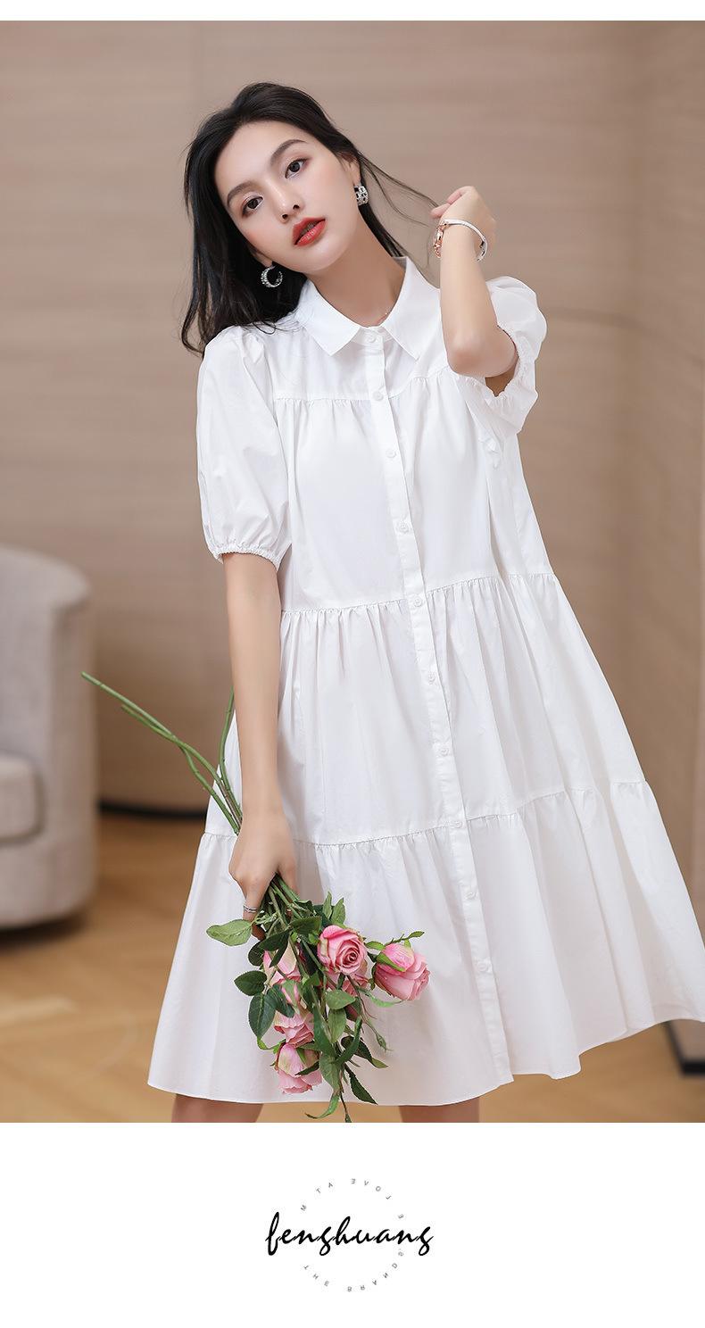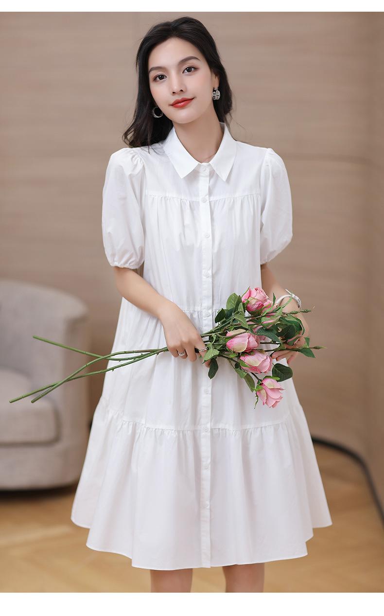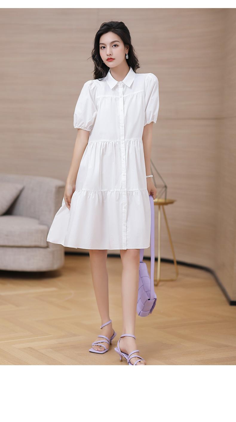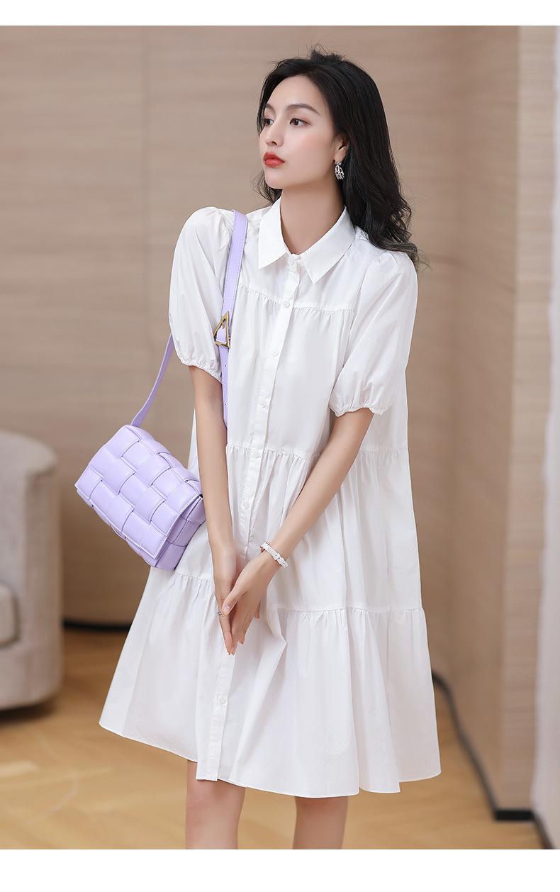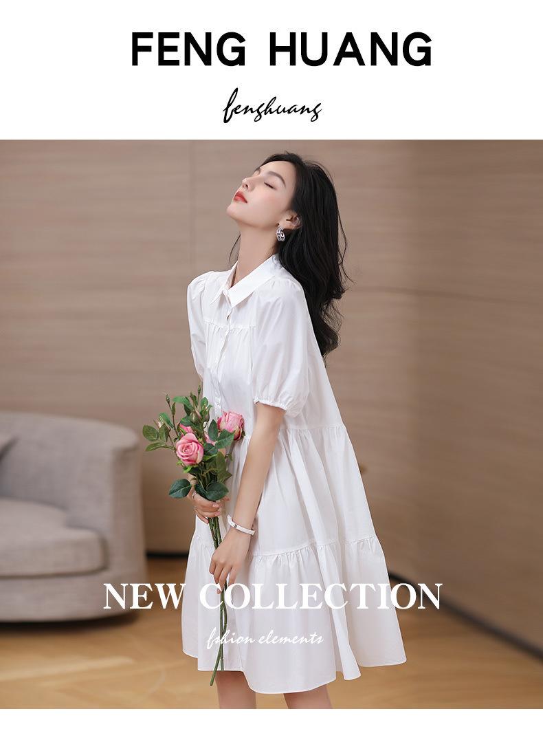Vestido blanco holgado y ajustado, recién llegado, elegante vestido camisero estilo francés con mangas abullonadas para mujer, vestido de diseño Sense Niche para mujer
