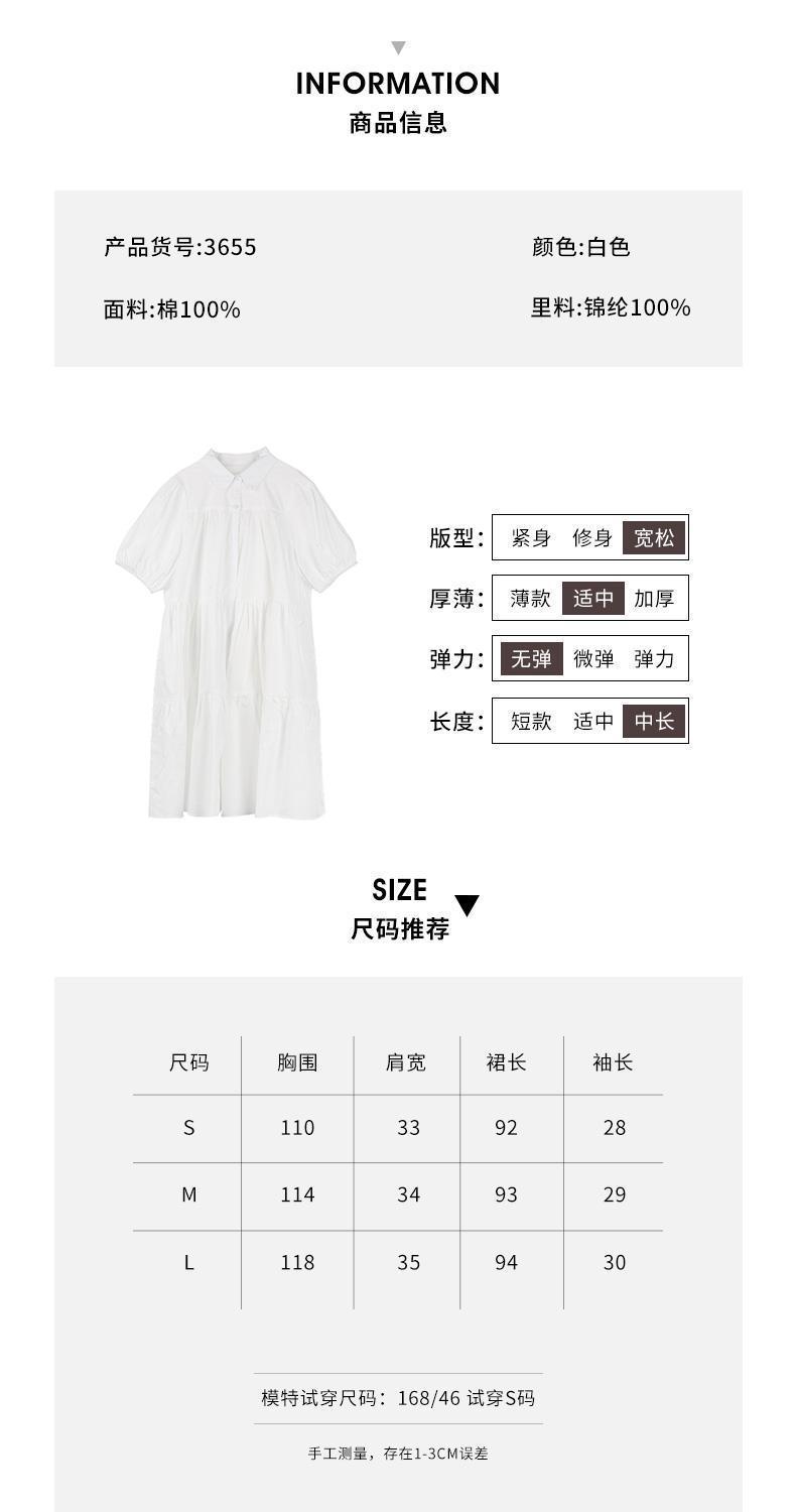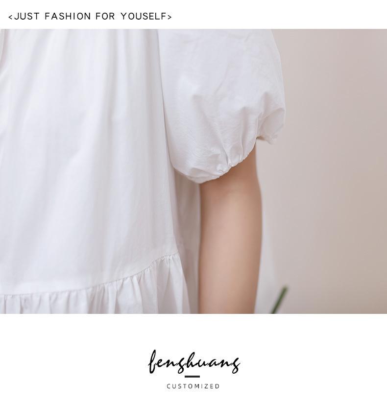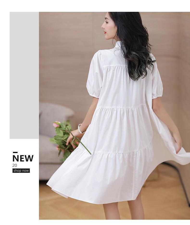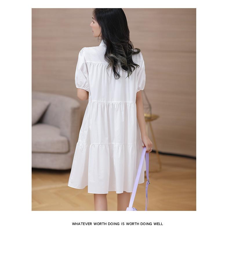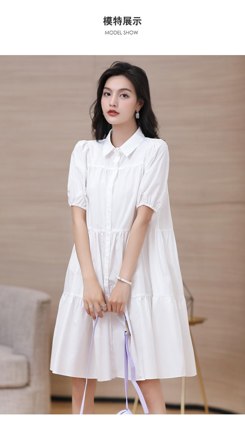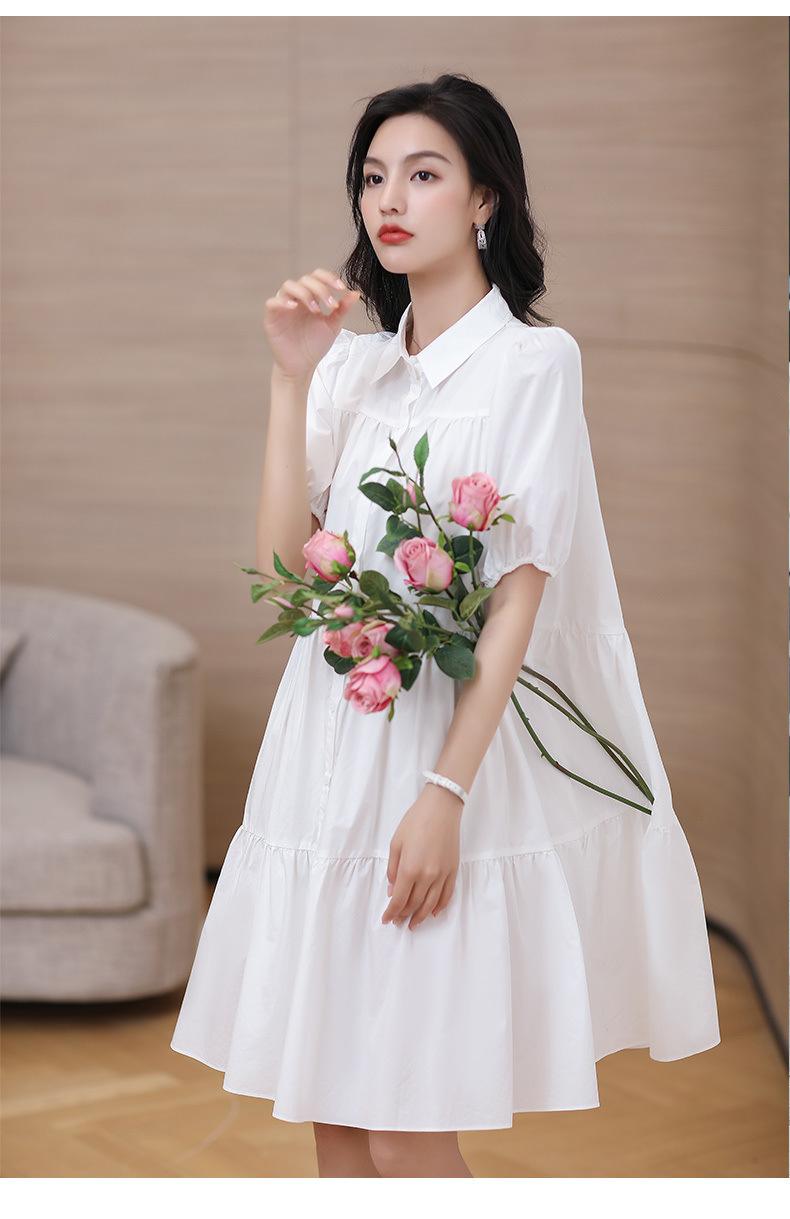Vestido blanco holgado y ajustado, recién llegado, elegante vestido camisero estilo francés con mangas abullonadas para mujer, vestido de diseño Sense Niche para mujer