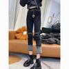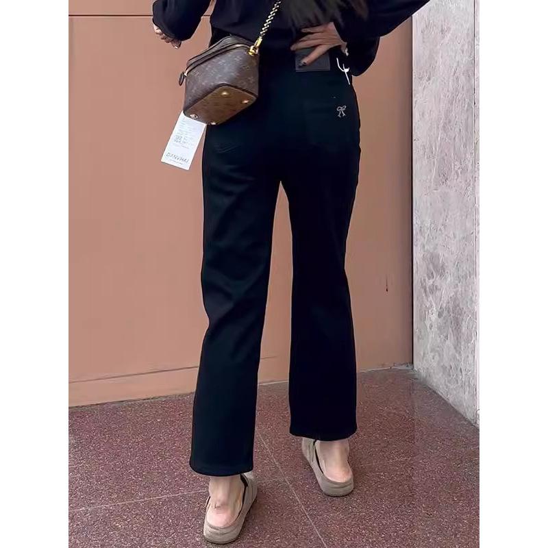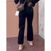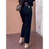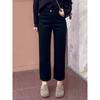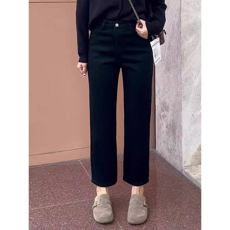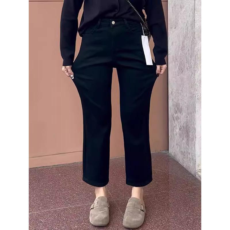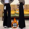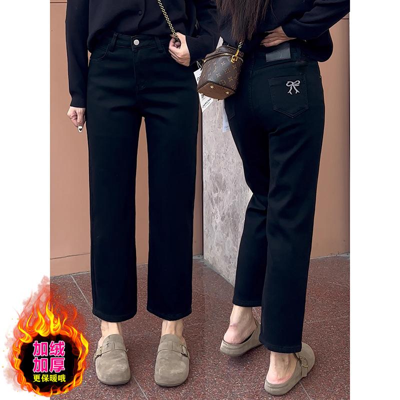 Pantalones vaqueros negros de pierna recta de talla grande para mujer, de otoño e invierno, con forma de pera, forrados de vellón, gruesos, adelgazantes y elásticos.