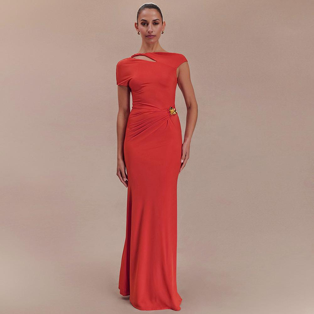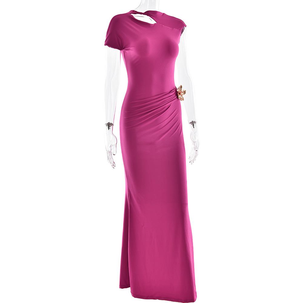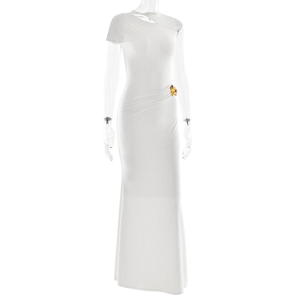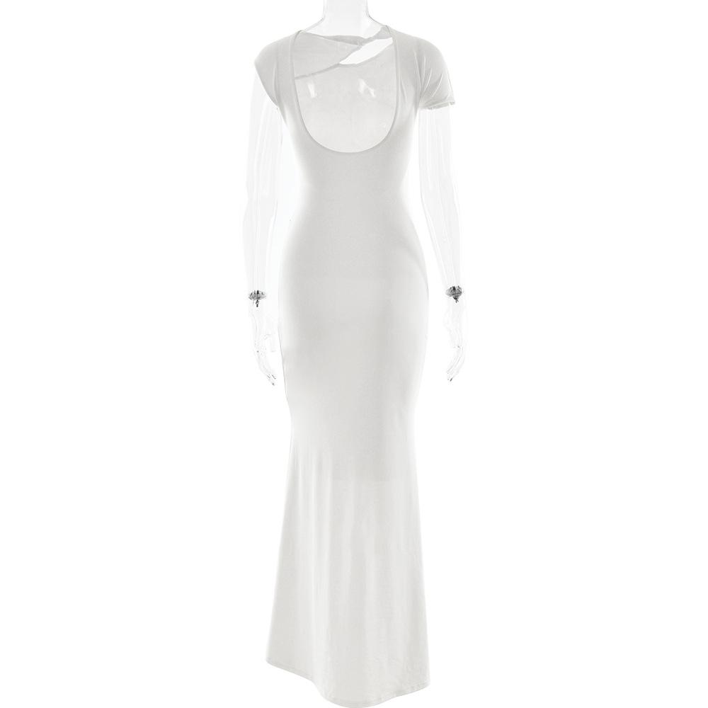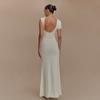 Vestido largo elegante, ajustado, de manga corta, sin espalda, sexy, de color sólido, para mujer, primavera y verano 2025, transfronterizo europeo y americano