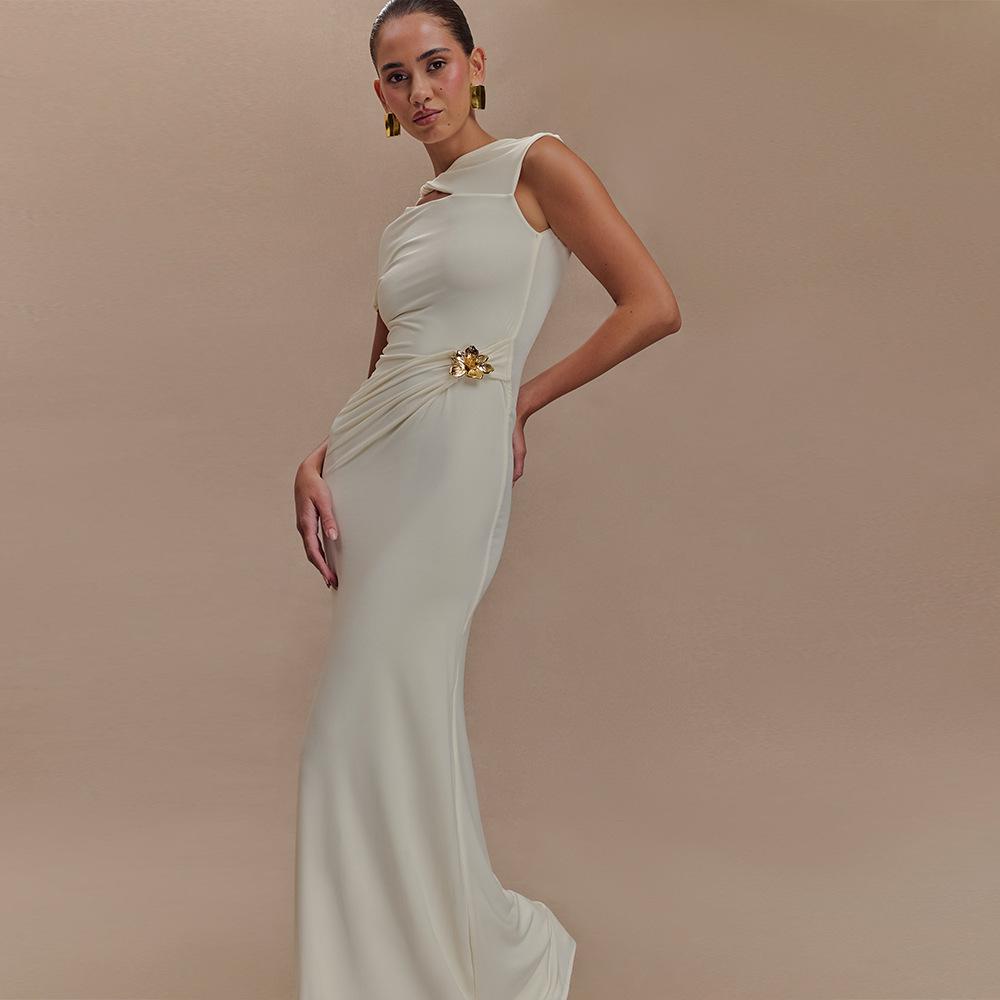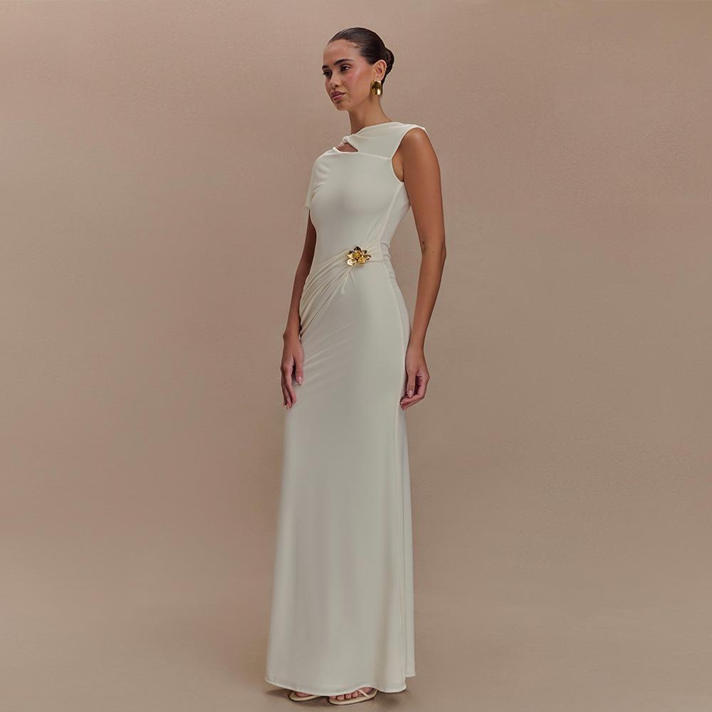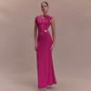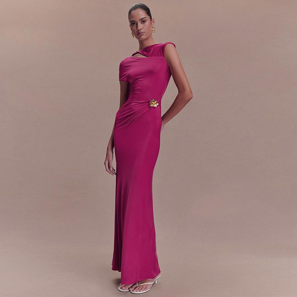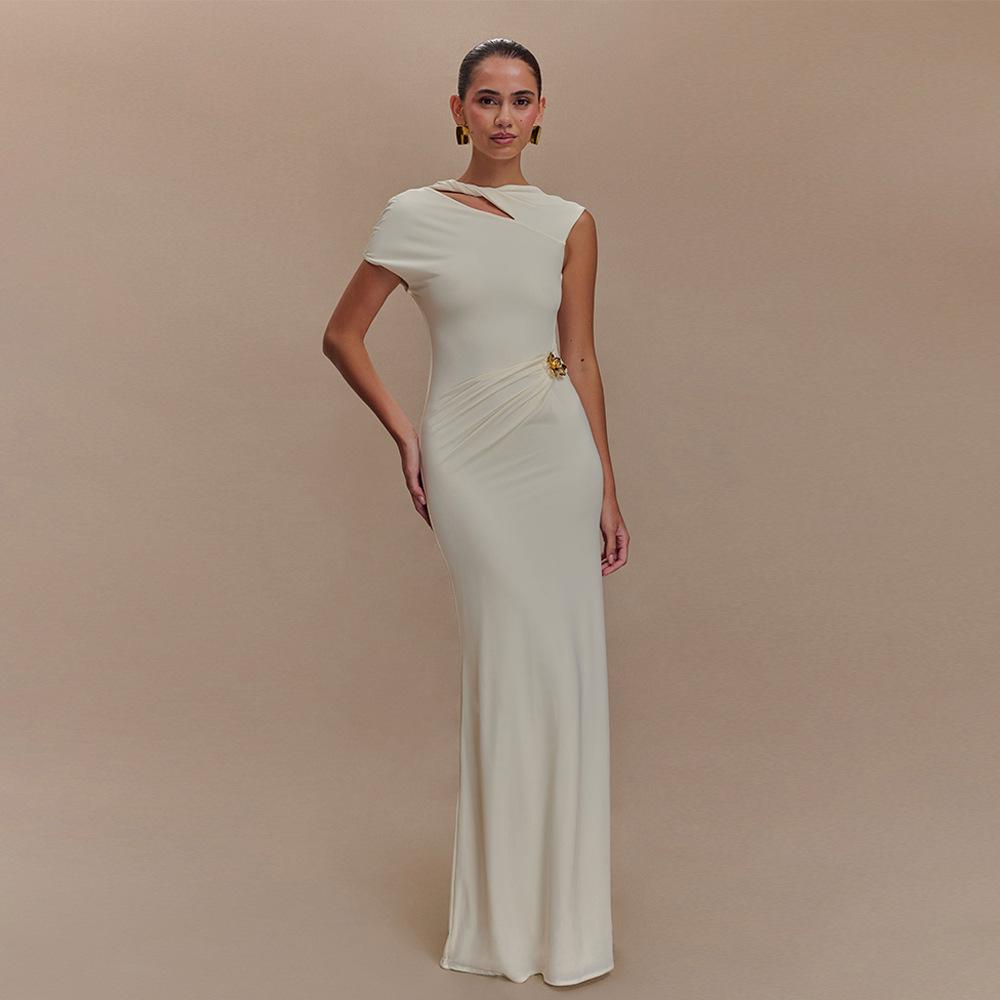Vestido largo elegante, ajustado, de manga corta, sin espalda, sexy, de color sólido, para mujer, primavera y verano 2025, transfronterizo europeo y americano