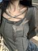Camiseta de manga larga, elegante, de cintura alta y corte entallado para chicas atractivas, de otoño, nueva y sexy, estilo Pure Desire, diseño de nicho.