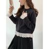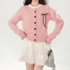 Cárdigan de punto con lazo gris de temperamento, abrigo para mujer, pequeño, corto, holgado, estilo perezoso, de alta gama.