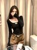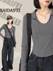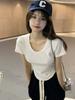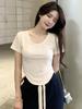 Camiseta de verano ajustada con cintura delgada y cuello en U, sexy, combina con todo, moda de nicho, top exclusivo para chica pura y sexy