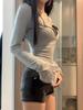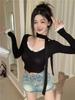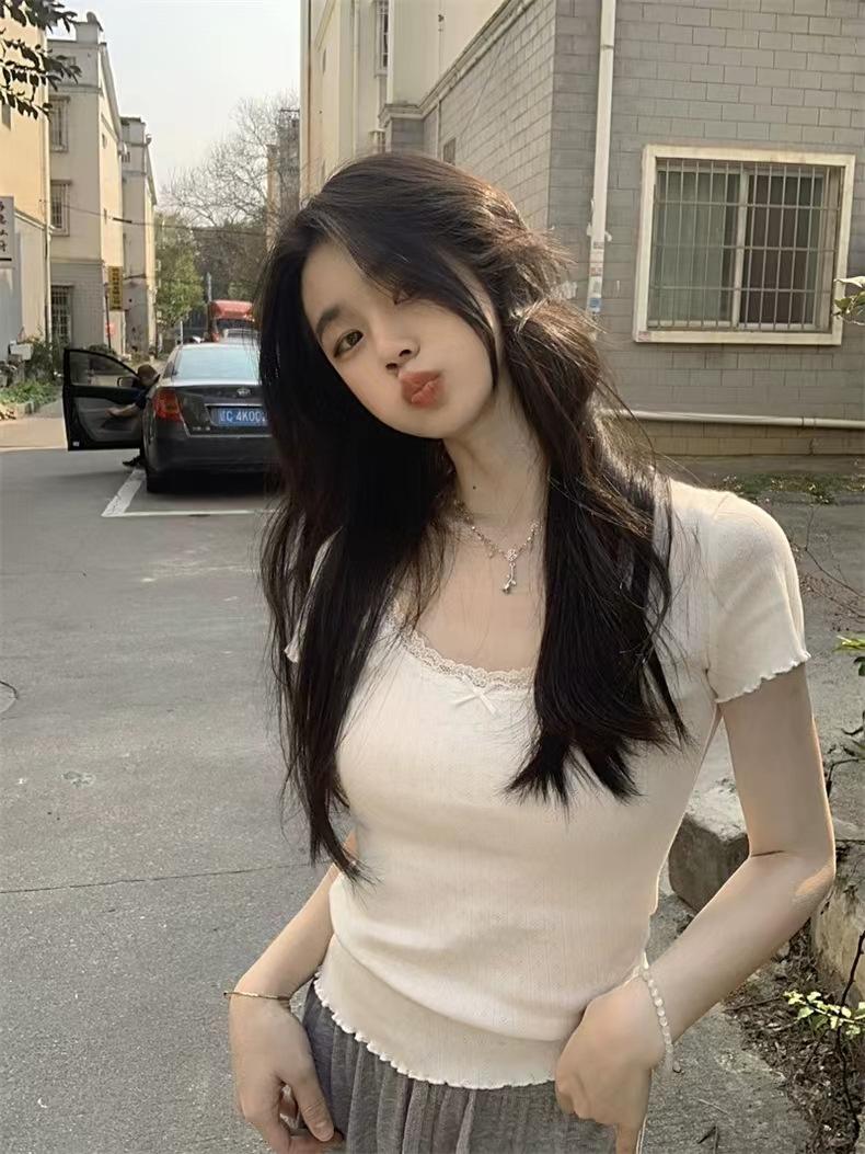 Camiseta adelgazante de manga corta con encaje, estilo Pure Desire, nueva y de verano, combina con todo, estilo nicho, top único.