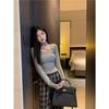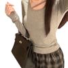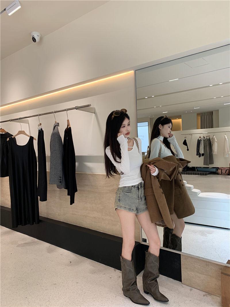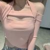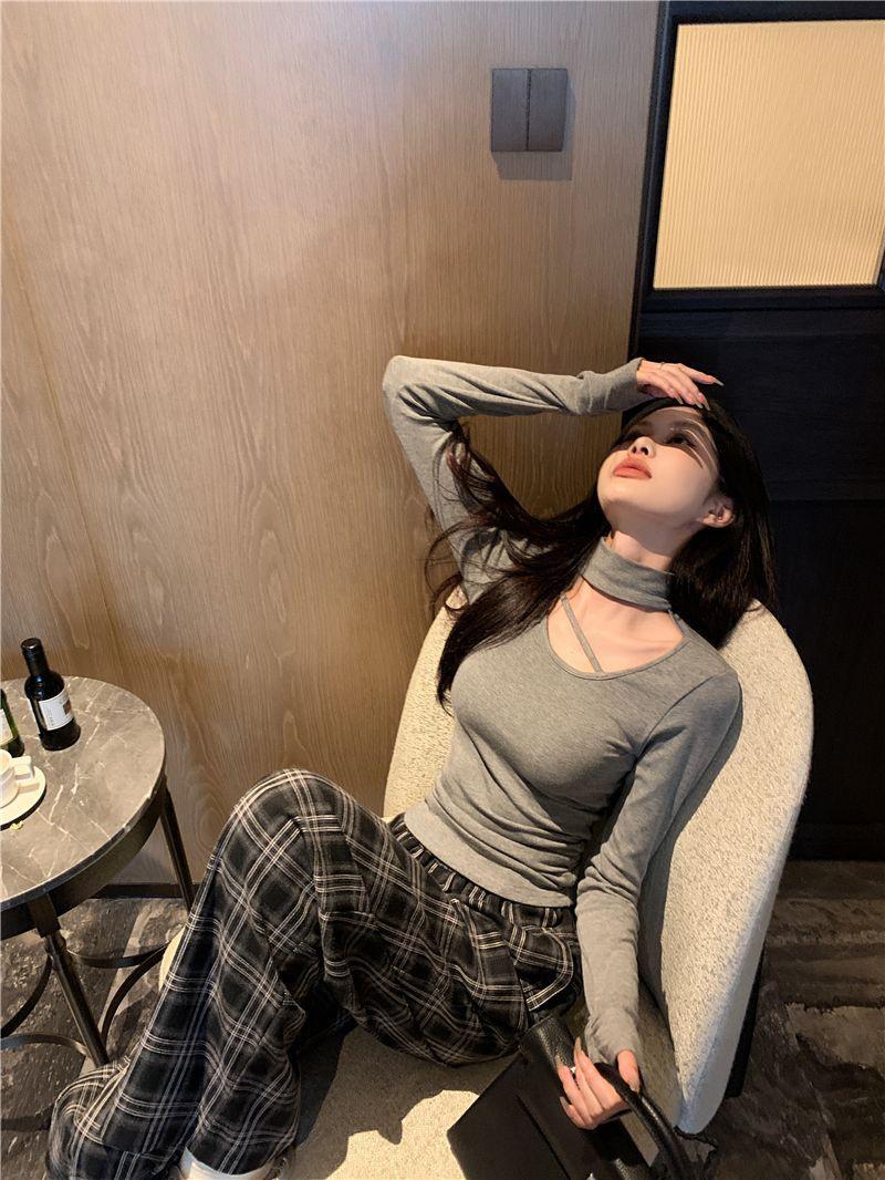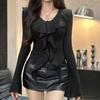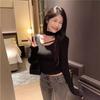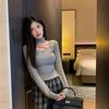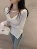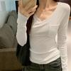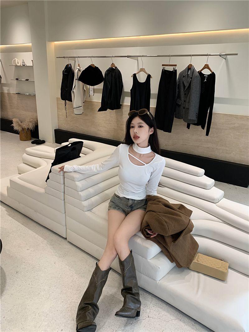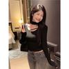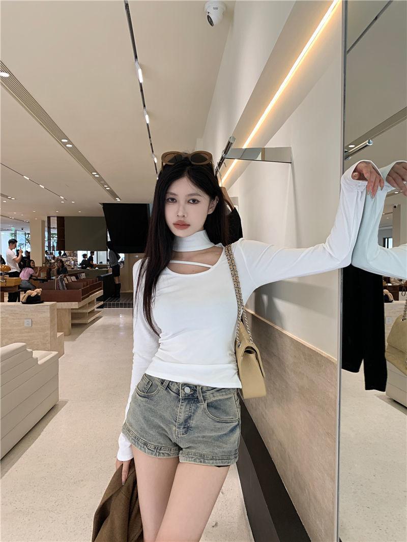 Deseo Puro Chica Caliente Manga Larga Moda Ajustada Slim Camiseta Sexy Irregular Calado Chic Nicho Top