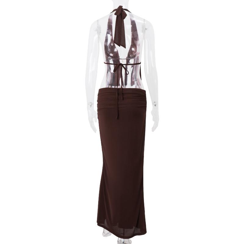 Ropa transfronteriza europea y americana para mujer, primavera 2025, nueva, sexy, con cuello colgante, tirantes huecos, top, cintura alta, falda, traje para mujer