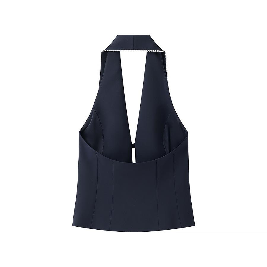 Primavera 2025 Nuevo Europeo y Americano Transfronterizo Moda Urbana para Mujer Chaleco Halter con Encaje Cosido w091 2414