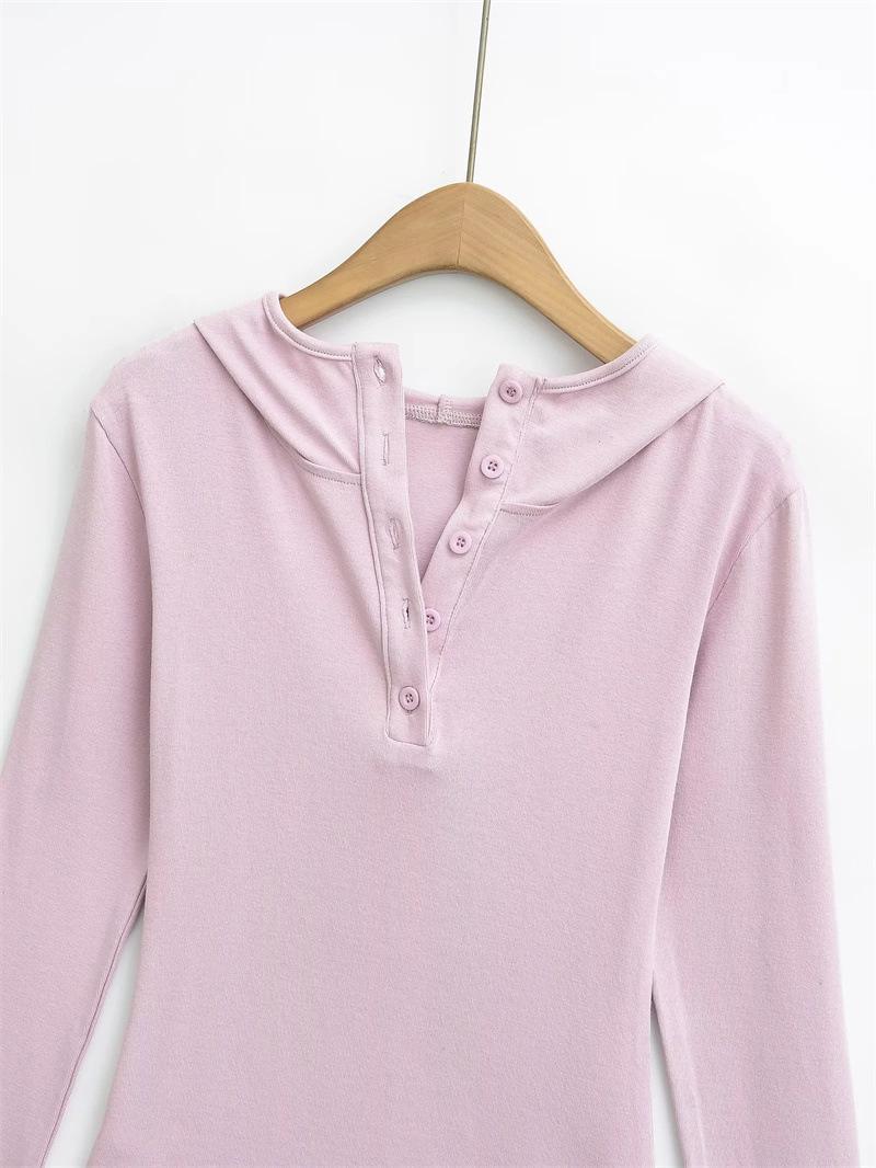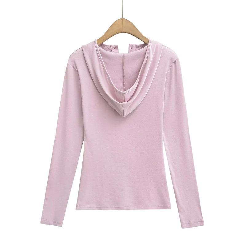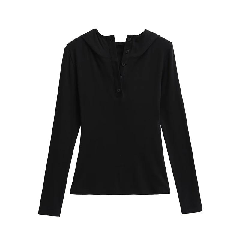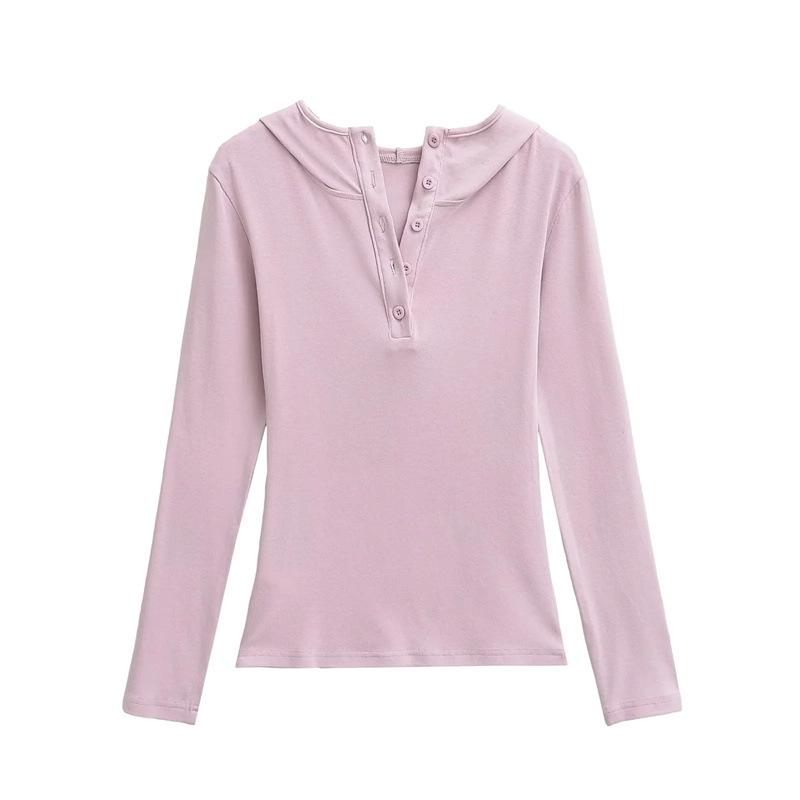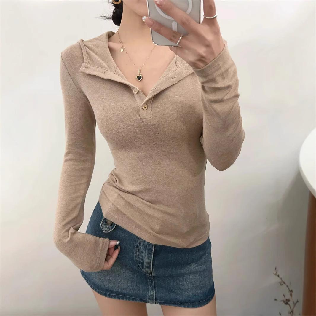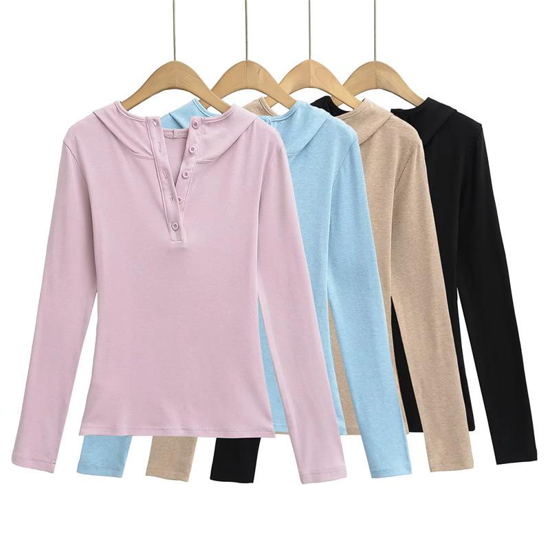 Camiseta de manga larga con botones y capucha estilo Pure Desire, nueva moda de primavera 2025, top informal de Spice Girl ajustado y combinable para mujer