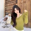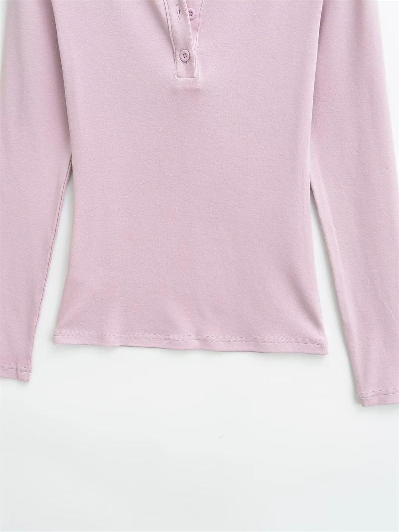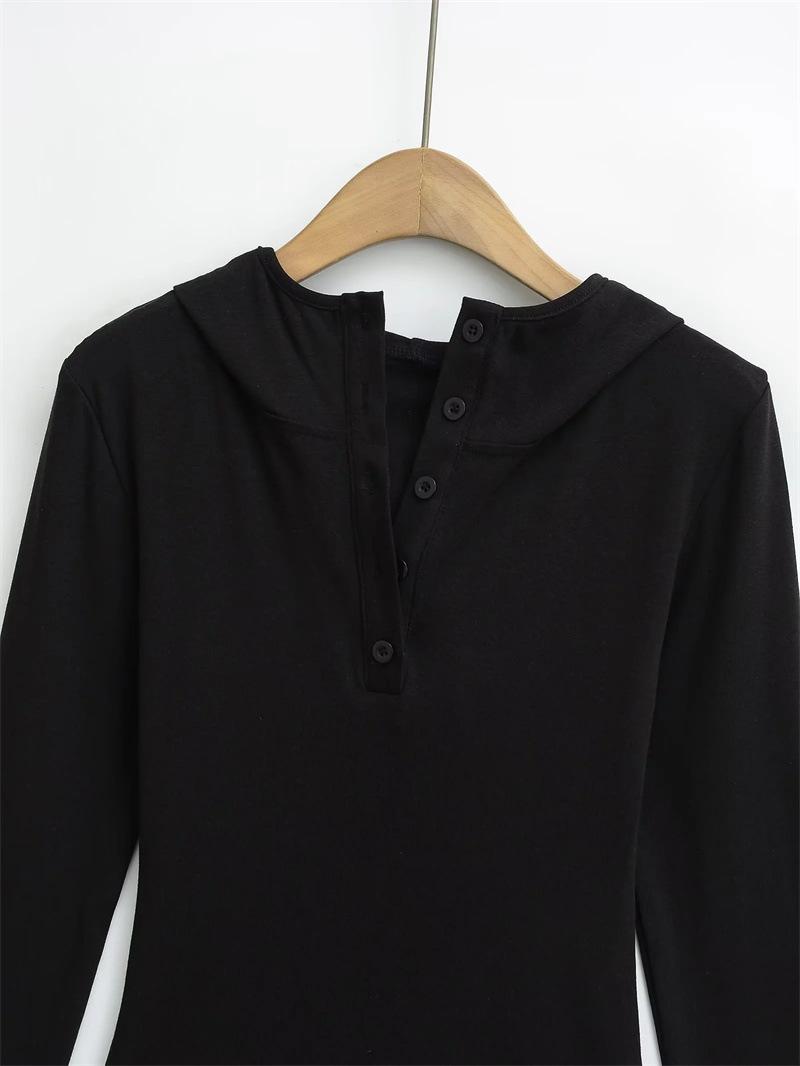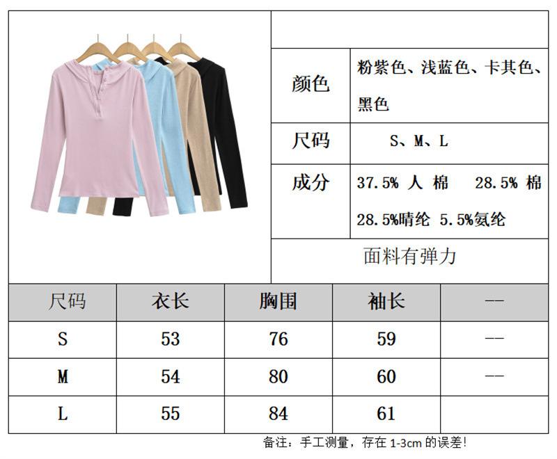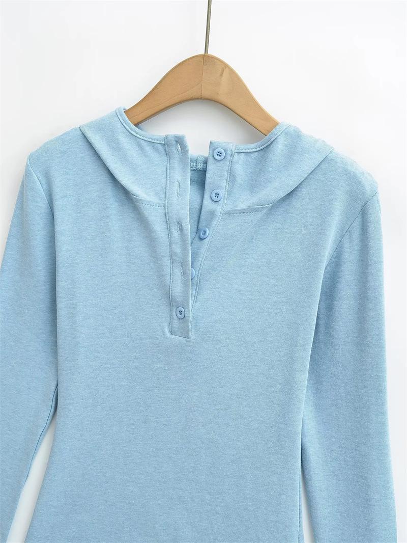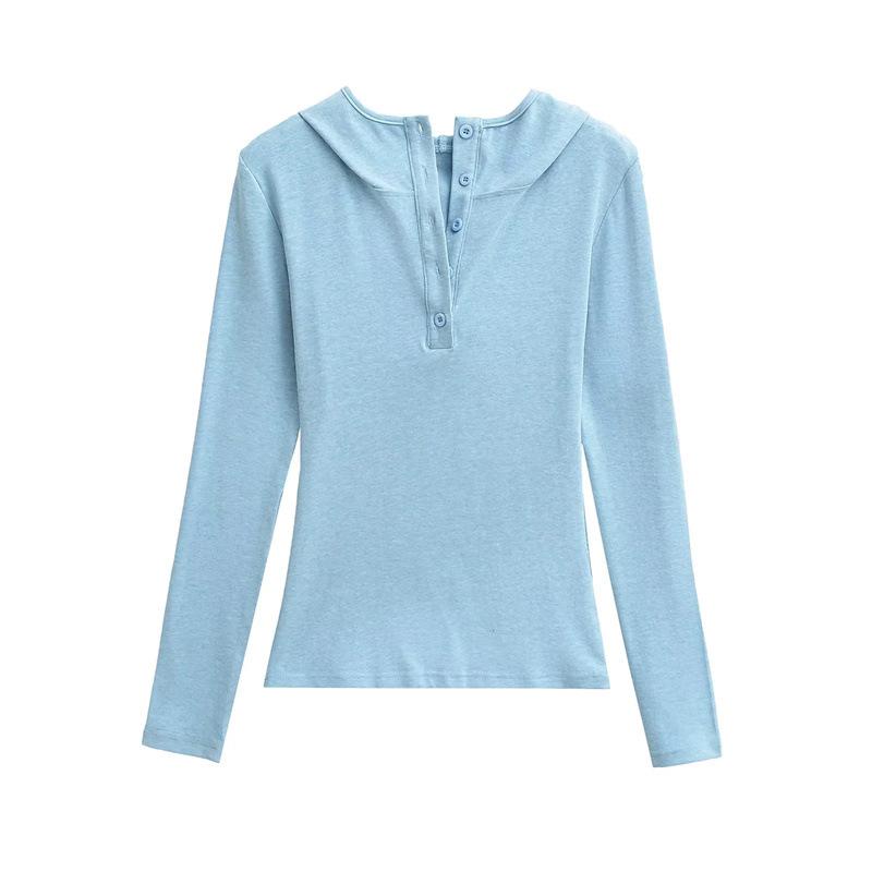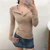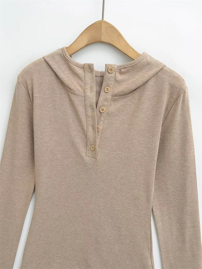 Camiseta de manga larga con botones y capucha estilo Pure Desire, nueva moda de primavera 2025, top informal de Spice Girl ajustado y combinable para mujer