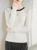 Suéter de base interior suave y ceroso para mujer, camisa de base ajustada elástica con línea de combinación de colores para otoño e invierno, novedad de primavera de 2025