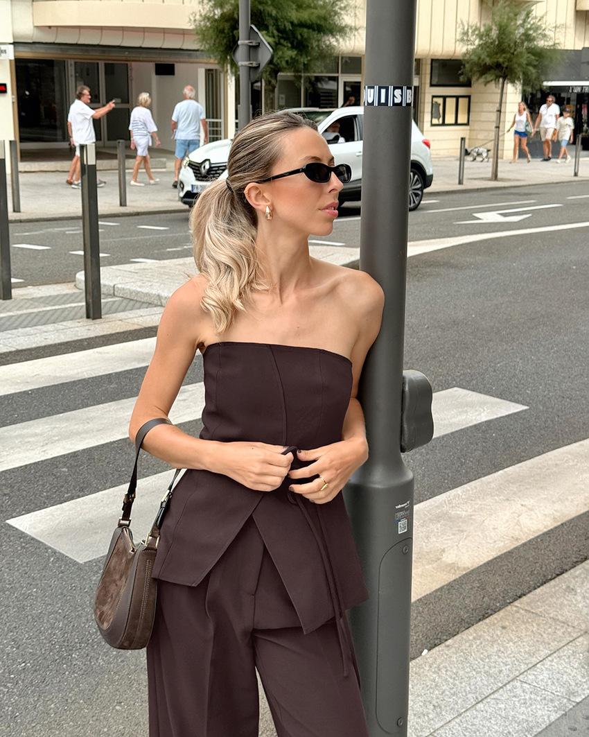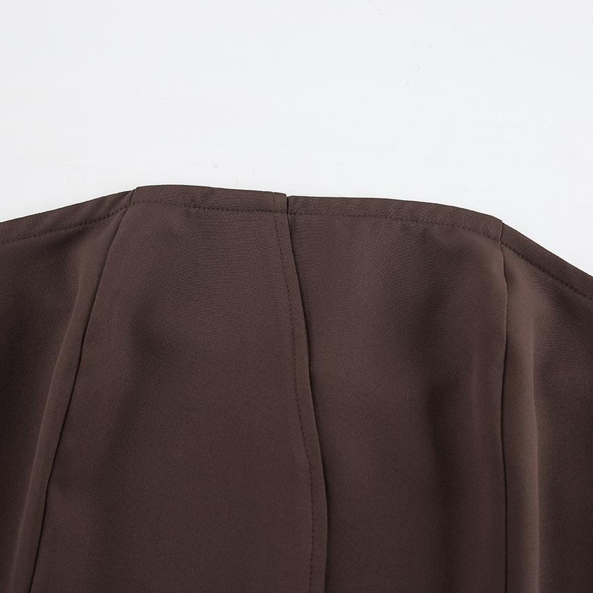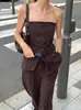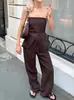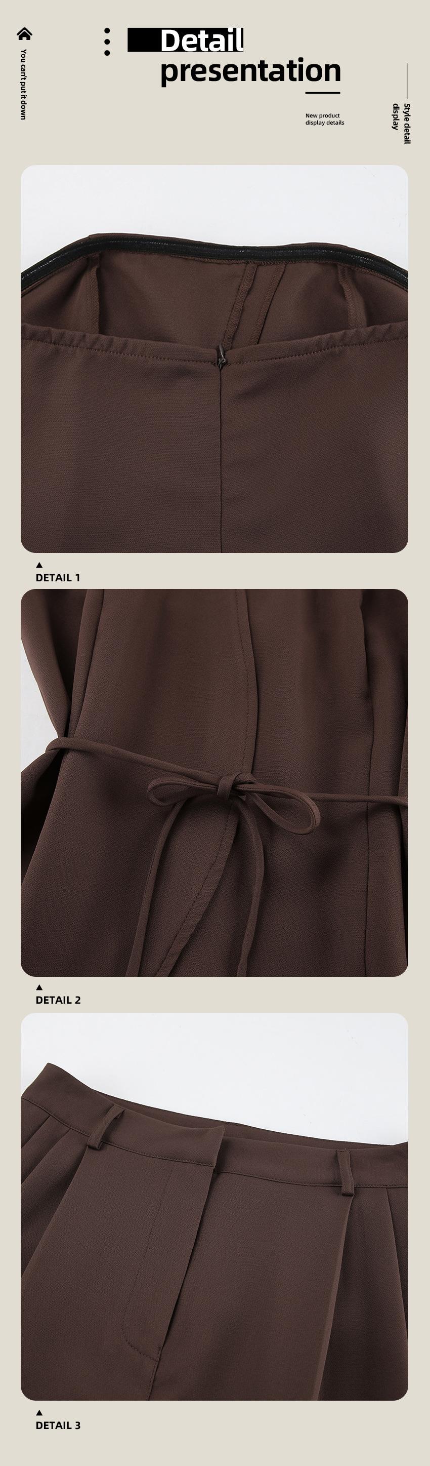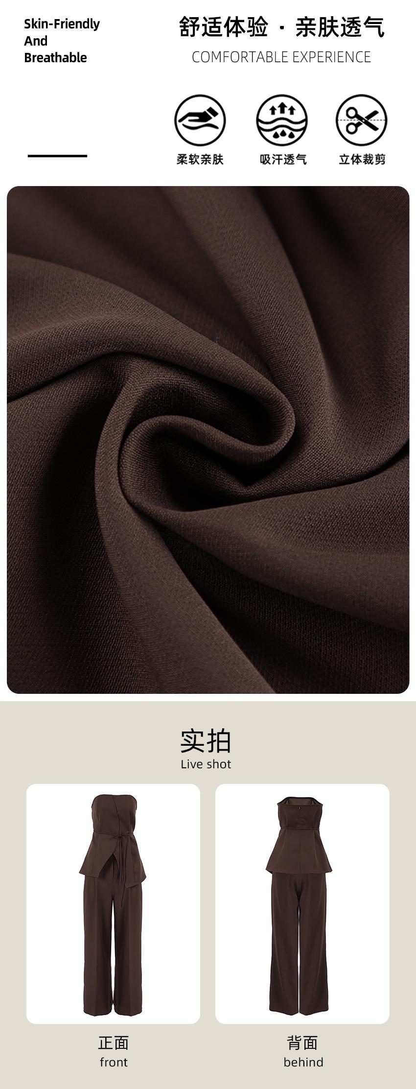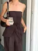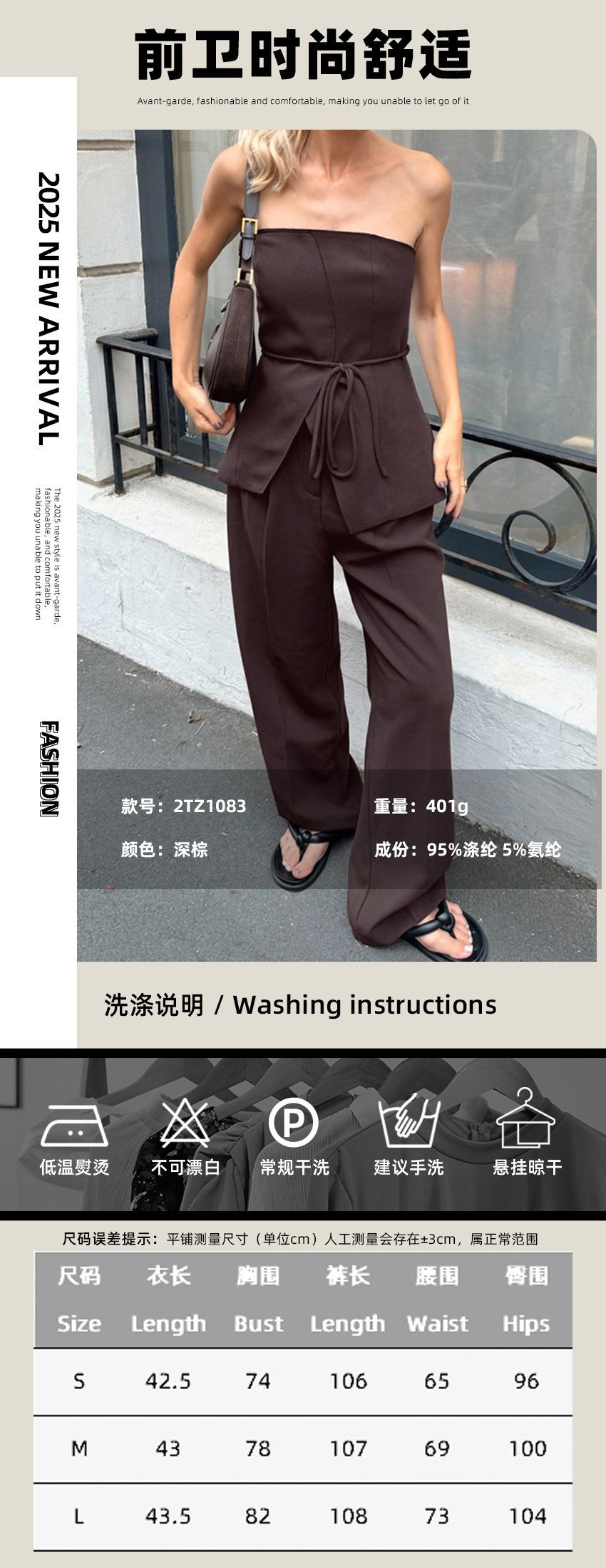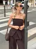 Europeo y Americano Transfronterizo Marrón Top Strapless Pantalones de Pierna Ancha Conjunto de Dos Piezas Moda de Verano para Mujer Diseño de Traje Chaleco Ropa de Mujer