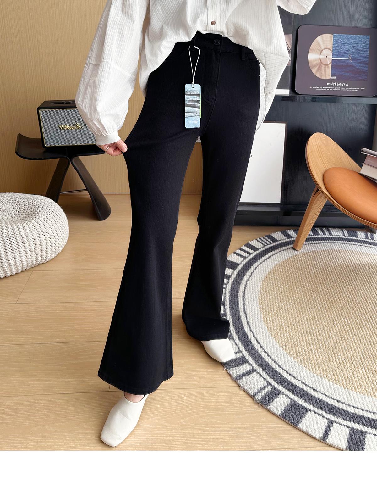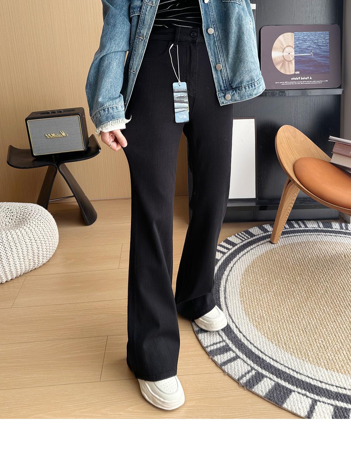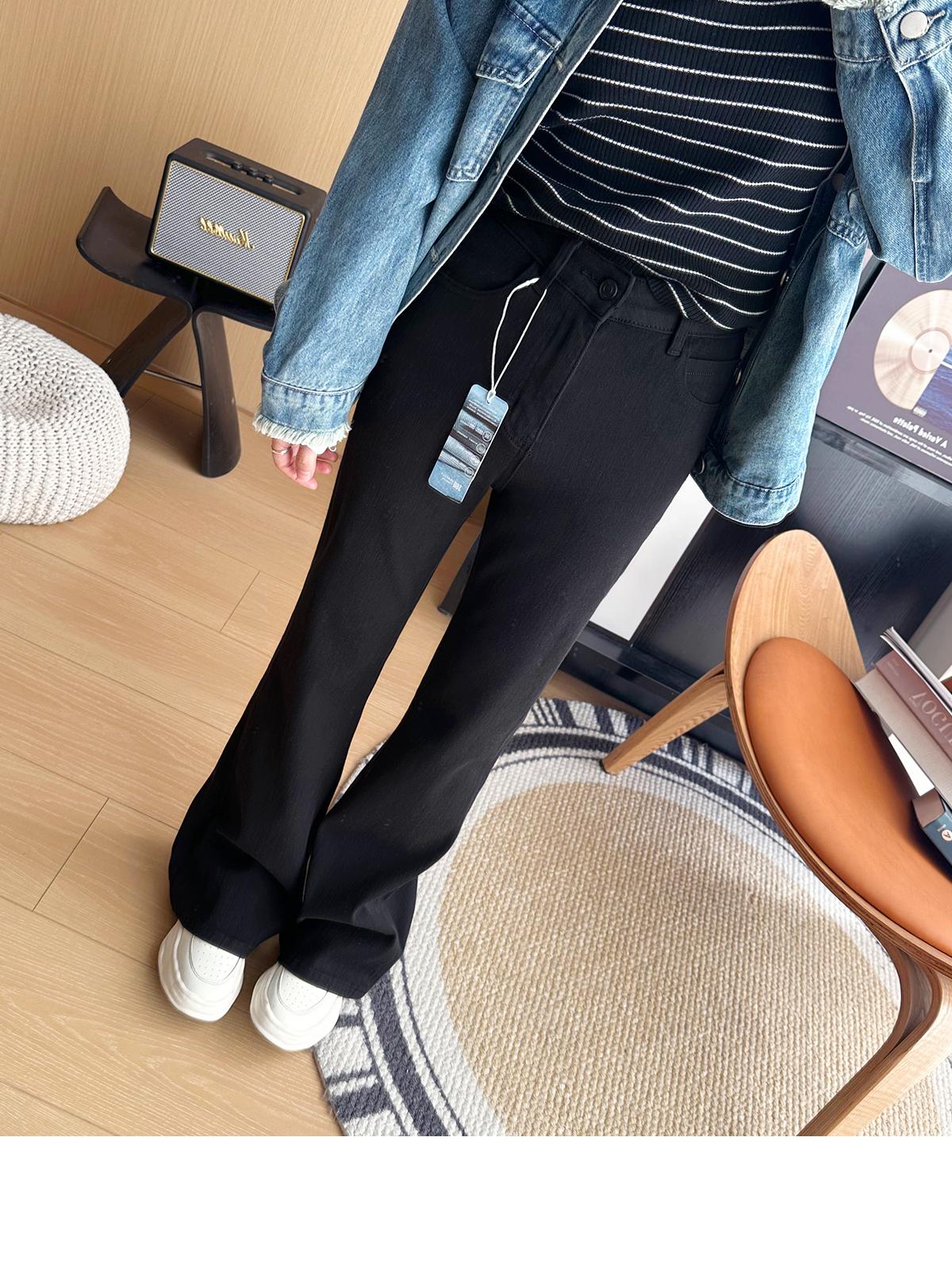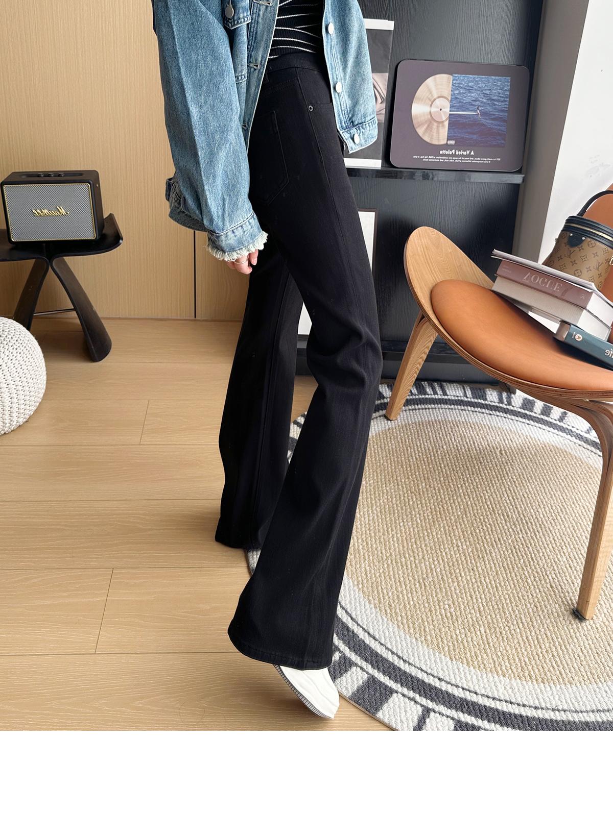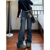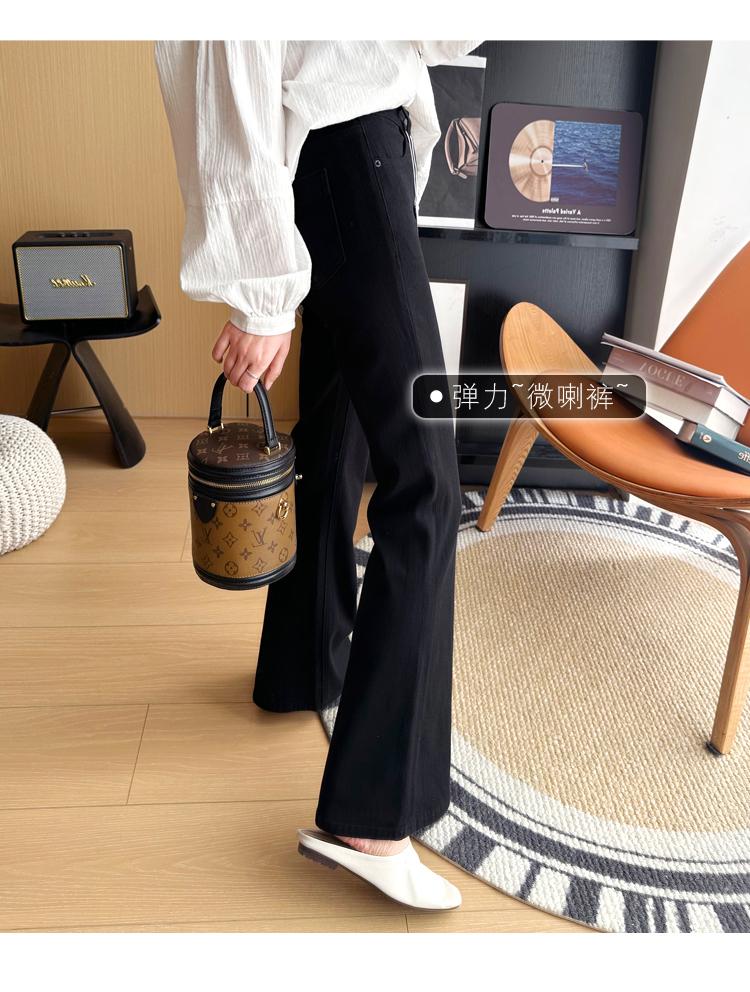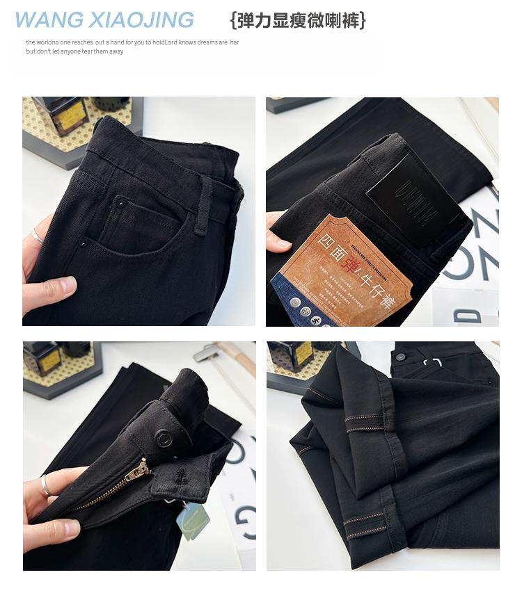 ¡Buenas proporciones! 2025 nuevos pantalones de herradura bala de cuatro lados pequeños altos delgados micro acampanados jeans mujer