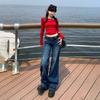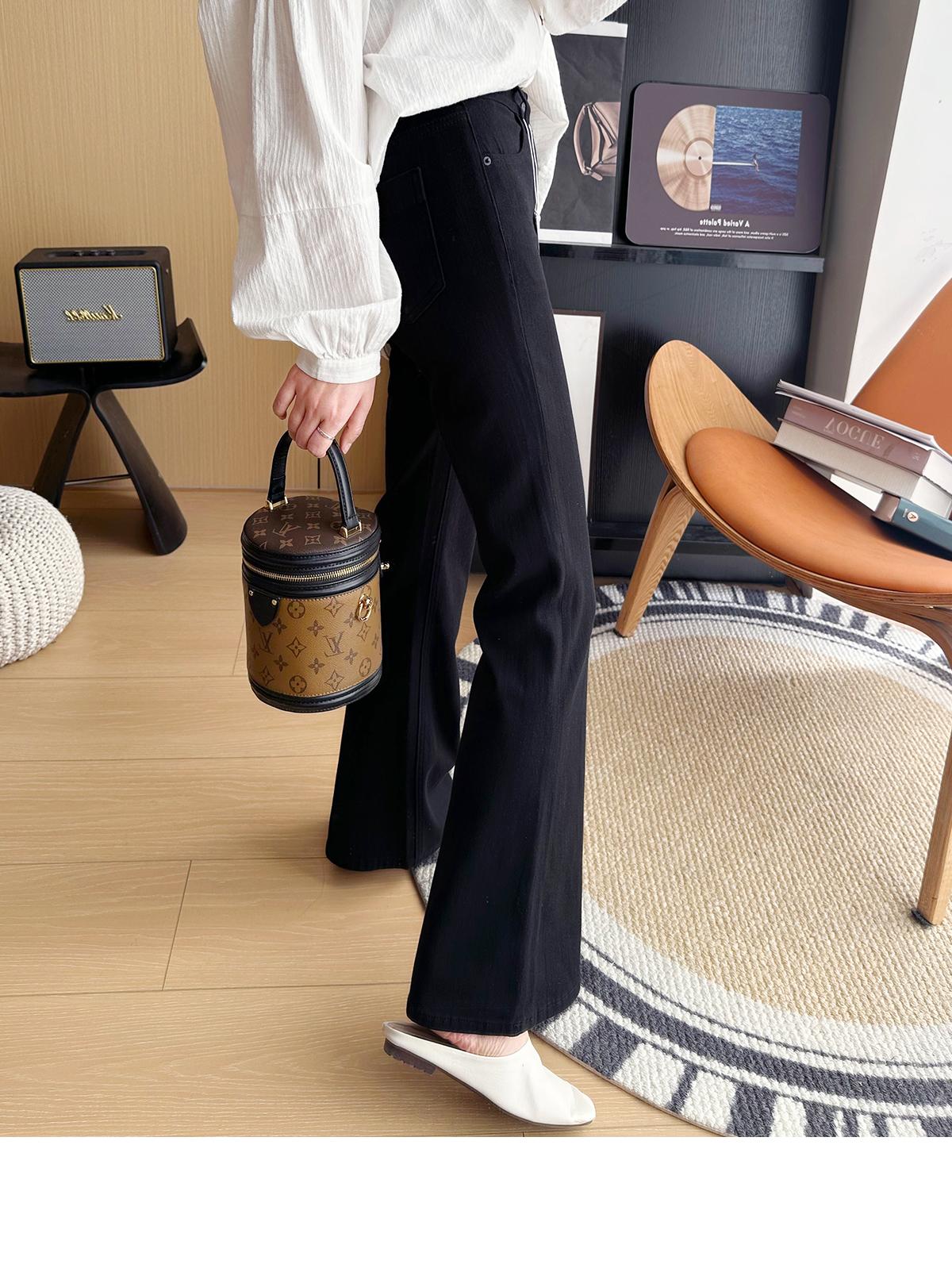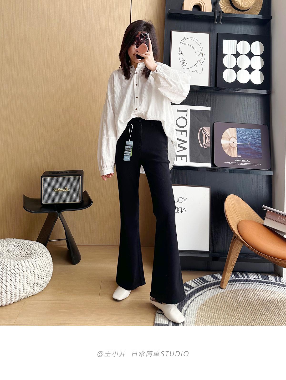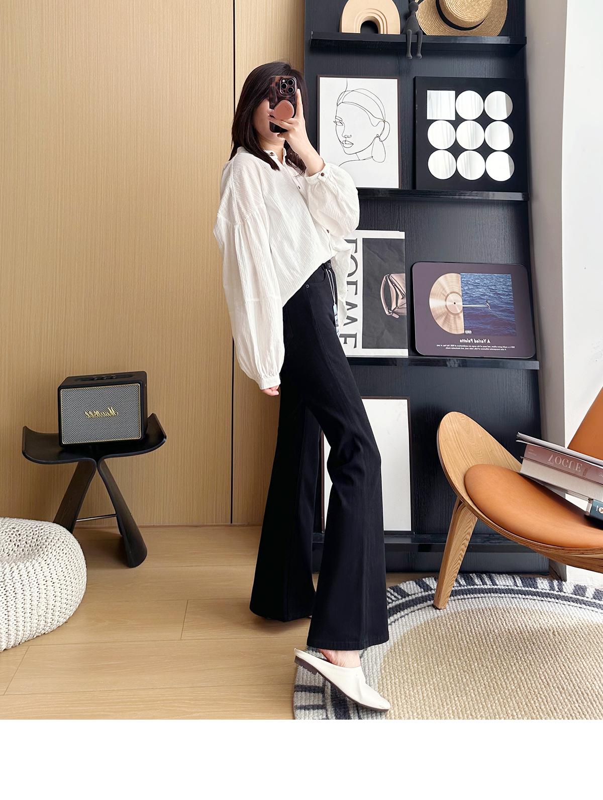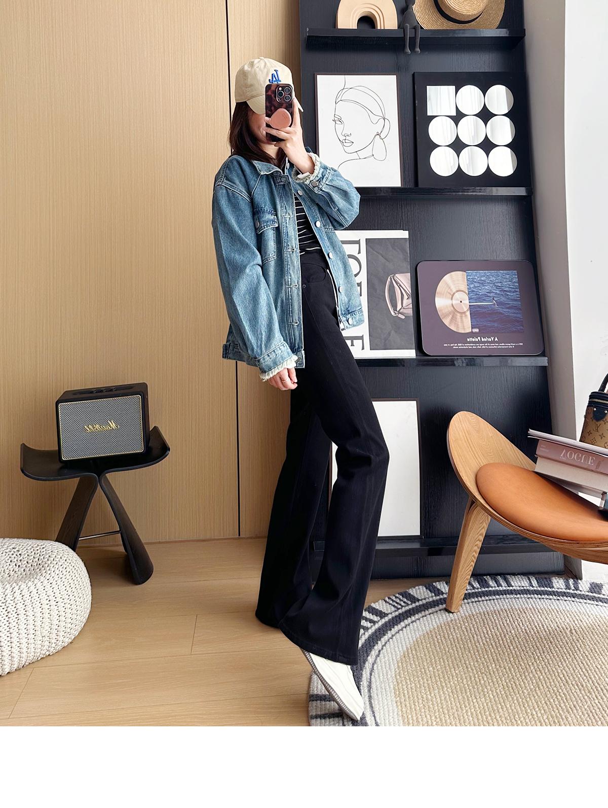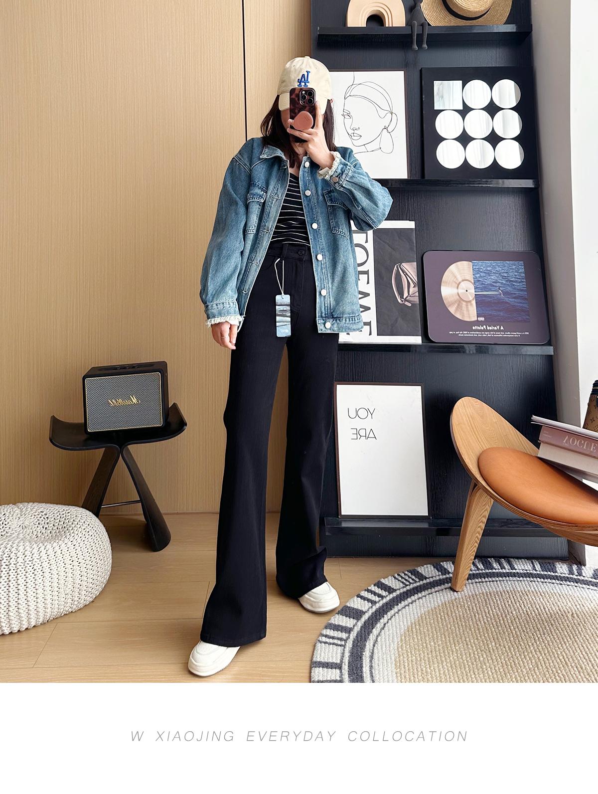 ¡Buenas proporciones! 2025 nuevos pantalones de herradura bala de cuatro lados pequeños altos delgados micro acampanados jeans mujer