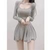 Falda sexy de estilo francés con tirantes al cuello, conjunto de dos piezas ajustado, sin espalda, falda de cadera de chica sexy de puro deseo.