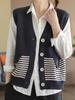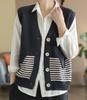 Chaleco vintage a rayas con cuello en V para mujer, primavera y otoño 2025, nuevo cárdigan de punto suelto, chaqueta sin mangas con costuras