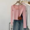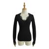 Camiseta de manga larga con cuello en V y encaje de nicho para mujer, diseño de chica sexy, ajustada y con cintura adelgazante para otoño e invierno.
