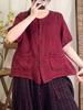 Camisa de lino a cuadros de manga corta para mujer, nueva camisa artística retro holgada y adelgazante de primavera y verano, talla grande
