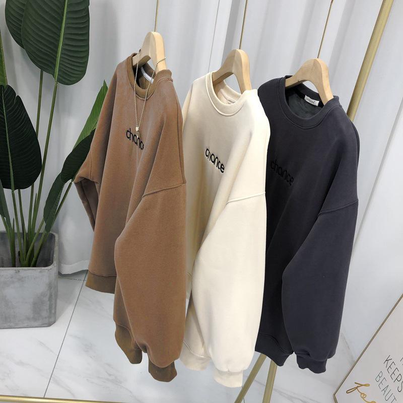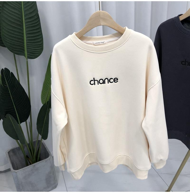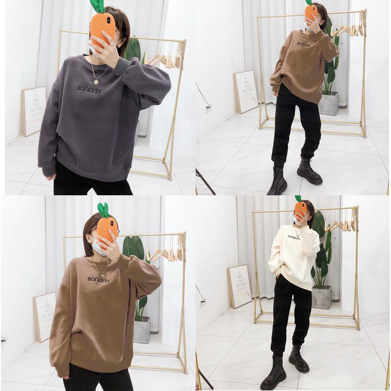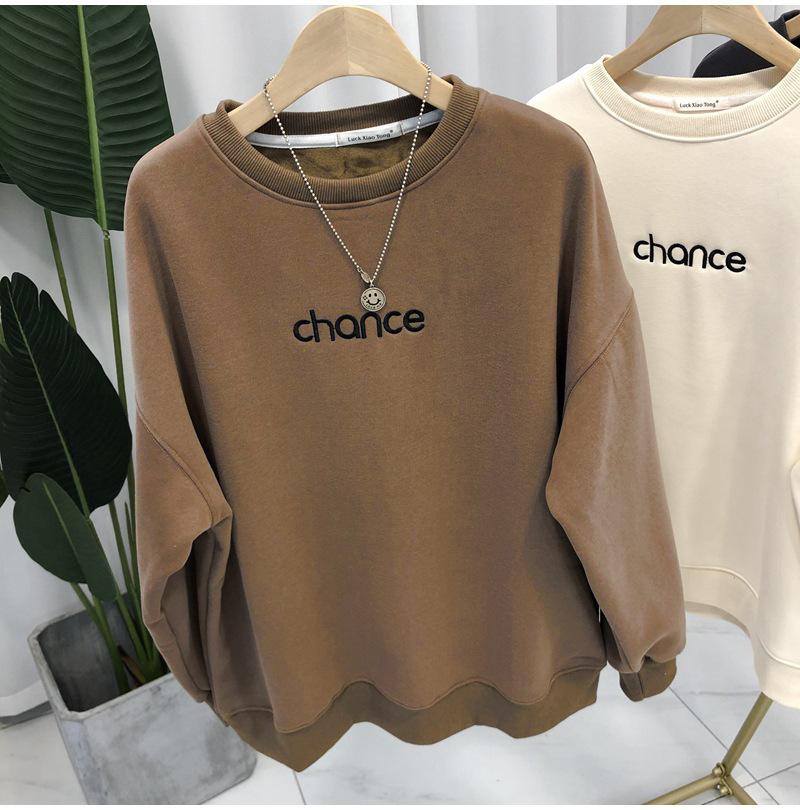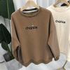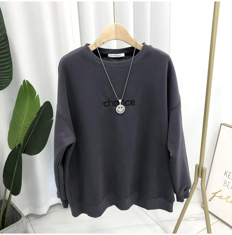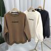 Suéter holgado de cuello redondo estilo Hong Kong para mujer, otoño e invierno, además de chaqueta de terciopelo con letras bordadas, jersey de terciopelo de zorro plateado, top de algodón para mujer