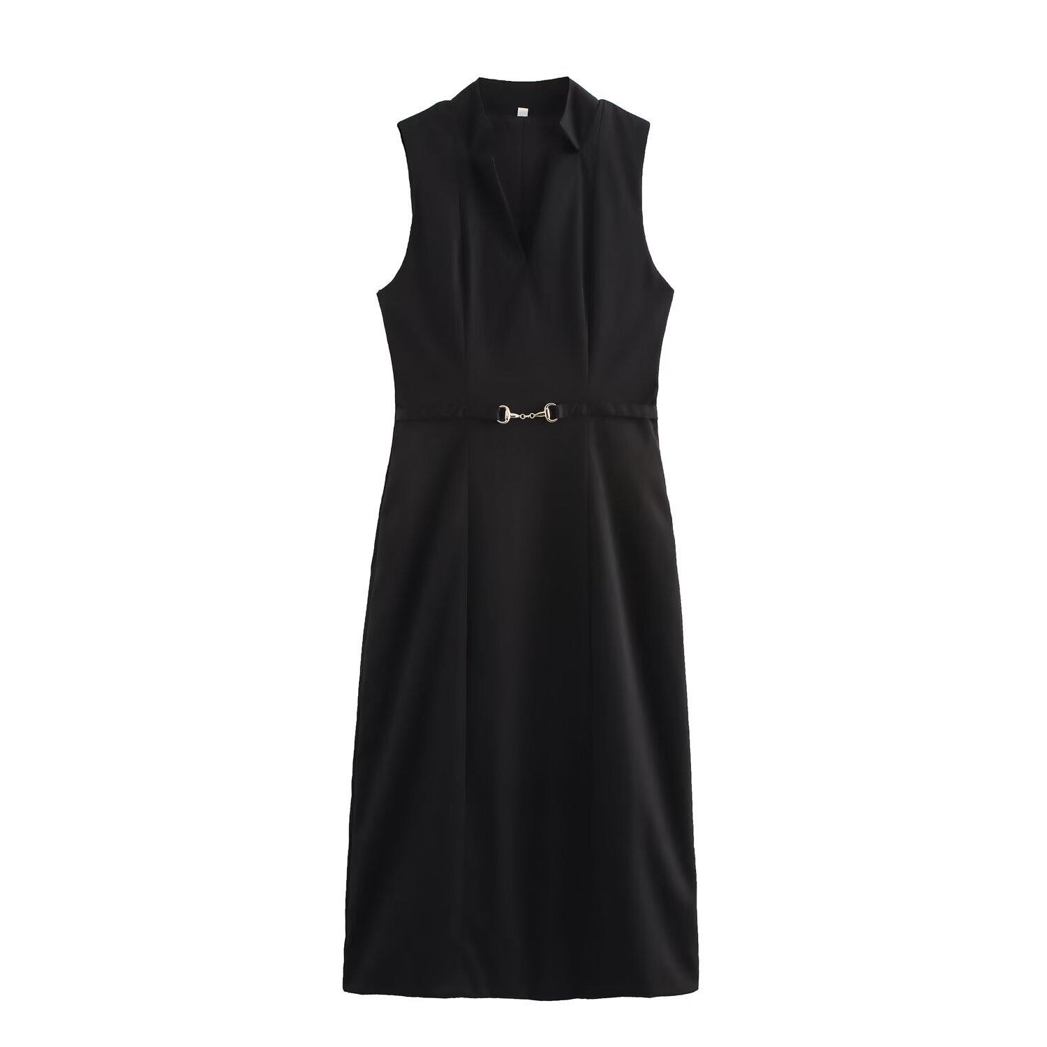 Vestido largo con hebilla de metal, moda transfronteriza europea y americana, primavera 2025, W021 82040