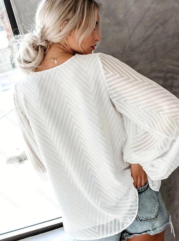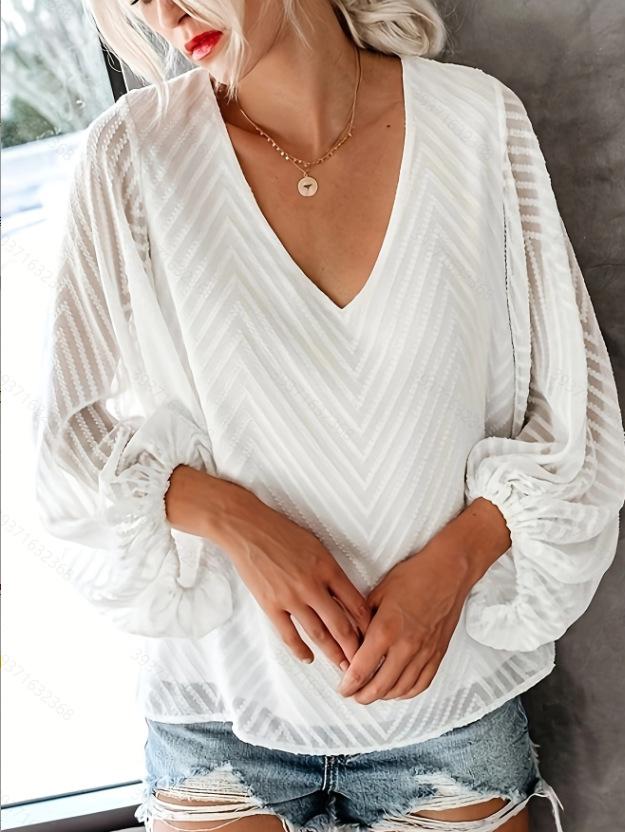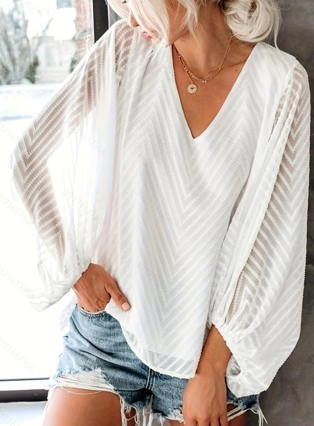 Compra Primavera y verano nuevo Amazon Europa y América mujeres top de gasa cuello en V manga farol jersey top mujeres al por mayor en Joom.pro