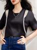 Camiseta de manga corta con cuello redondo y hombros descubiertos con diseño negro europeo para mujer, novedad de verano 2025, diseño de nicho, top de moda