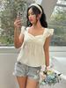 Top Dulce de Encaje sin Mangas Estilo Coreano de Verano, Diseño con Sentido del Color Sólido, Chaleco Corto para Exterior, Tirantes Sueltos para Estudiantes